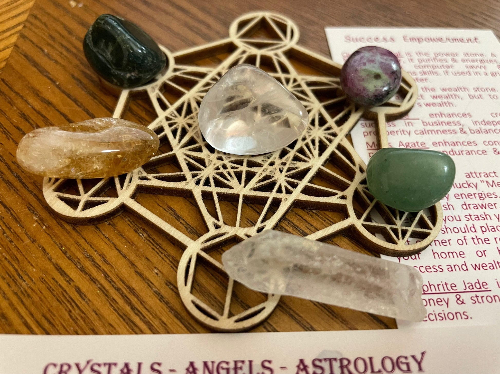 7 piece Success Empowerment crystal set with Metatrons Cube Grid