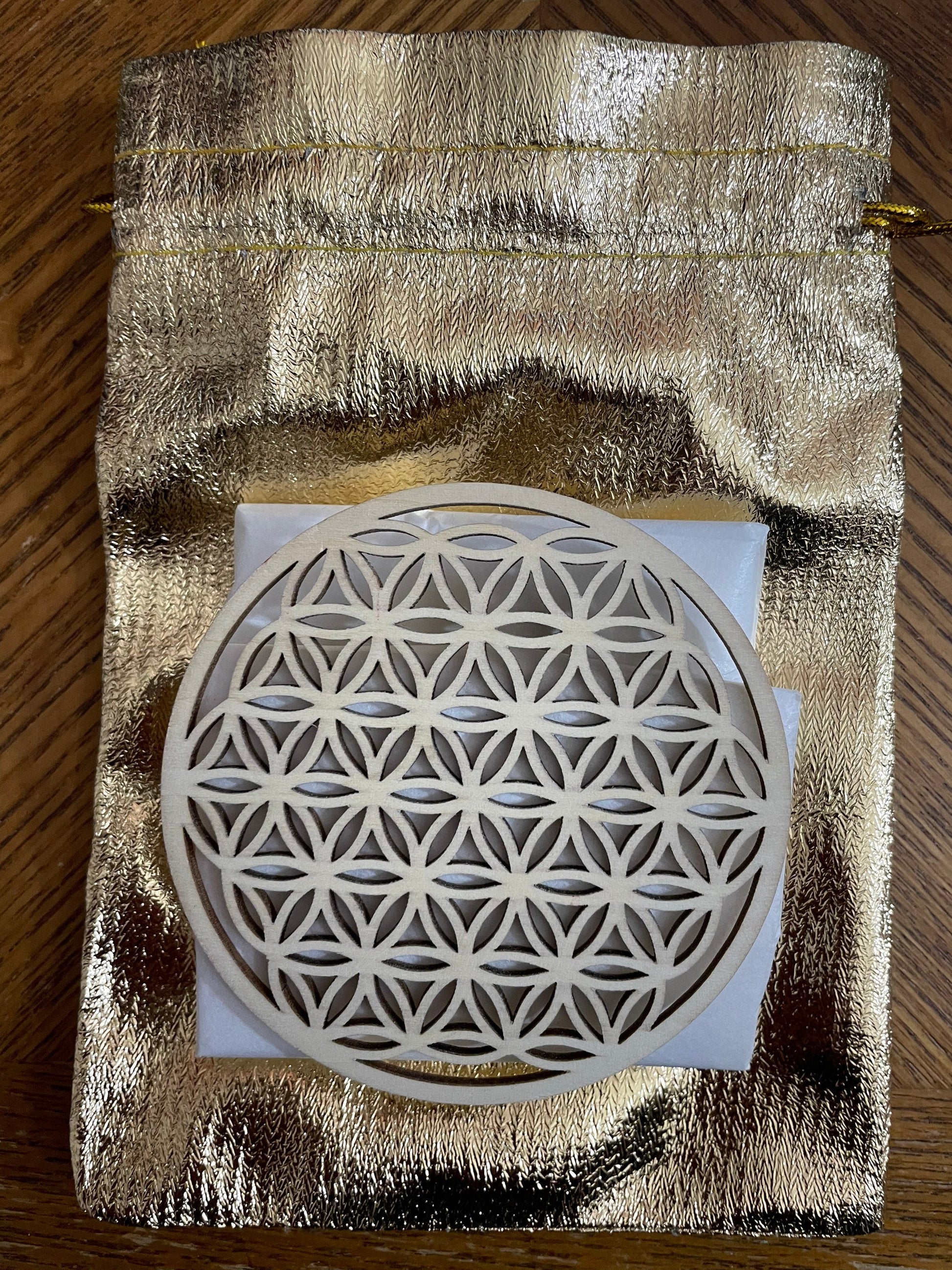 You will receive Powerful protection In this Crystal set with flower of life grid. Use For meditation, clearing and protection. Set consists of 6 small raw selenite wands, 1 raw black tourmaline, 1 Quartz point and 3.5" flower of life grid. Because Crystal are a raw material, sizes will vary. They will come package in a pretty gold pouch with a Protection Crystal card and programming instructions included.