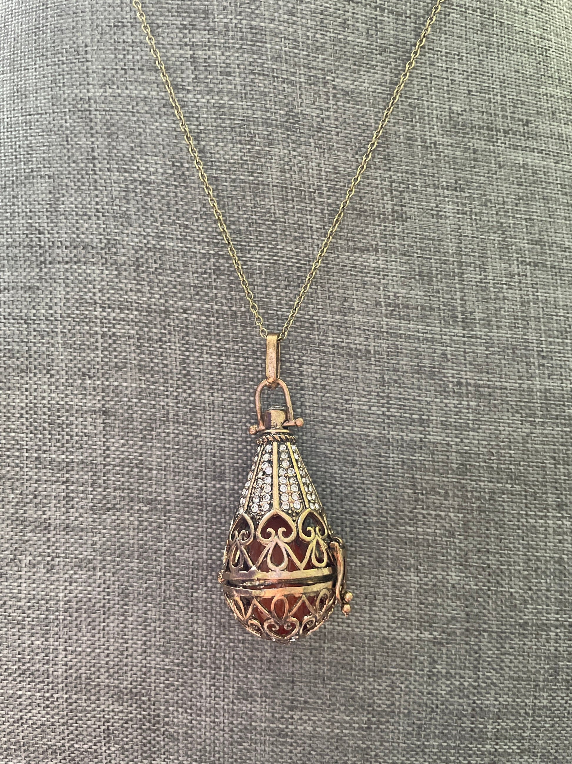 From this gold chain hangs a beautiful locket which carries the crystal of your needs!! Wear and change out the crystal in a section!