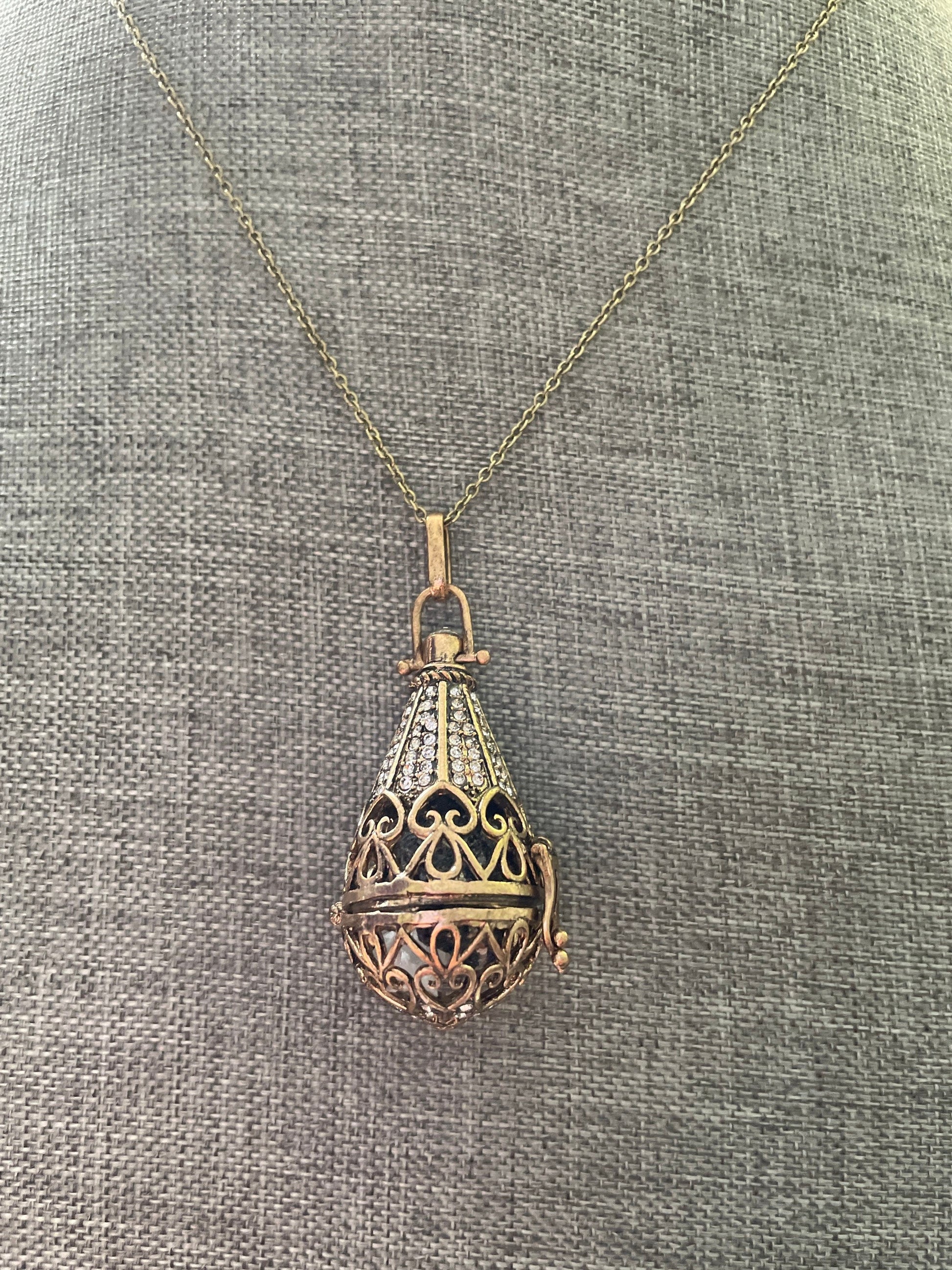Antique Gold locket with 6 interchangeable crystals on 16” gold chain