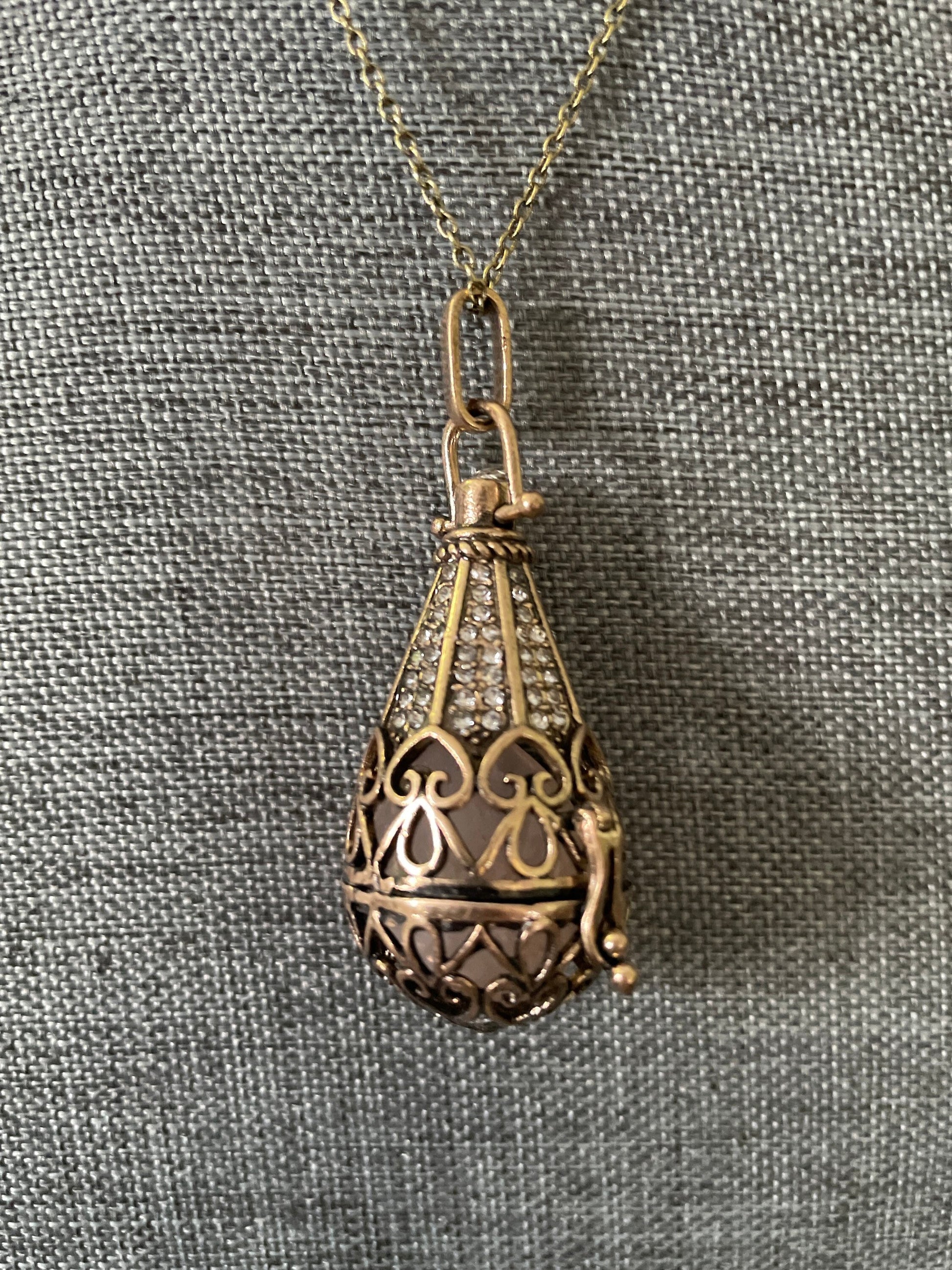 Antique Gold locket with 6 interchangeable crystals on 16” antique gold chain