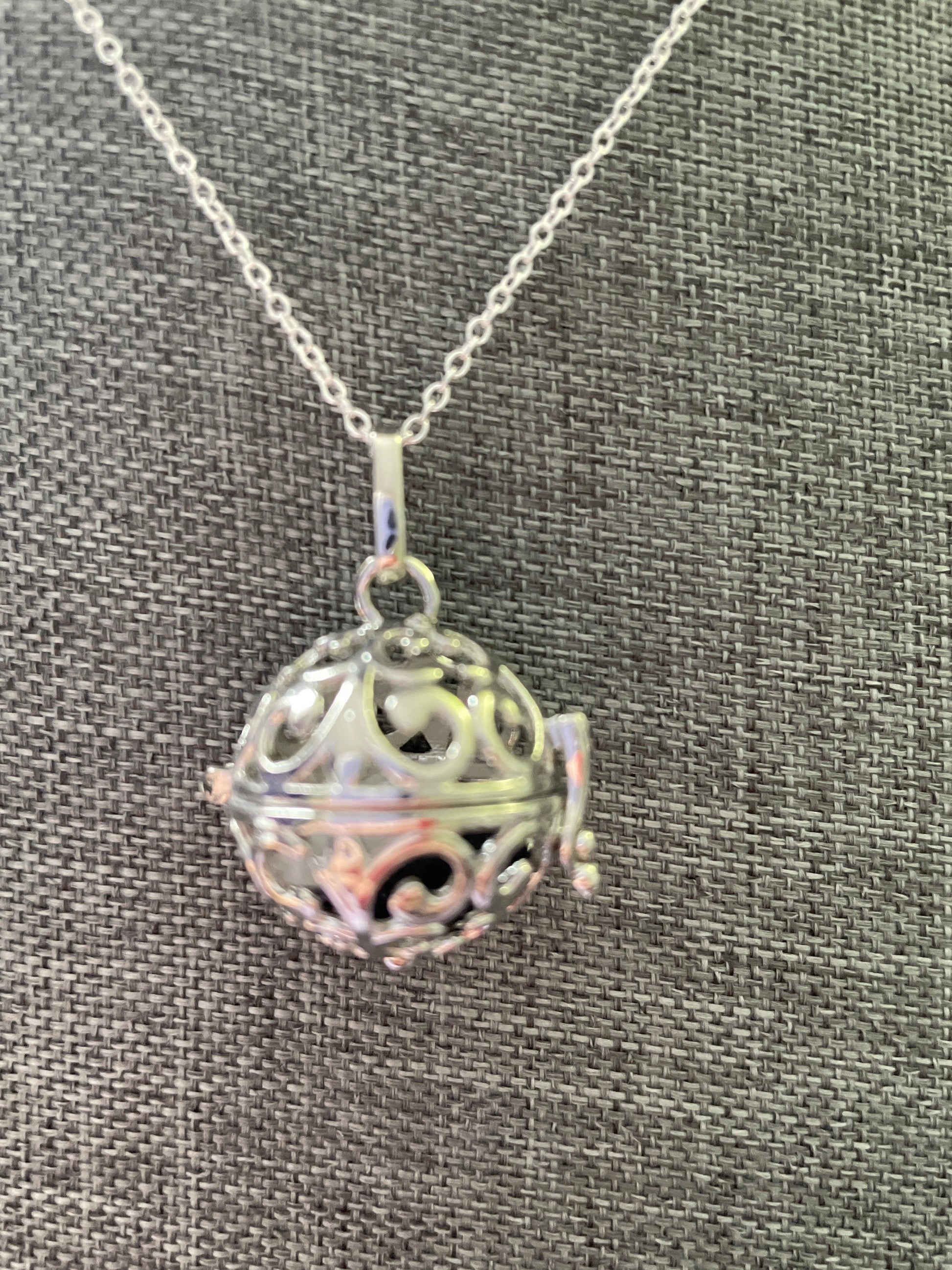 From this silver plated chain hangs a beautiful locket which carries the crystal of your needs!! Wear and change out the crystal in a sectoon!!