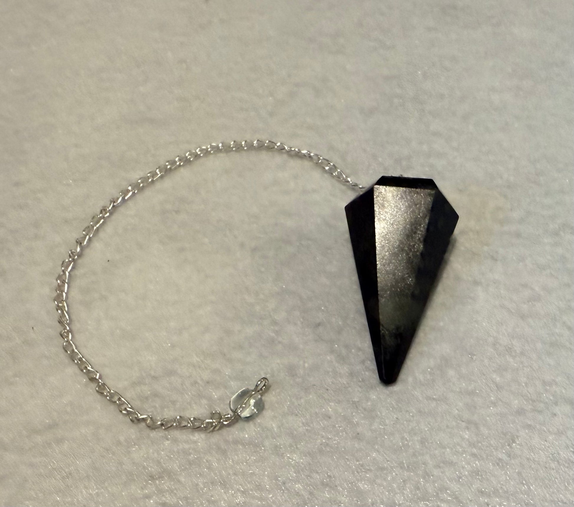 This beautiful Kambaba Jasper Pendulum is 1.5” and with chain is 8”. Please look at all pictures to see all sides of this pendulum.