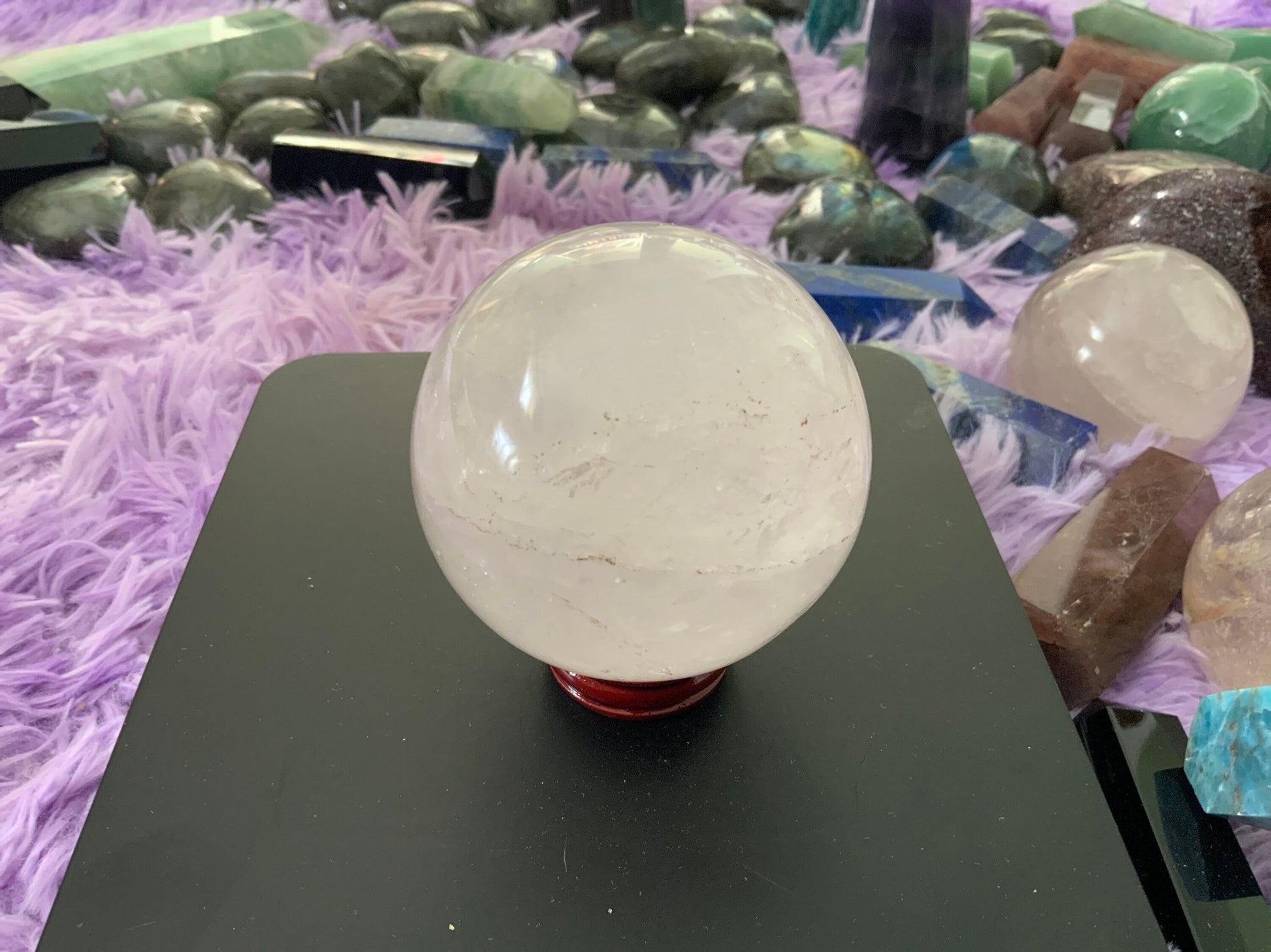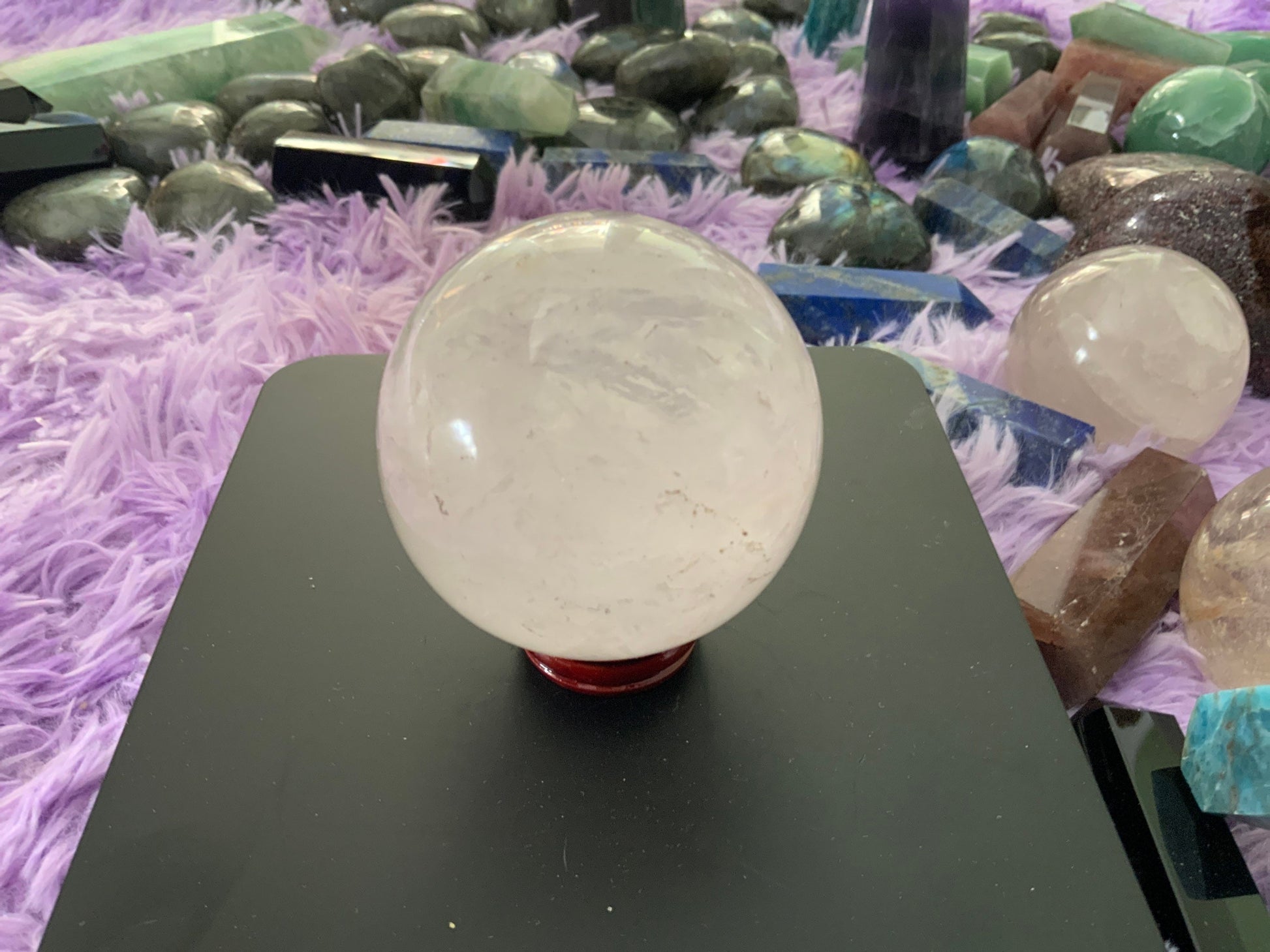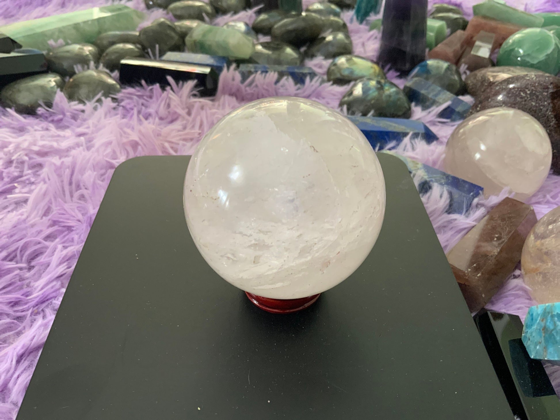 Beautiful 1 pound clear quartz sphere crystal ball with wooden stand