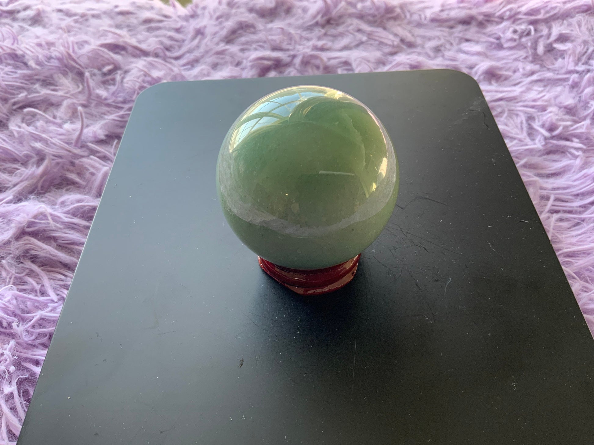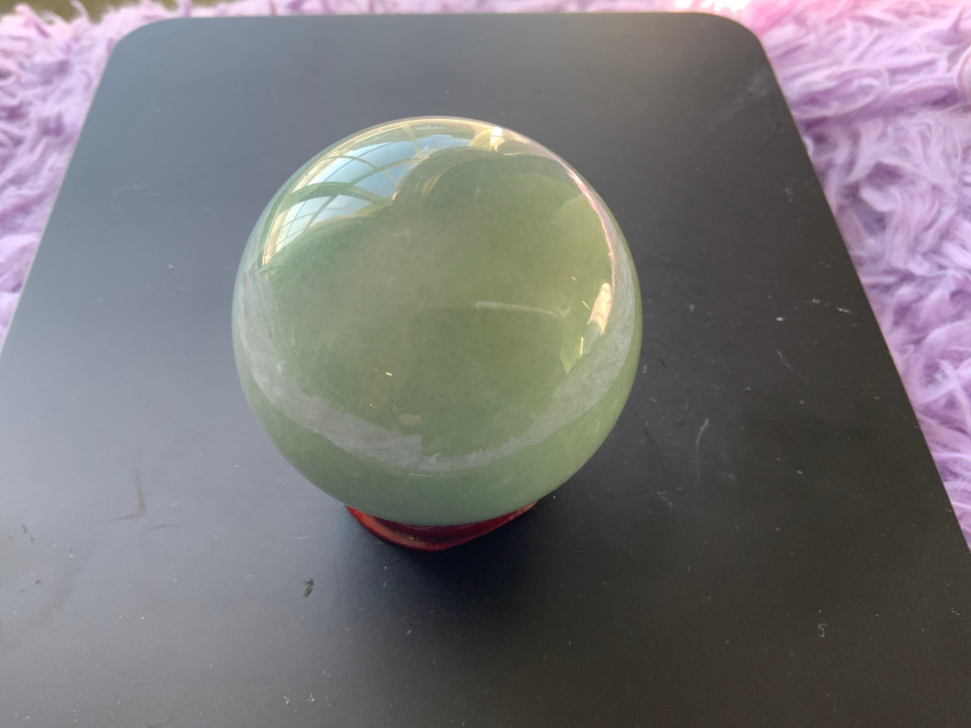 Beautiful 6.9 oz crystal Aventurine sphere crystal ball with wooden stand