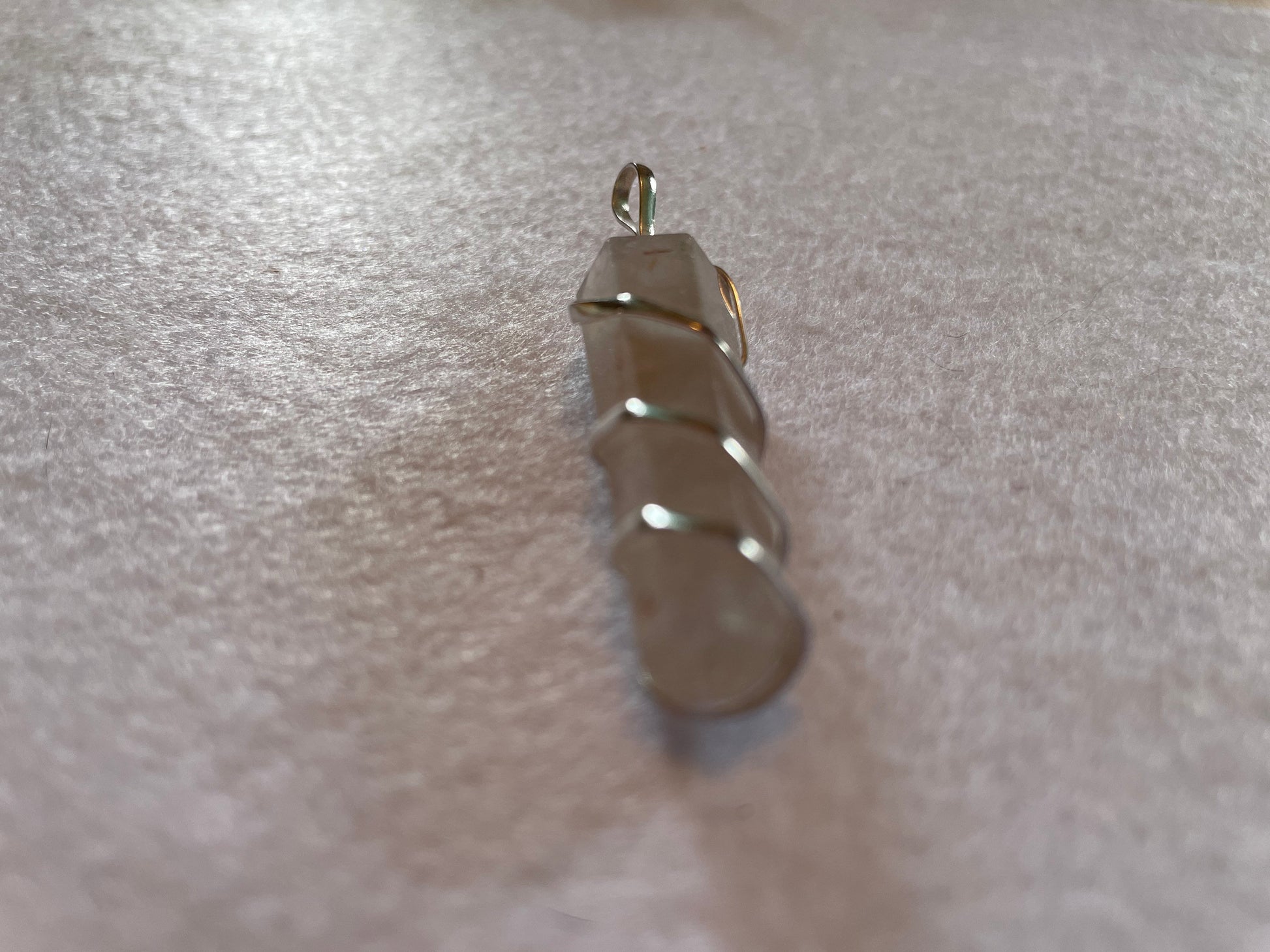 Beautiful Clear Quartz Point Pendant is 1.75” and is attached to precious silver making the total length 2.25”