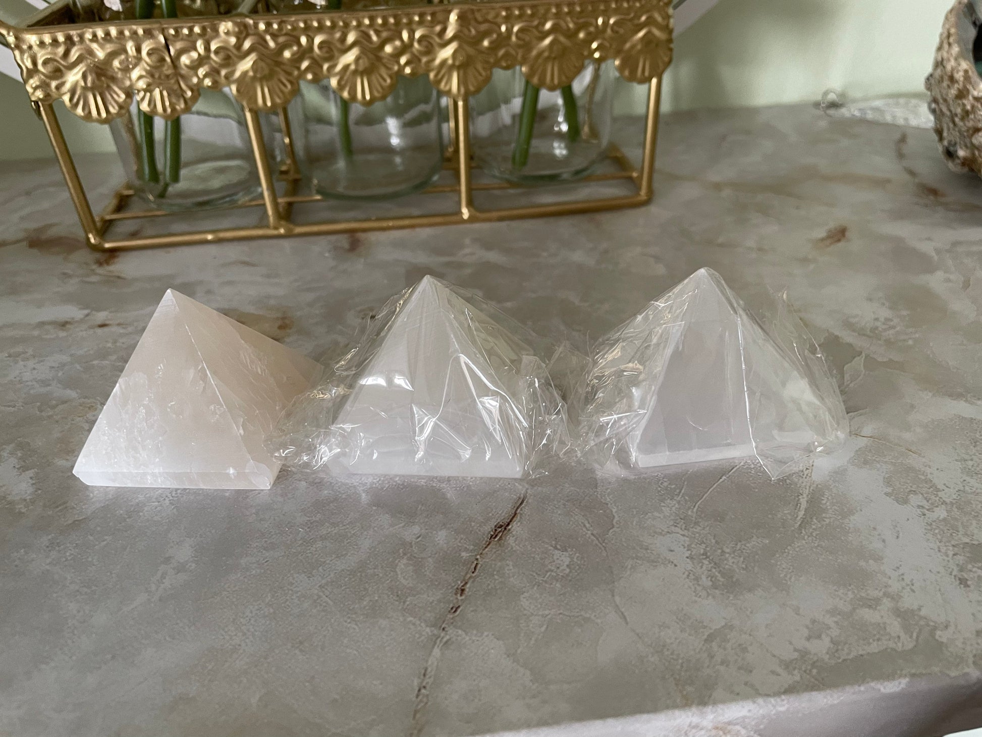 Beautiful Gemstone Carving Pyramid 30-40mm White Selenite