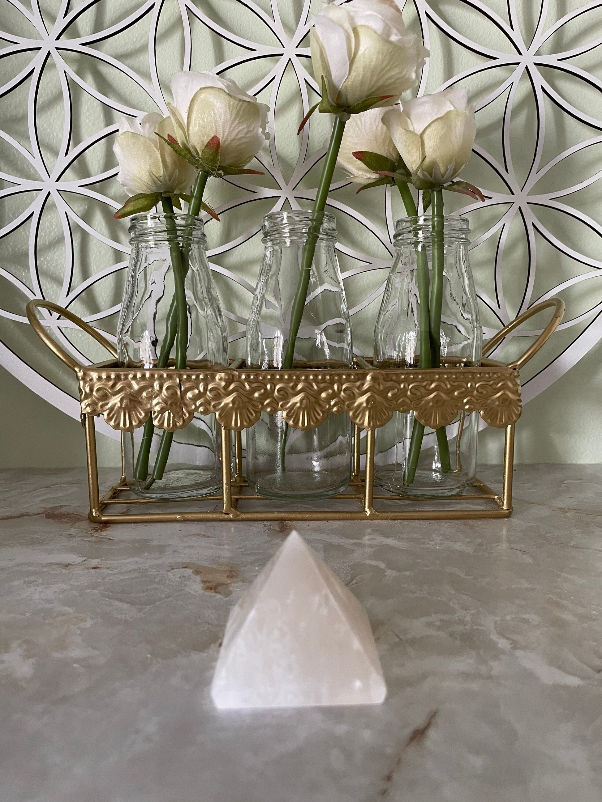 Gemstone Carving Pyramid 30-40mm White Selenite Height in Inches: 2.5 Width in Inches: 1.75 Length in Inches: 1.75 Made In: Morocco Selenite is a powerful cleansing tool for your home or office, and will continually purify and protect the energy of your environment. It is believed by energy healers that Selenite can help reverse the harmful effects of free radicals in the environment and has the ability to heal and regenerate on the cellular level. Selenite is often used to remove energy blocks or stagnant forces from the etheric body. Its high vibrations cleanse the aura and activate the higher chakras. It can also be a helpful tool for those who wish to strengthen their mental abilities. Selenite opens the higher chakras, helps us to connect with our Higher Self, while bringing feelings of tranquility and peace. Selenite can be used to activate and clear the higher chakras, which is why our Selenite are excellent tools for many spiritual practices. Selenite can help you reconnect with your spirit guides and guardian angels, opening you to receive direction and protection from higher realms. It is one of the few crystals in the mineral kingdom that can be used to cleanse and recharge other stones, without needing charging itself, making it a must-have for crystal lovers. Selenite is an excellent tool for spiritual healing sessions, while also making a beautiful decorative piece that will bring the radiant beauty of the Moon to your home! Because this is a natural product, size and shape may vary slightly.