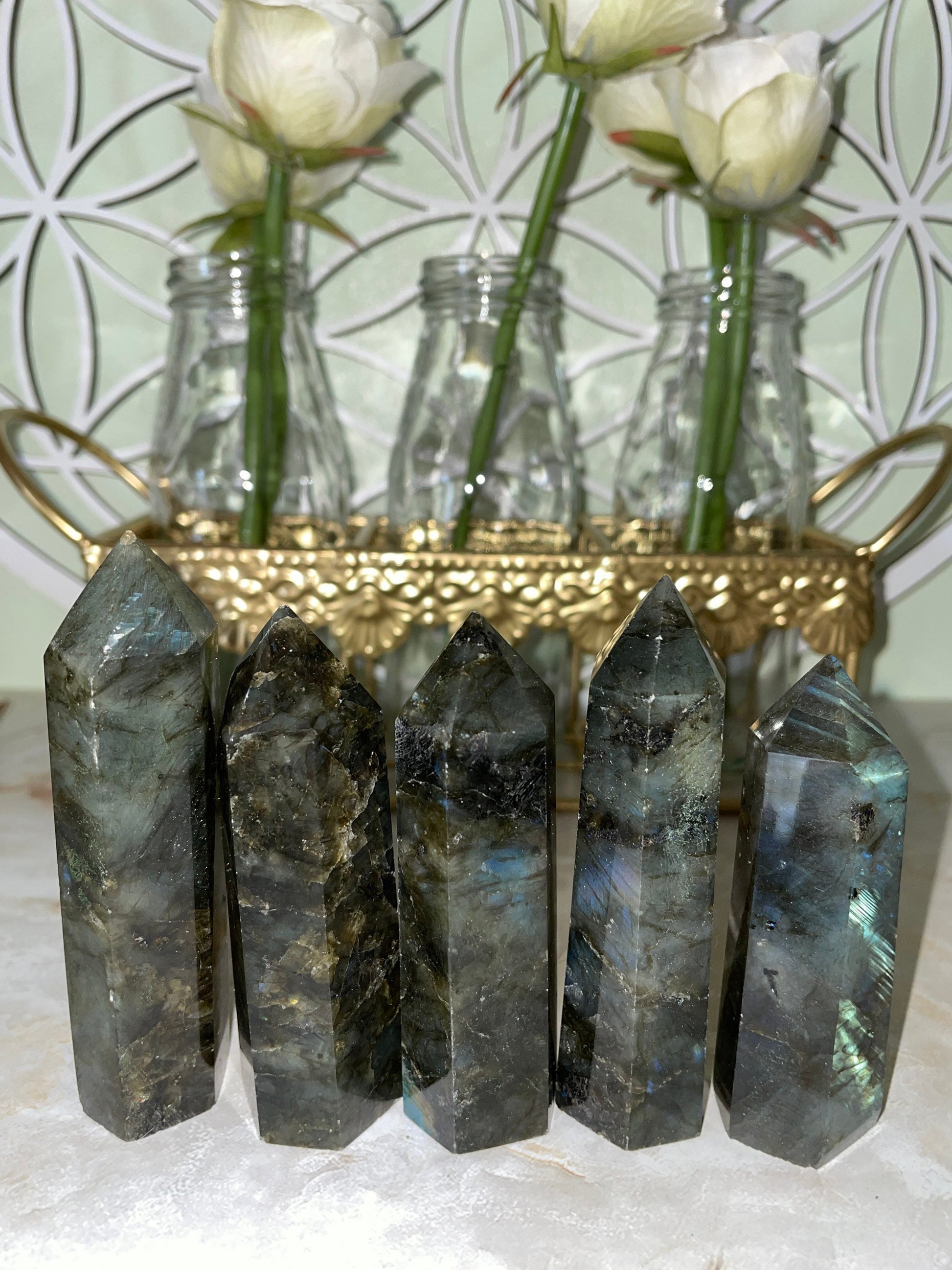 Labradorite is a stone of transformation, Labradorite is a useful companion through change, imparting strength and perseverance. It balances and protects the aura, raises consciousness and grounds spiritual energies. Excellent for strengthening intuition - promoting psychic abilities. Powerful in revealing the truth behind illusions, Labradorite banishes fears and insecurities, and strengthens faith in the self and trust in the universe. It stimulates the imagination and calms an overactive mind, developing enthusiasm and new ideas.