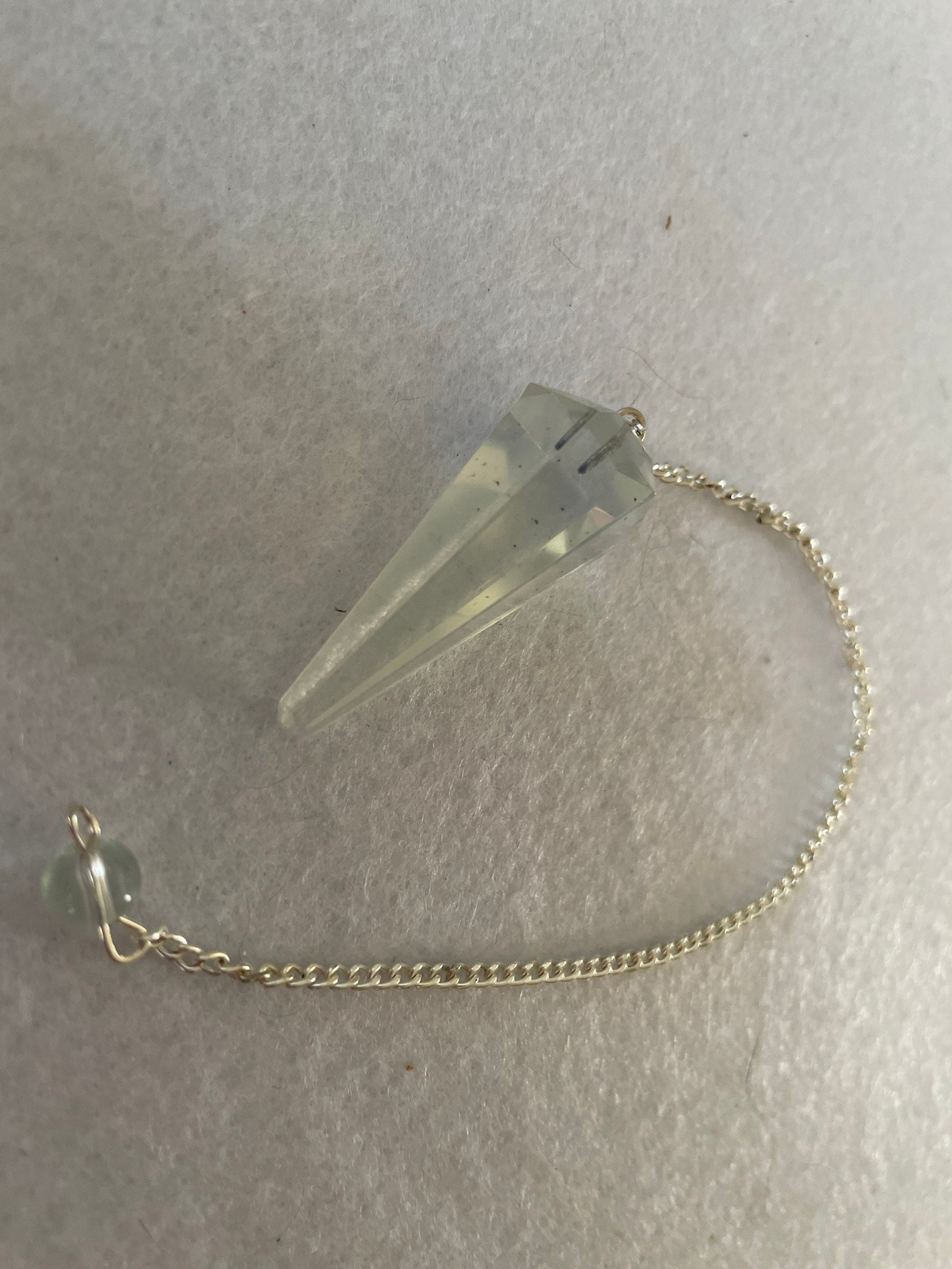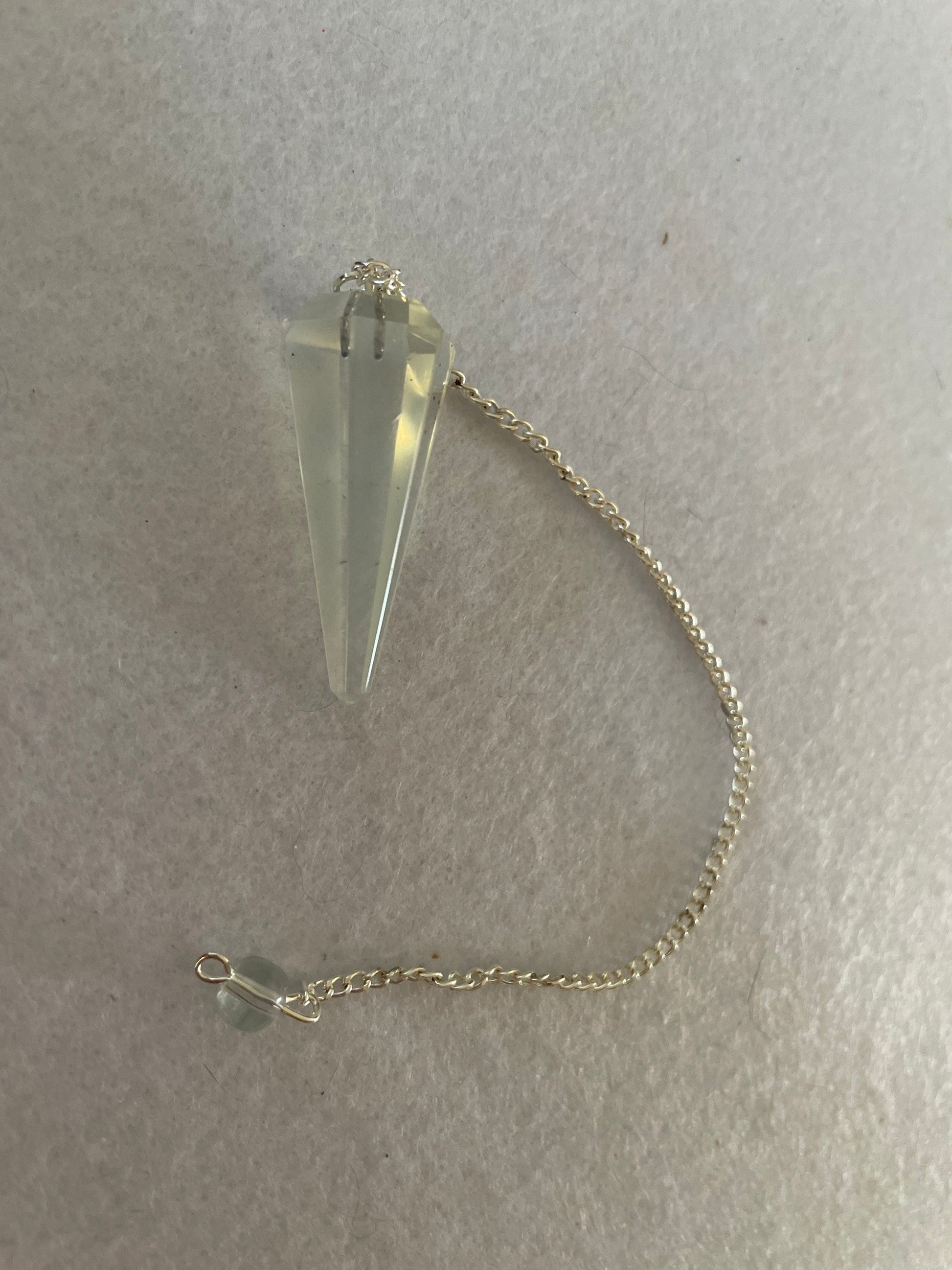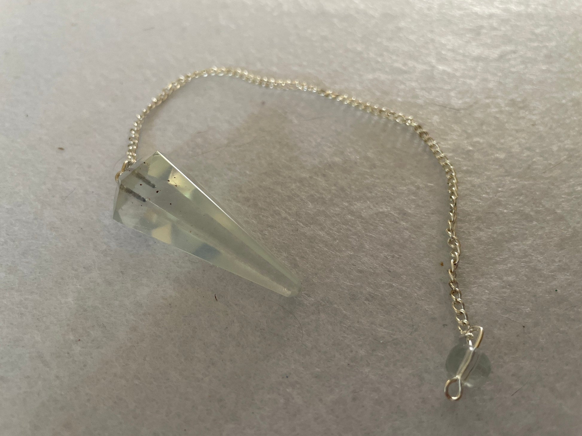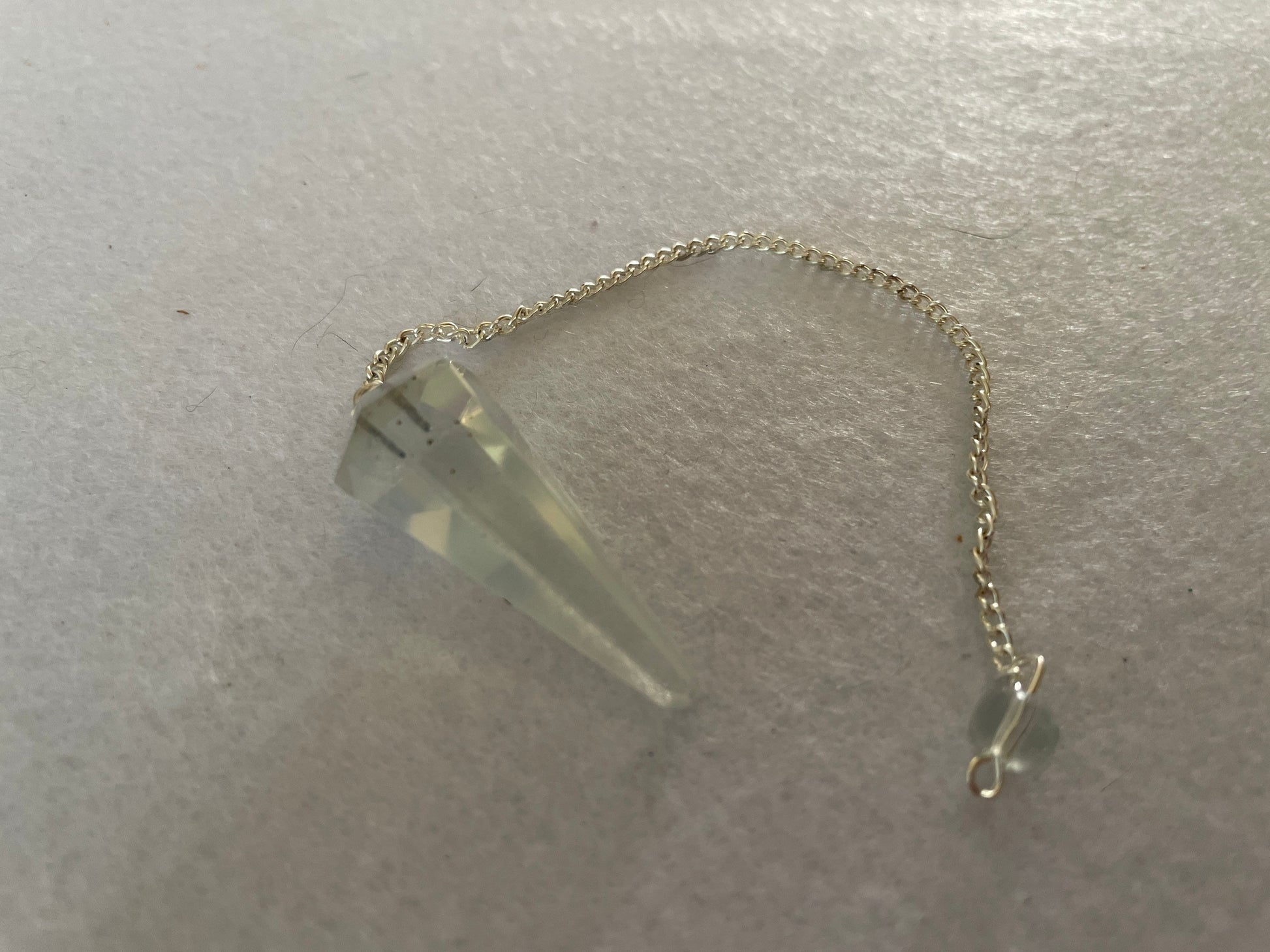 Beautiful Opalite pendulum is approximately 1.5” and with chain is 8.25” total length.