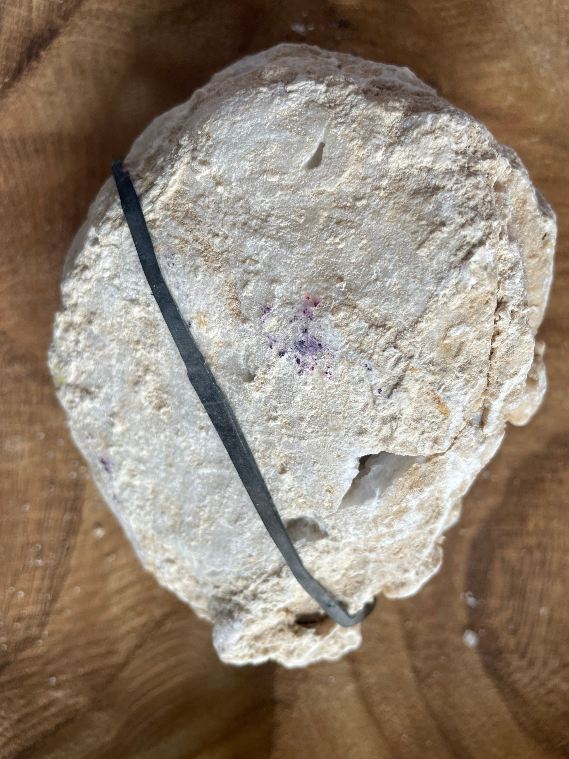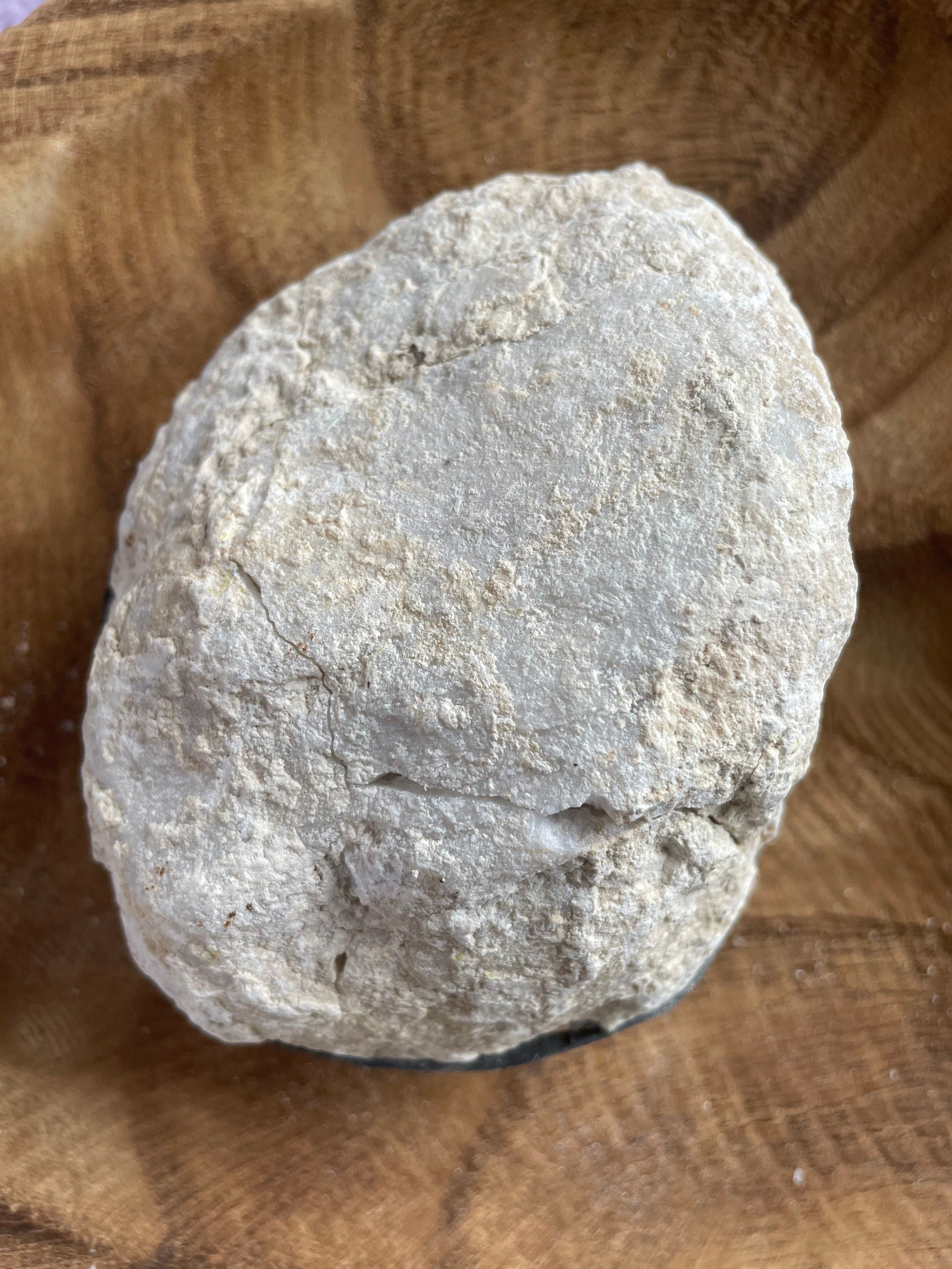 Please look at all pictures. It is normal to have small fragments of this geode crack off during shipping. You will receive this actual geode which weighs 1 Pound and 9.5 ounces. It is approximately 5” x 4” x 3”.