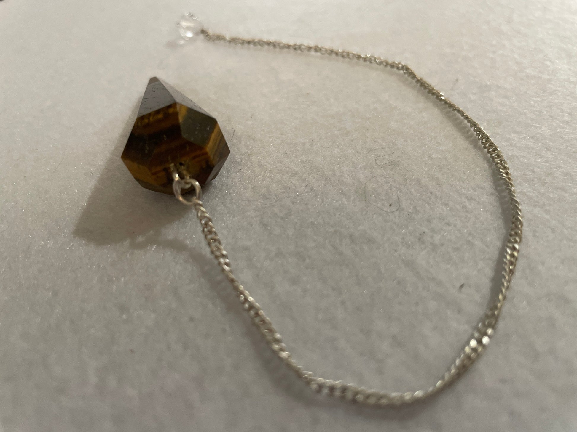 Beautiful Tiger’s Eye pendulum ornaments perfect for dowsing. Hang it in a well lit window, from the ceiling or on the wall!