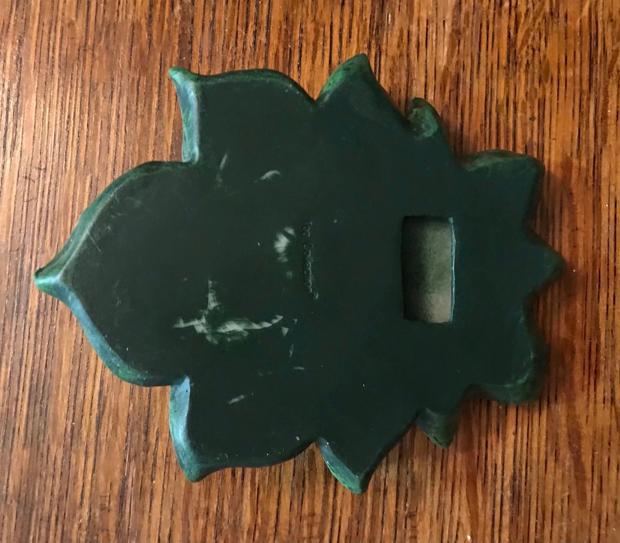 This blueberry green man plaque measures L: 4.75ā and W: 3.75ā.