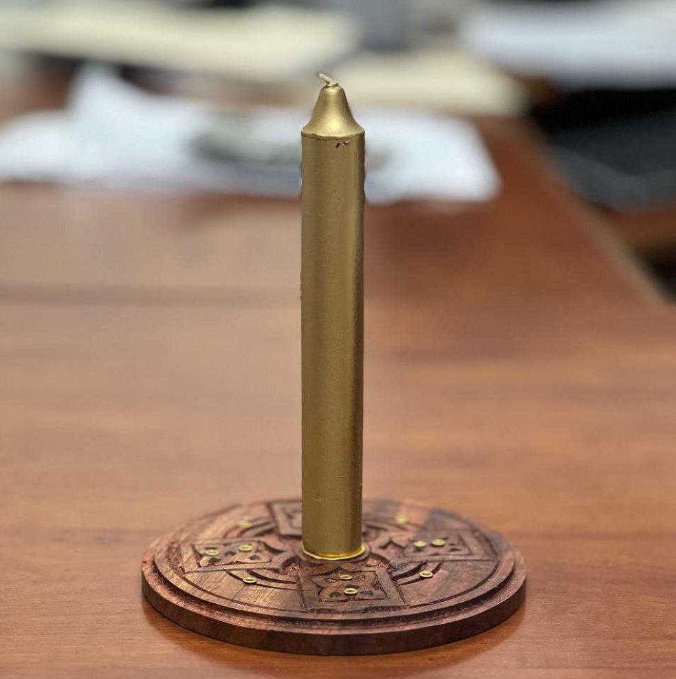 Element Meaning: "Metallic gold candles are often used on pagan altars to represent God or more generally, masculine energies. This is also an appropriate color to represent the Sun, or any solar deities, or those who are associated with the elements of Fire or Earth. This is a color that corresponds to energy and manifestation. Use this candle during Yule with navy blue.”