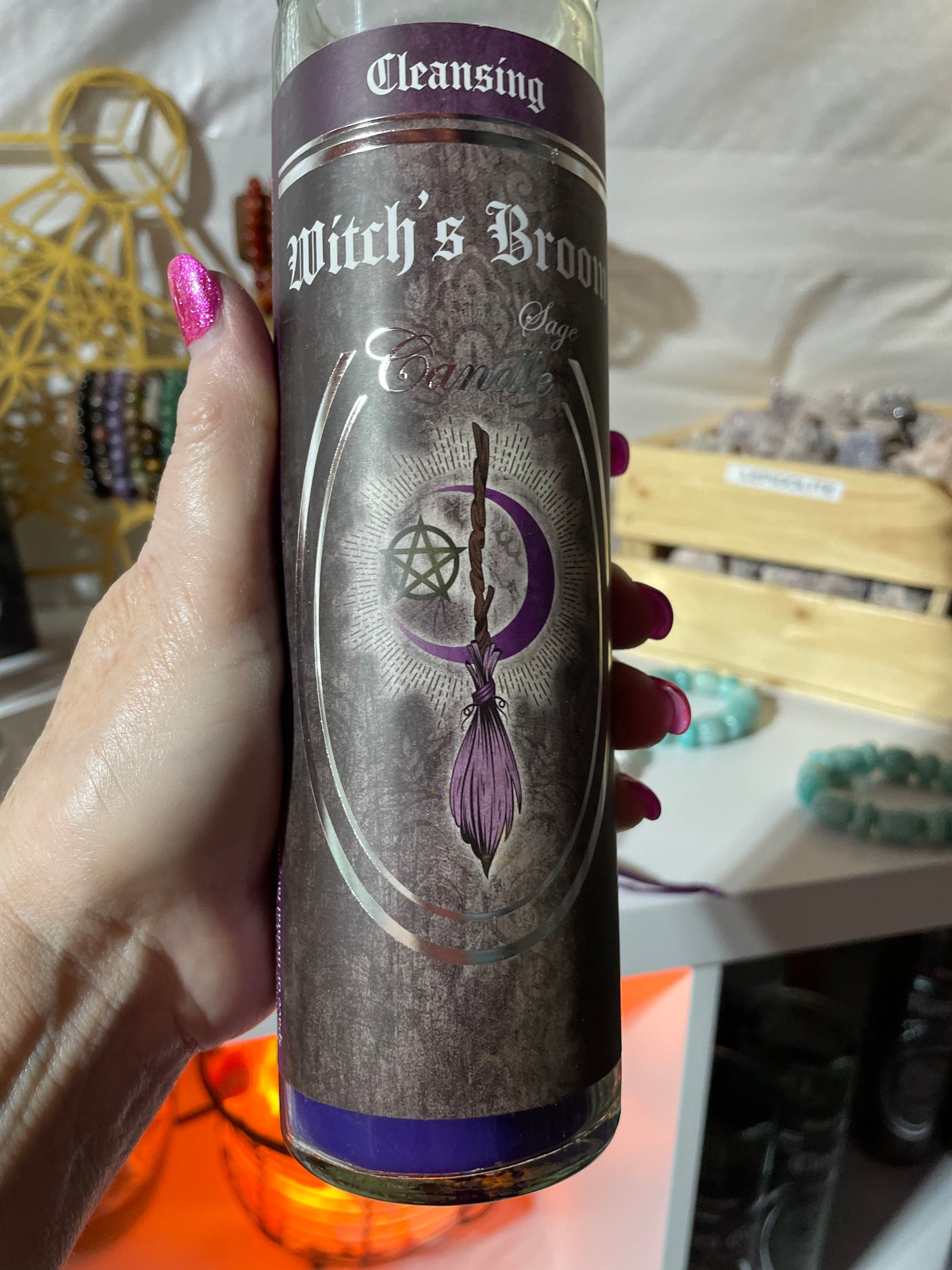 7 Day Glass Ritual Candle - Witch’s Broom - Sage
