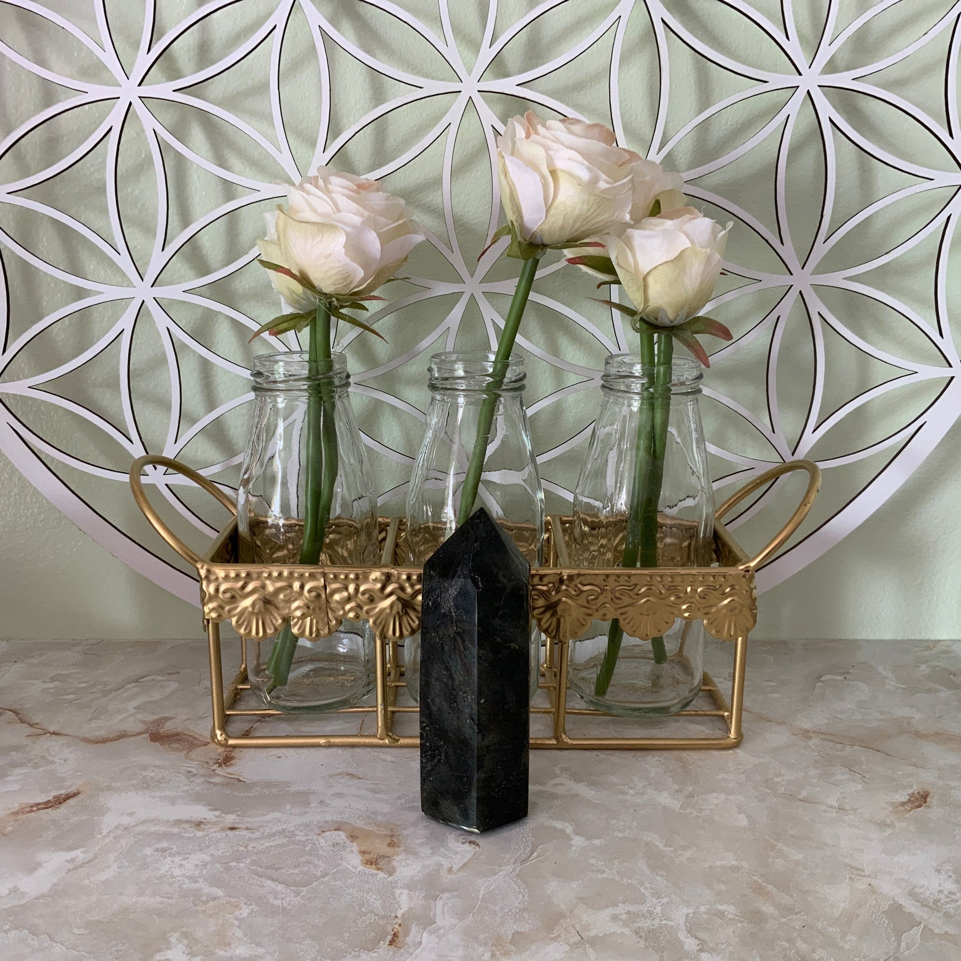 Labradorite is a stone of transformation, Labradorite is a useful companion through change, imparting strength and perseverance. It balances and protects the aura, raises consciousness and grounds spiritual energies. Excellent for strengthening intuition - promoting psychic abilities. Powerful in revealing the truth behind illusions, Labradorite banishes fears and insecurities, and strengthens faith in the self and trust in the universe. It stimulates the imagination and calms an overactive mind, developing enthusiasm and new ideas.