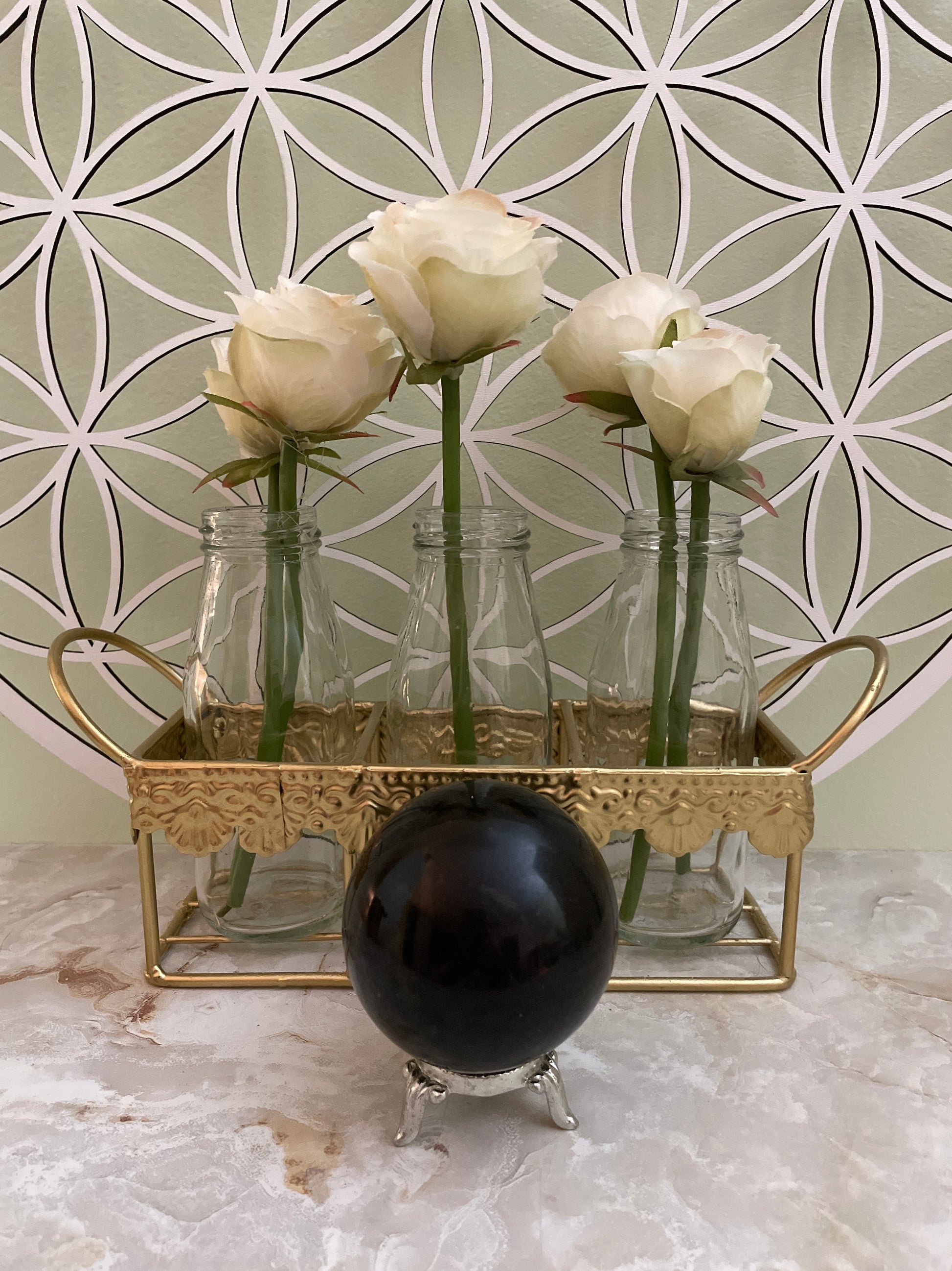 Black Tourmaline absorbs negativity at such a high level that it should be cleansed and re-charged often. This magnificent sphere is approximately 2.5” in diameter and weighs 1 lb .07 ounces with its silver stand.