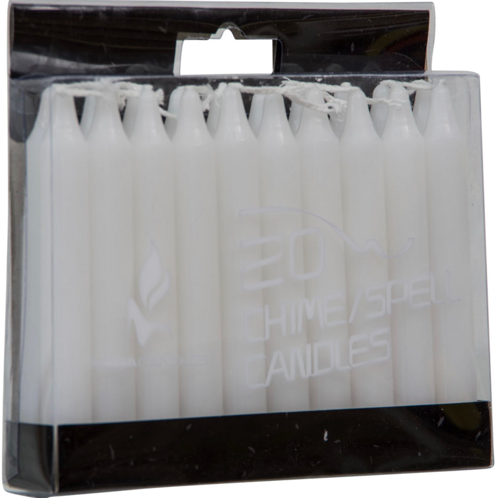 Our 20 pack of WHITE chime candles can enhance any décor or ritual. 2 hour approximate burn time. 4”