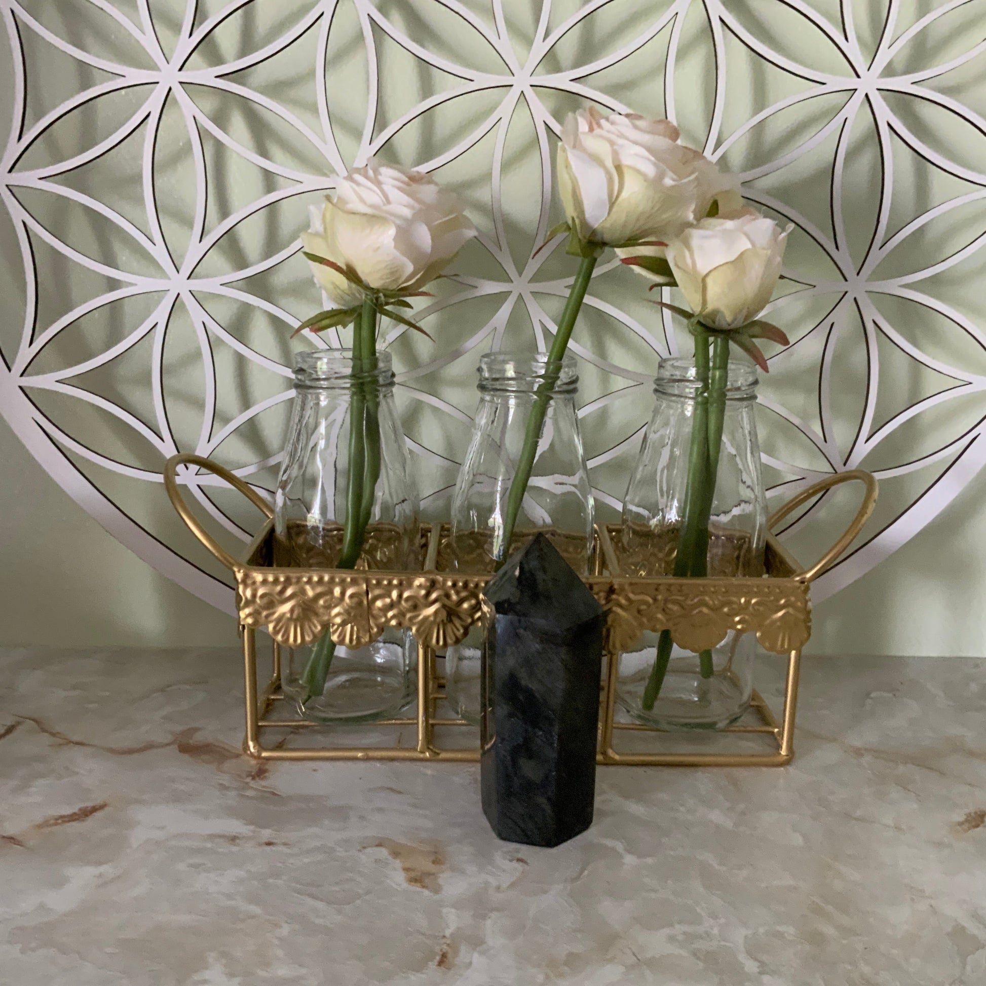 Labradorite is a stone of transformation, Labradorite is a useful companion through change, imparting strength and perseverance. It balances and protects the aura, raises consciousness and grounds spiritual energies. Excellent for strengthening intuition - promoting psychic abilities. Powerful in revealing the truth behind illusions, Labradorite banishes fears and insecurities, and strengthens faith in the self and trust in the universe. It stimulates the imagination and calms an overactive mind, developing enthusiasm and new ideas.