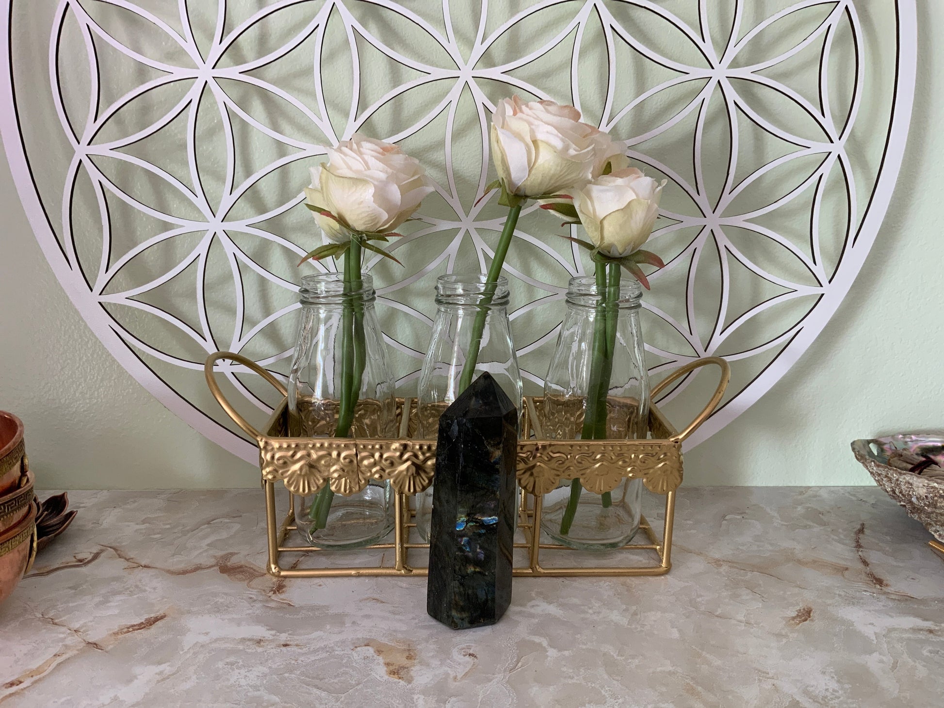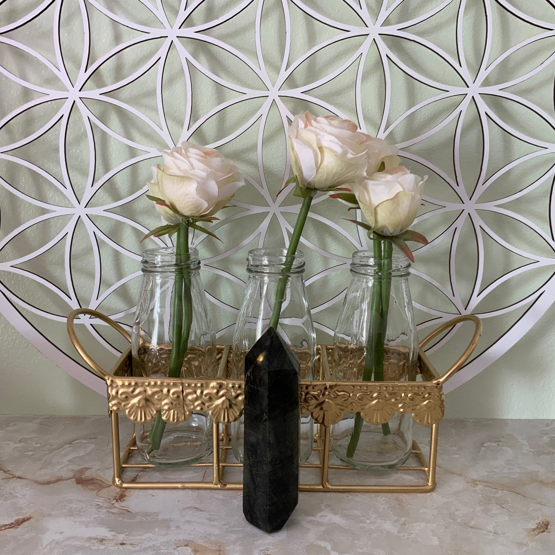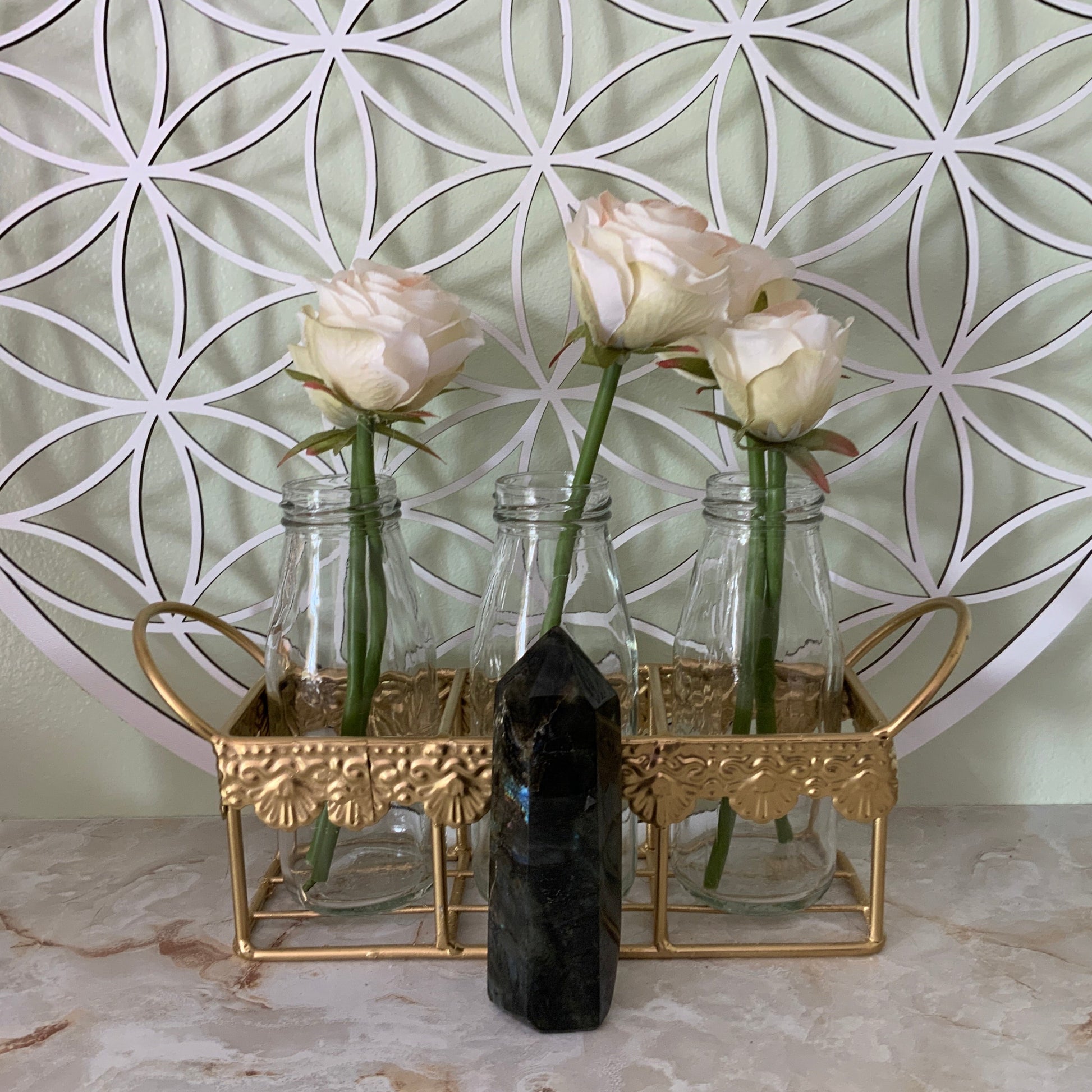 Labradorite is a stone of transformation, Labradorite is a useful companion through change, imparting strength and perseverance. It balances and protects the aura, raises consciousness and grounds spiritual energies. Excellent for strengthening intuition - promoting psychic abilities. Powerful in revealing the truth behind illusions, Labradorite banishes fears and insecurities, and strengthens faith in the self and trust in the universe. It stimulates the imagination and calms an overactive mind, developing enthusiasm and new ideas.