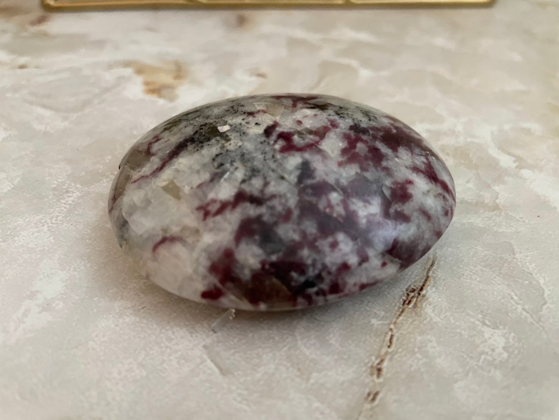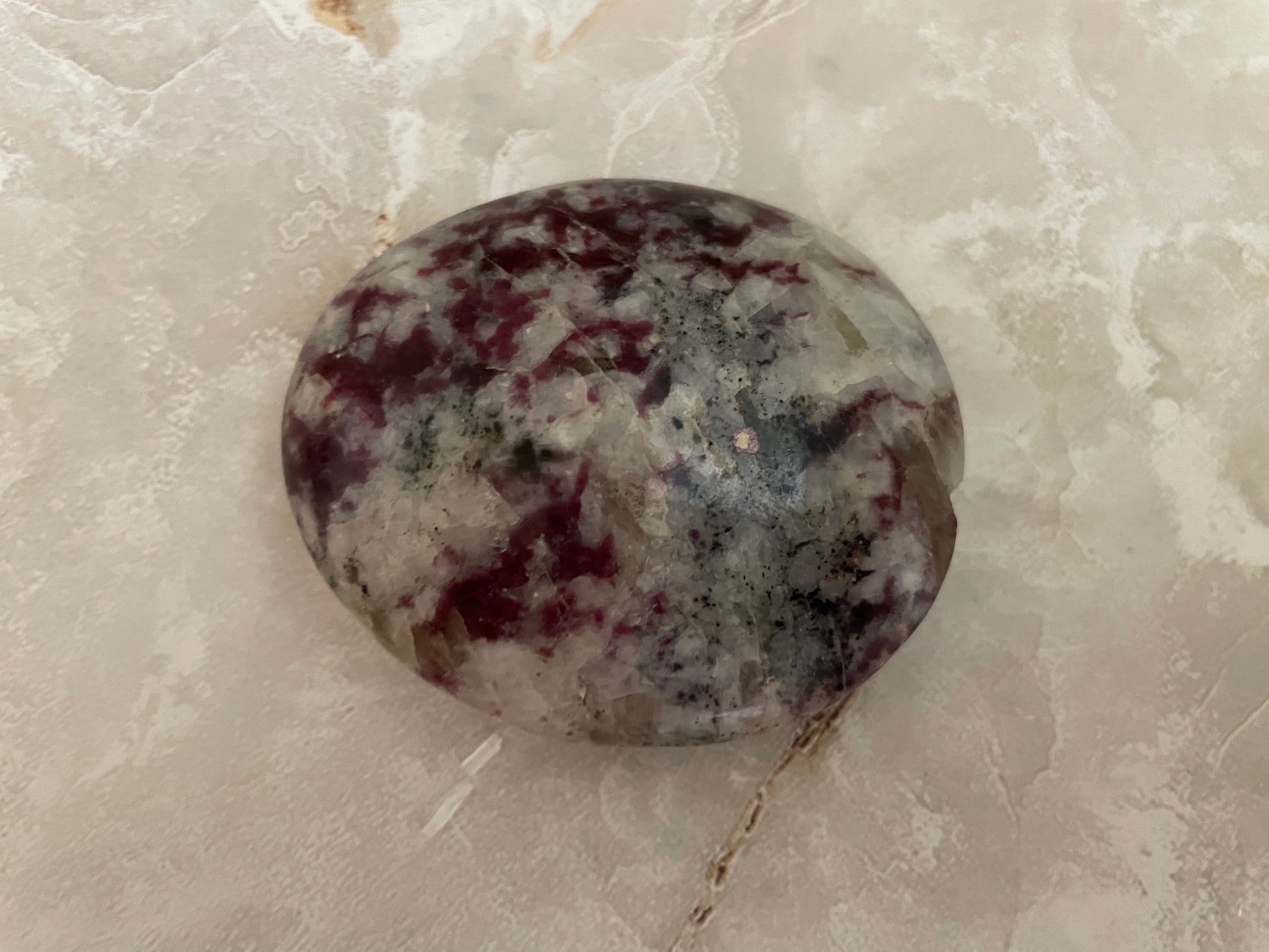 Metaphysical Properties of Ruby in Feldspar: Ruby in Feldspar is a powerful combination of two healing stones. Ruby is a stone of love, and when put together with Feldspar it is a strong heart healer. It facilitates balance of the heart and all of your emotions. Ruby in Feldspar is a powerful stone of support, especially in times of emotional stress or trauma. It encourages strength, insight, and courage. Ruby in Feldspar helps to align all of the Chakras, and activates the Heart Chakra. It can help connect you to your higher self. Ruby in Feldspar can inspire the courage to express your feelings, and helps you to accept your emotions. Ruby in Feldspar balances the heart with the mind and helps you connect to others.