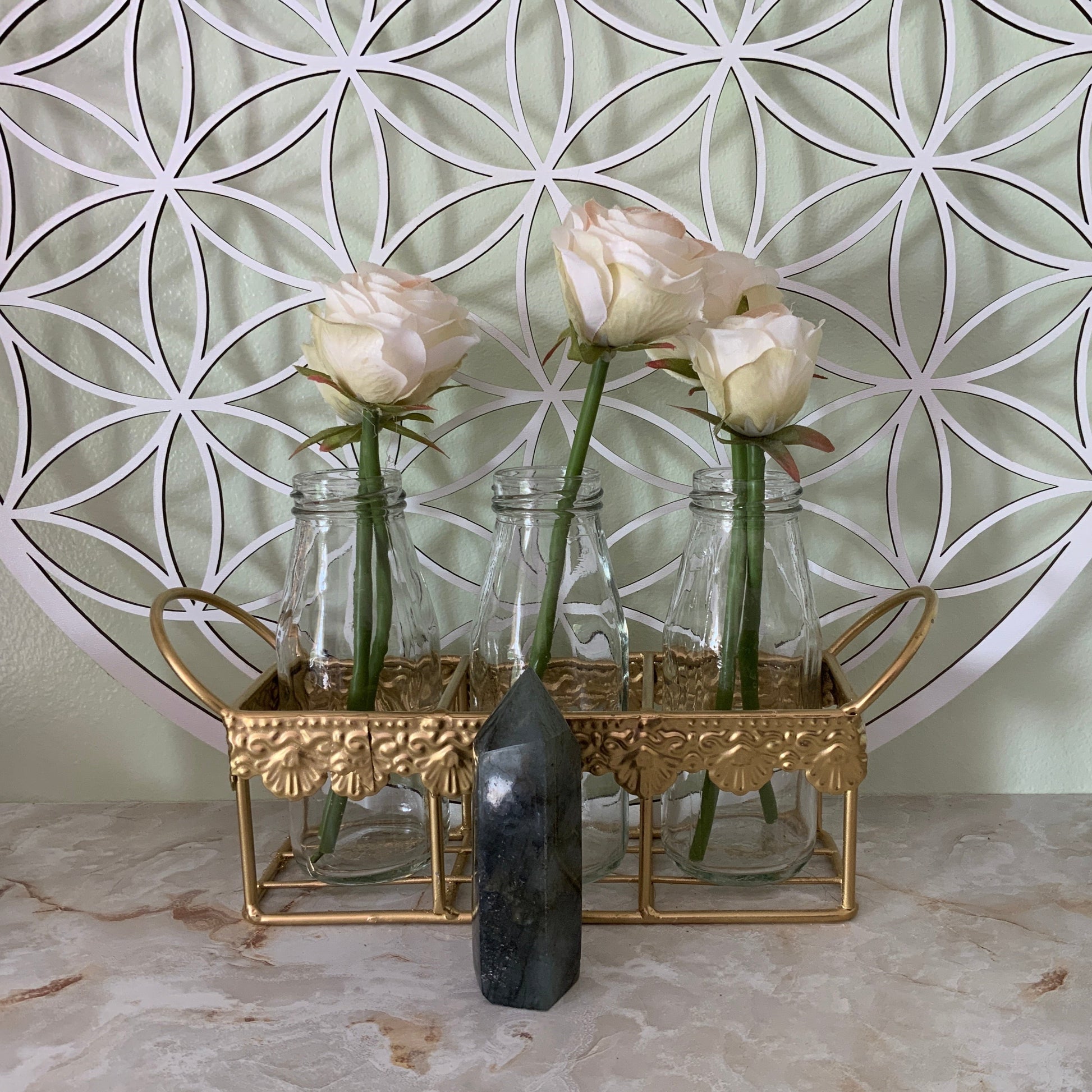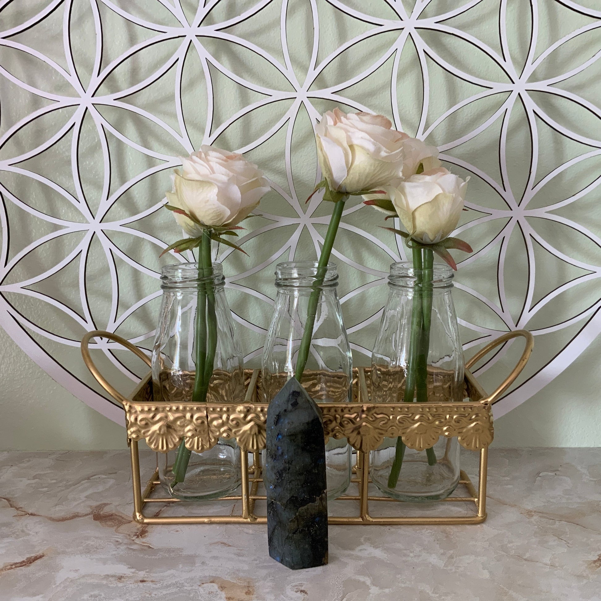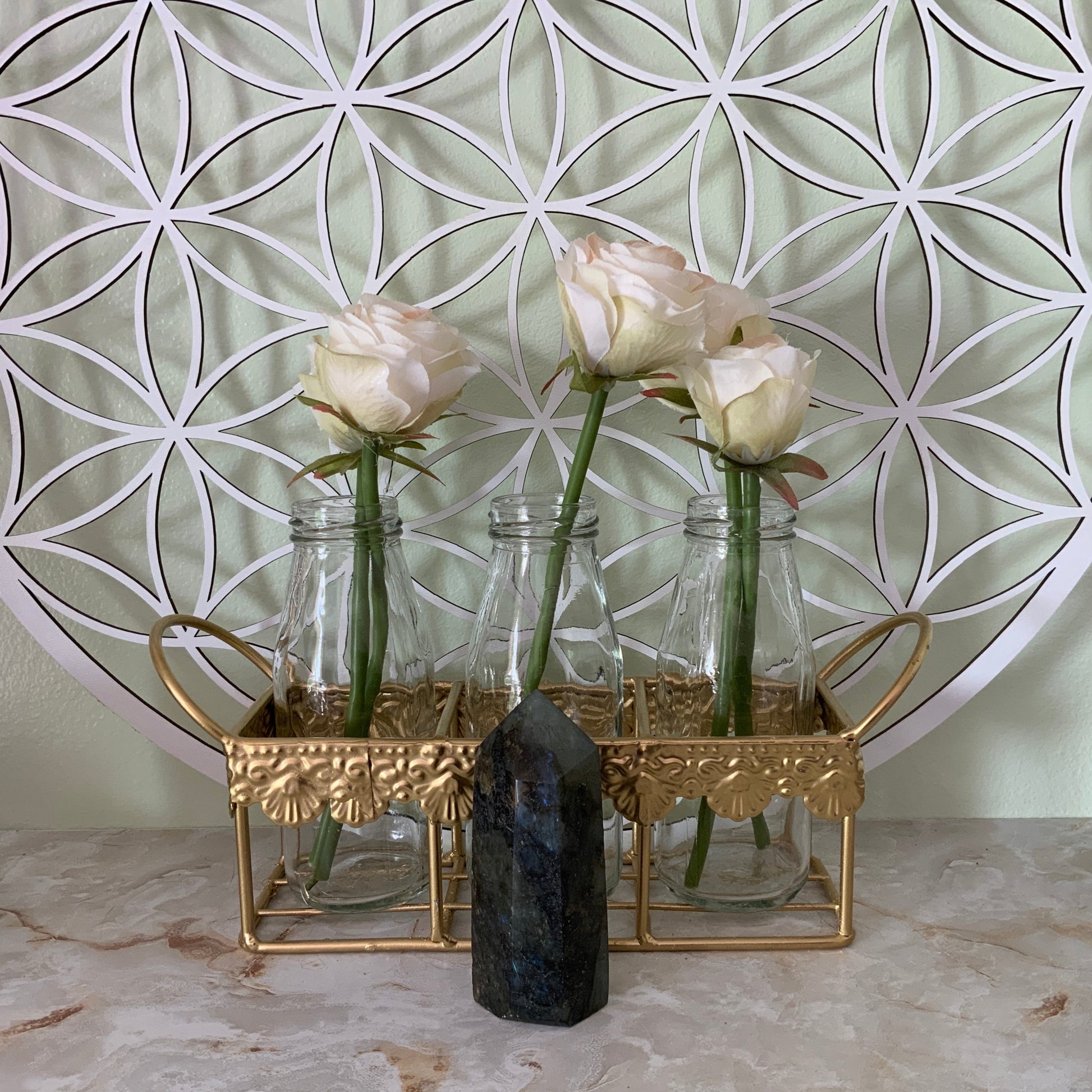 Labradorite is a stone of transformation, Labradorite is a useful companion through change, imparting strength and perseverance. It balances and protects the aura, raises consciousness and grounds spiritual energies. Excellent for strengthening intuition - promoting psychic abilities. Powerful in revealing the truth behind illusions, Labradorite banishes fears and insecurities, and strengthens faith in the self and trust in the universe. It stimulates the imagination and calms an overactive mind, developing enthusiasm and new ideas.