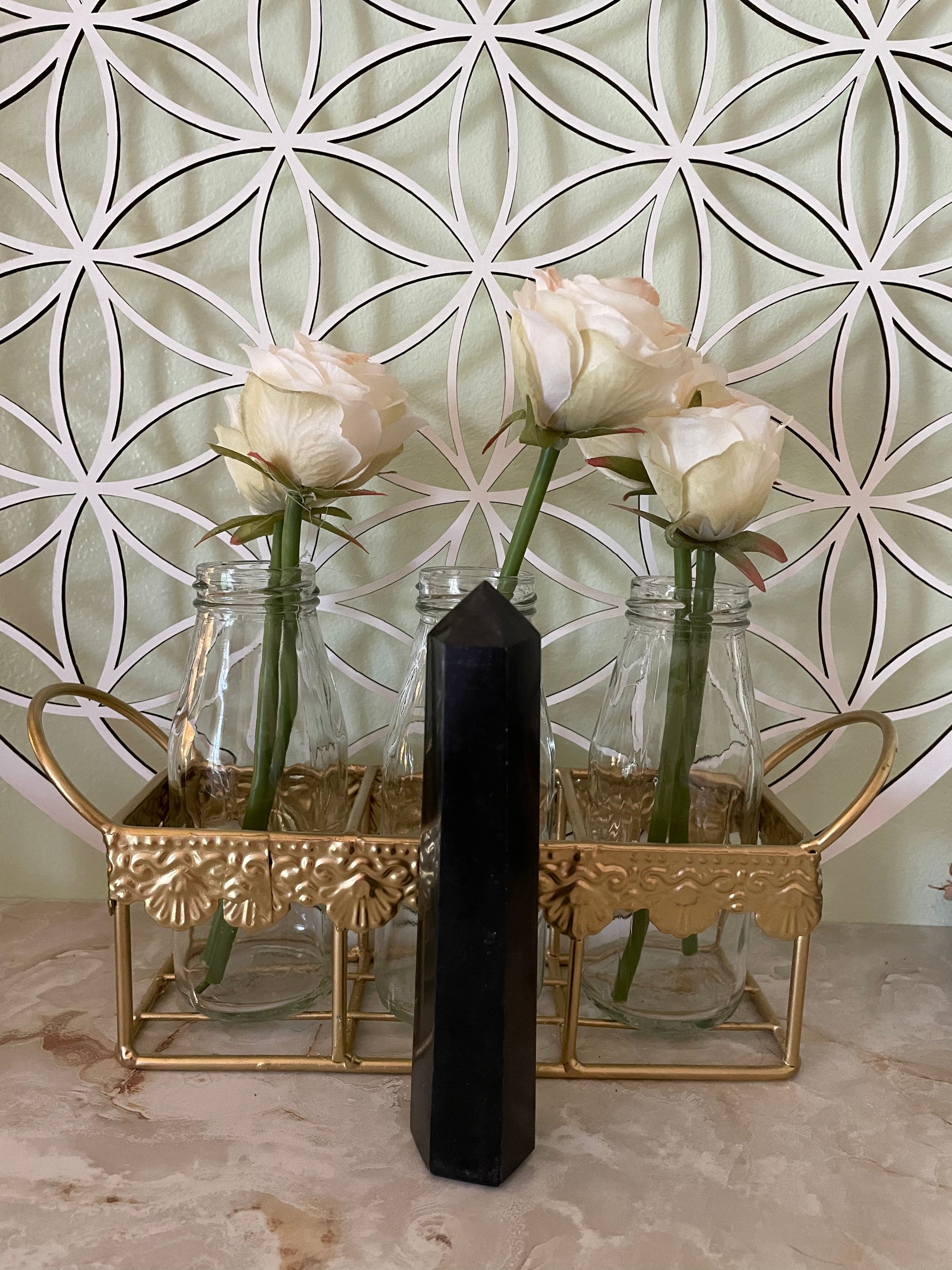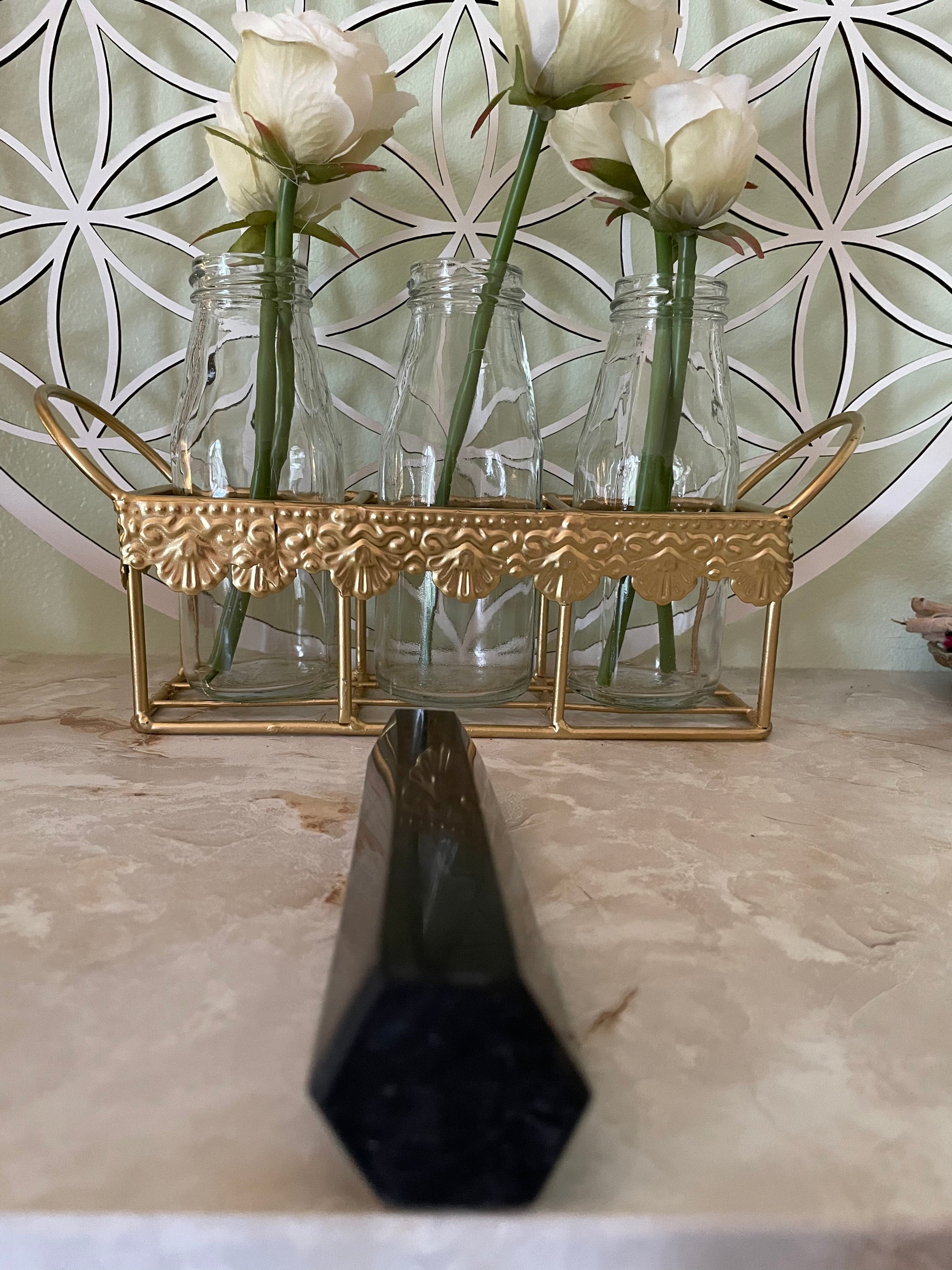 Black Tourmaline absorbs negativity at such a high level that it should be cleansed and re-charged often. This magnificent point is approximately 6.” tall and weighs 8.7 ounces.