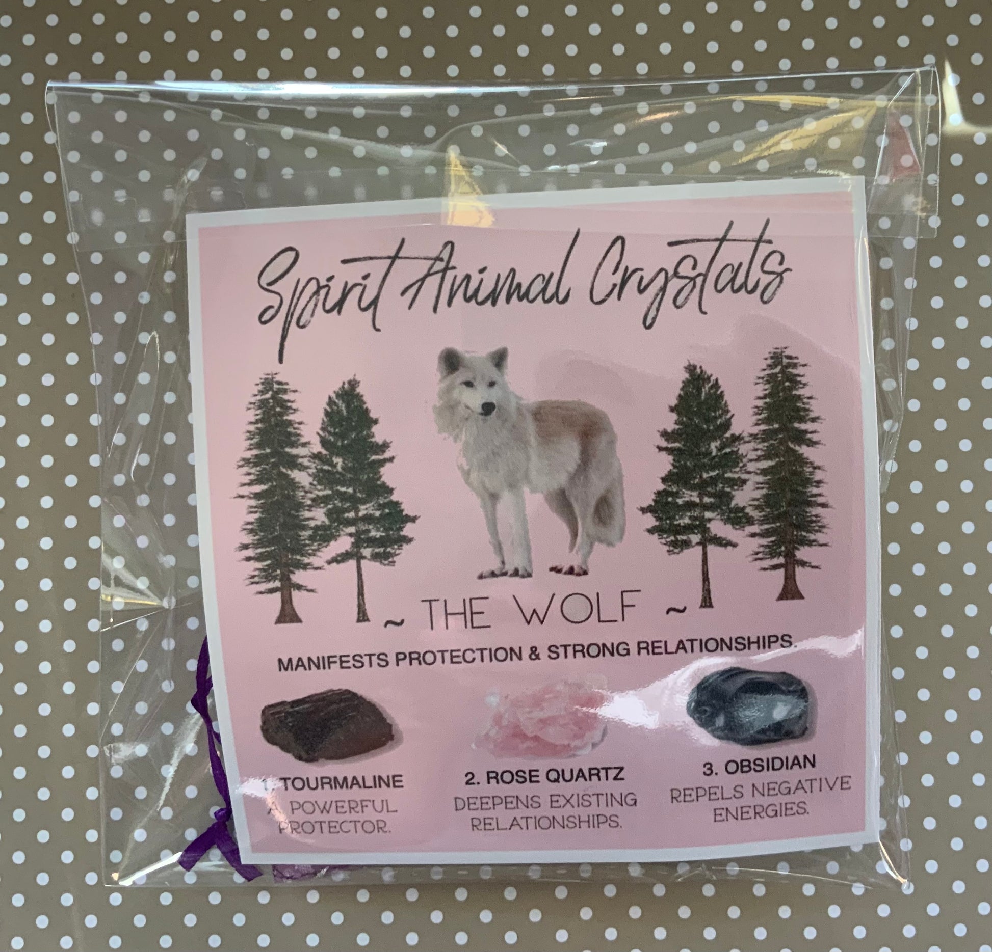 The wolf manifests protection and strong relationships. The crystals representing these properties are Black tourmaline, rose quartz and obsidian. Your spirit animal comes in mesh pouch with a Spirit Animal information card. The 3 other crystals come in a separate mesh pouch and are fully charged. These items, along with 5x5 decorative “Spirit Animal Crystals” card, crystal care and cleansing instructions are package in a clear resealable cellophane bag.
