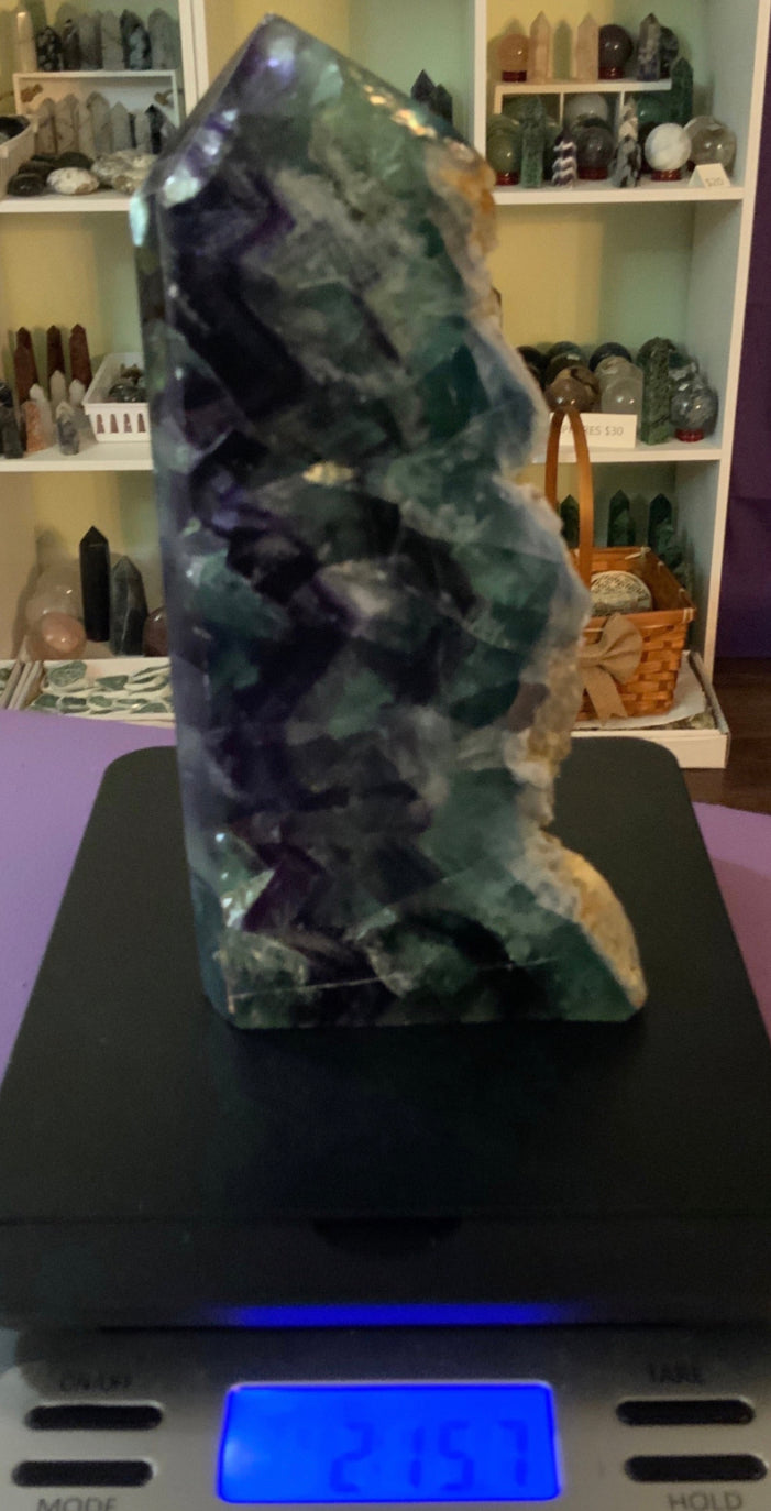 3 lb Polished with rough edge Rainbow fluorite beautiful green and purple