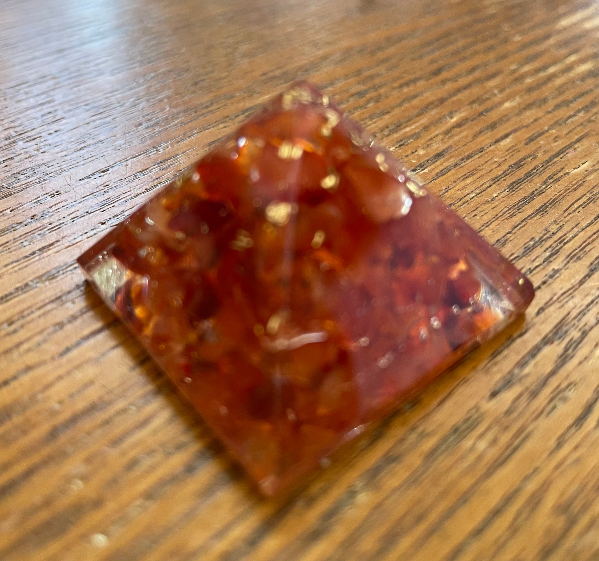 Orgonite pyramids are energy generators, which amplify intention – energy, and neutralize disruptive, environmental energies. This neutralization brings forth, kindness, happiness, and renewed hope. Organized works continuously to clear at surroundings of negativity and harmful environmental elements. When infused with the colors of the chakra at focuses on the area of intent.