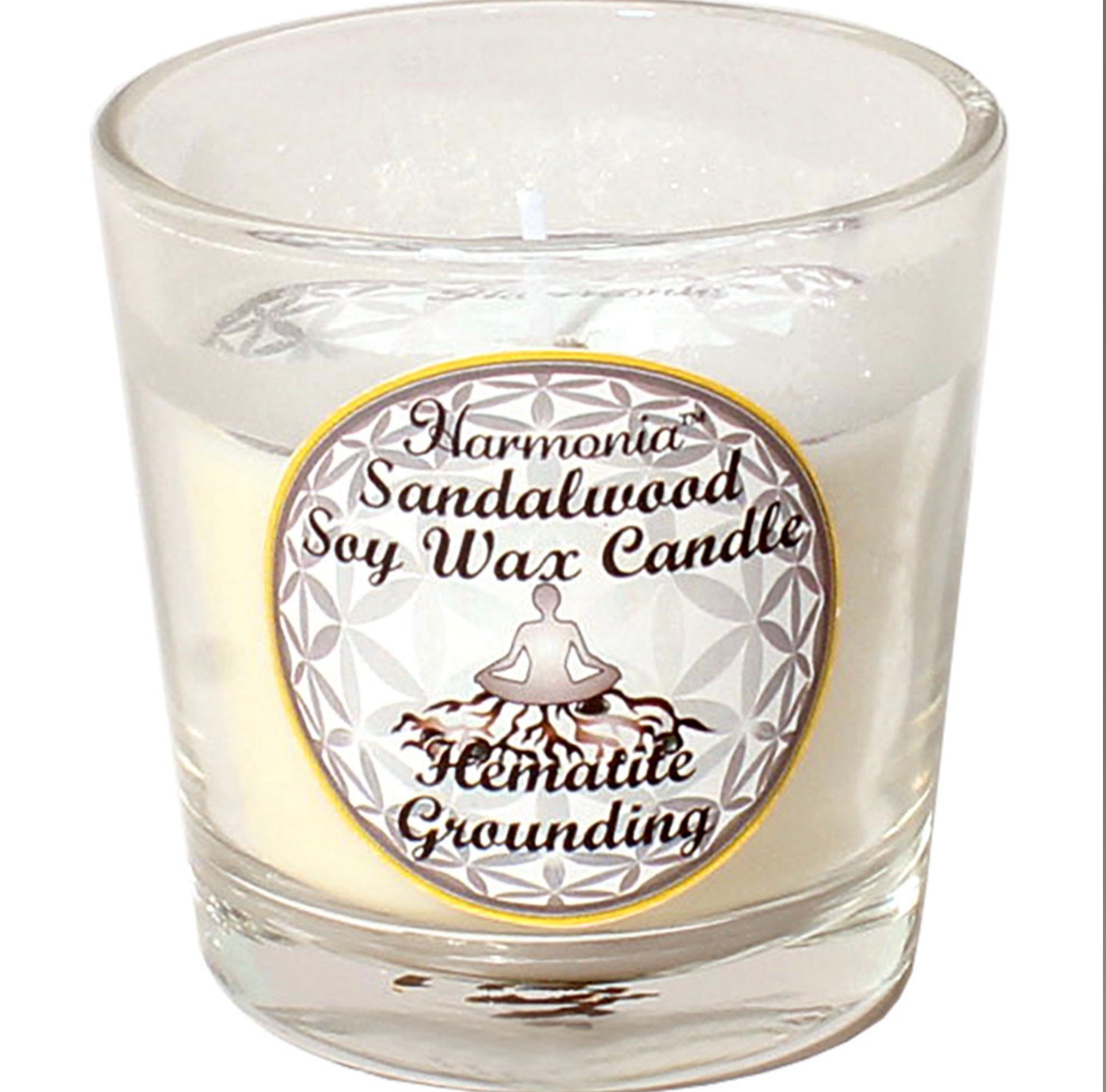 Harmonia Soy Gem Votive Candle - Grounding Hematite - Sandalwood