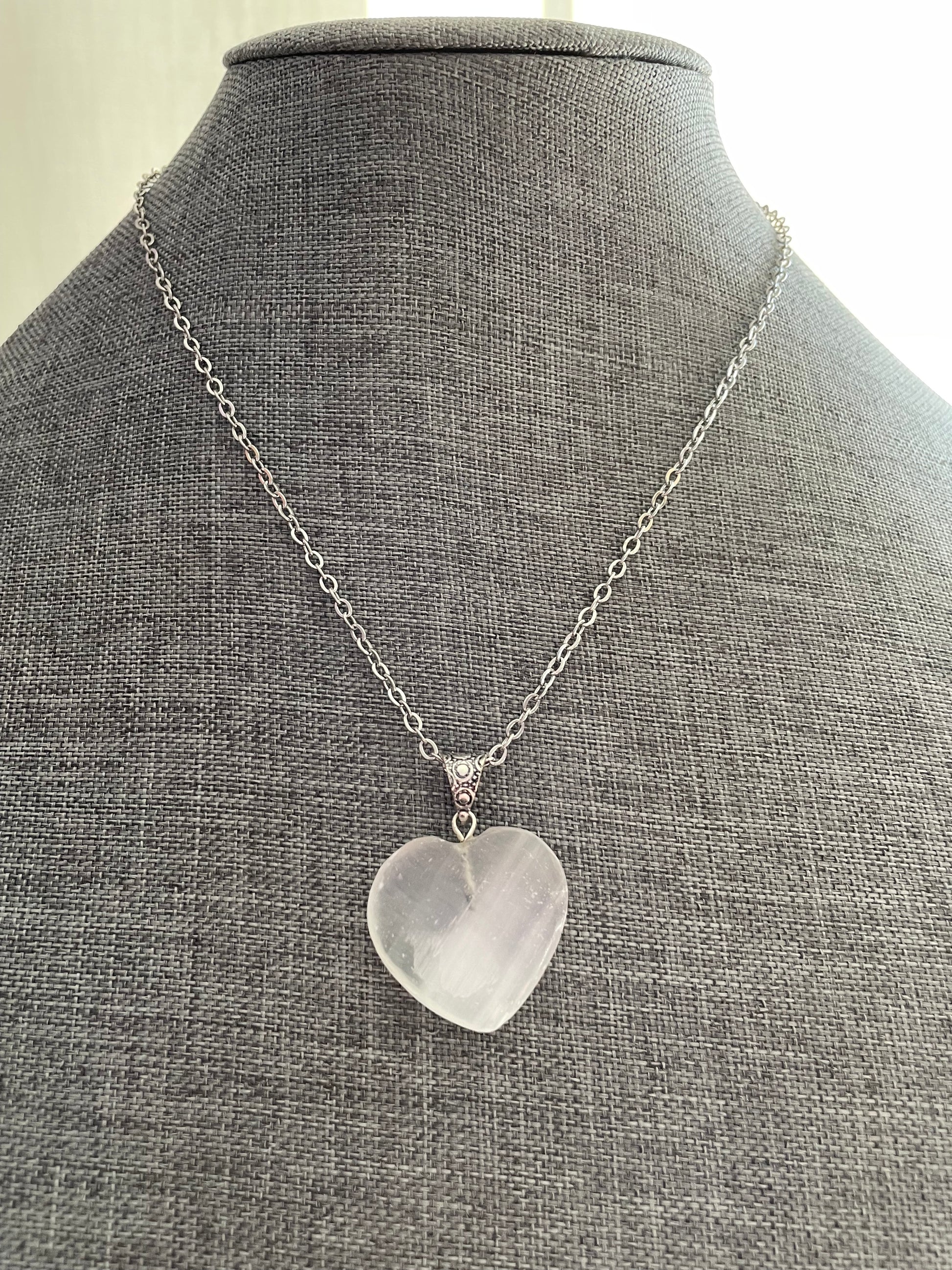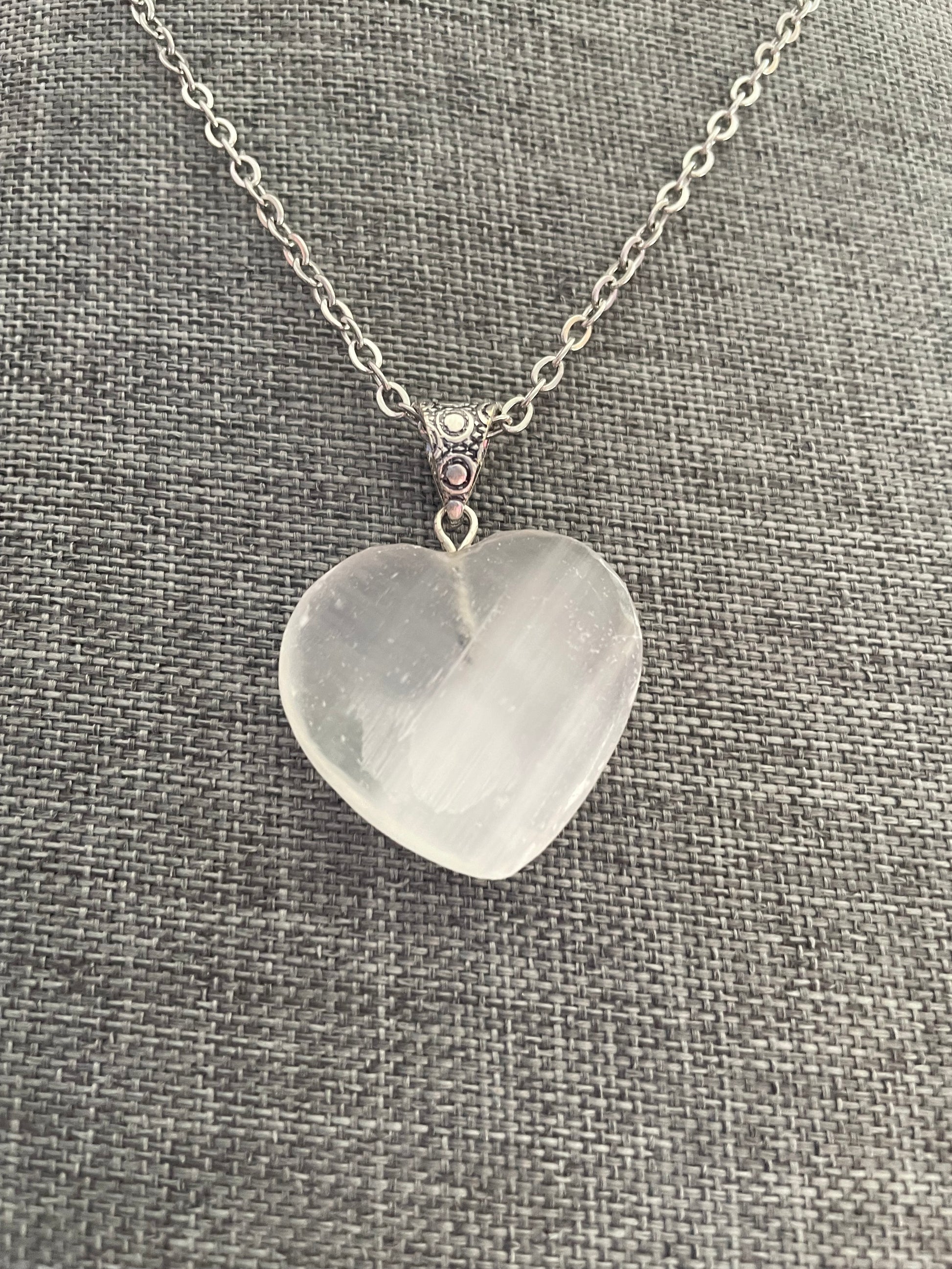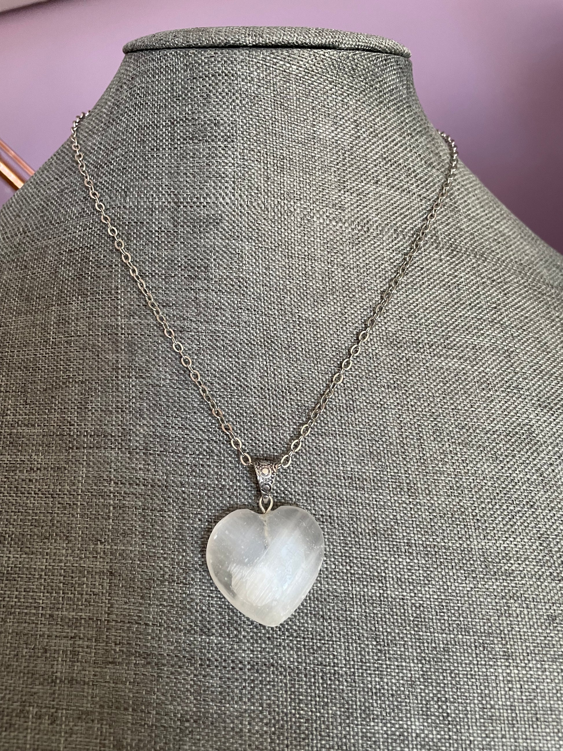 Gemstone Heart Pendant - Selenite Satin Spar - sizes vary