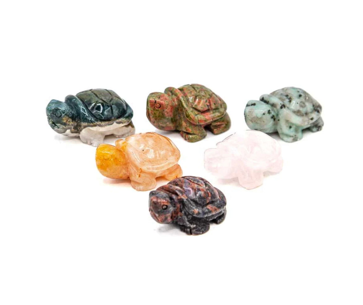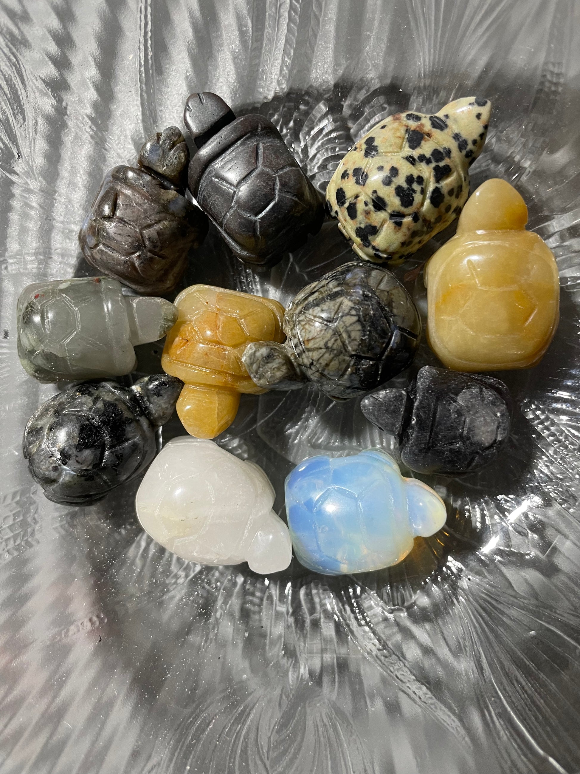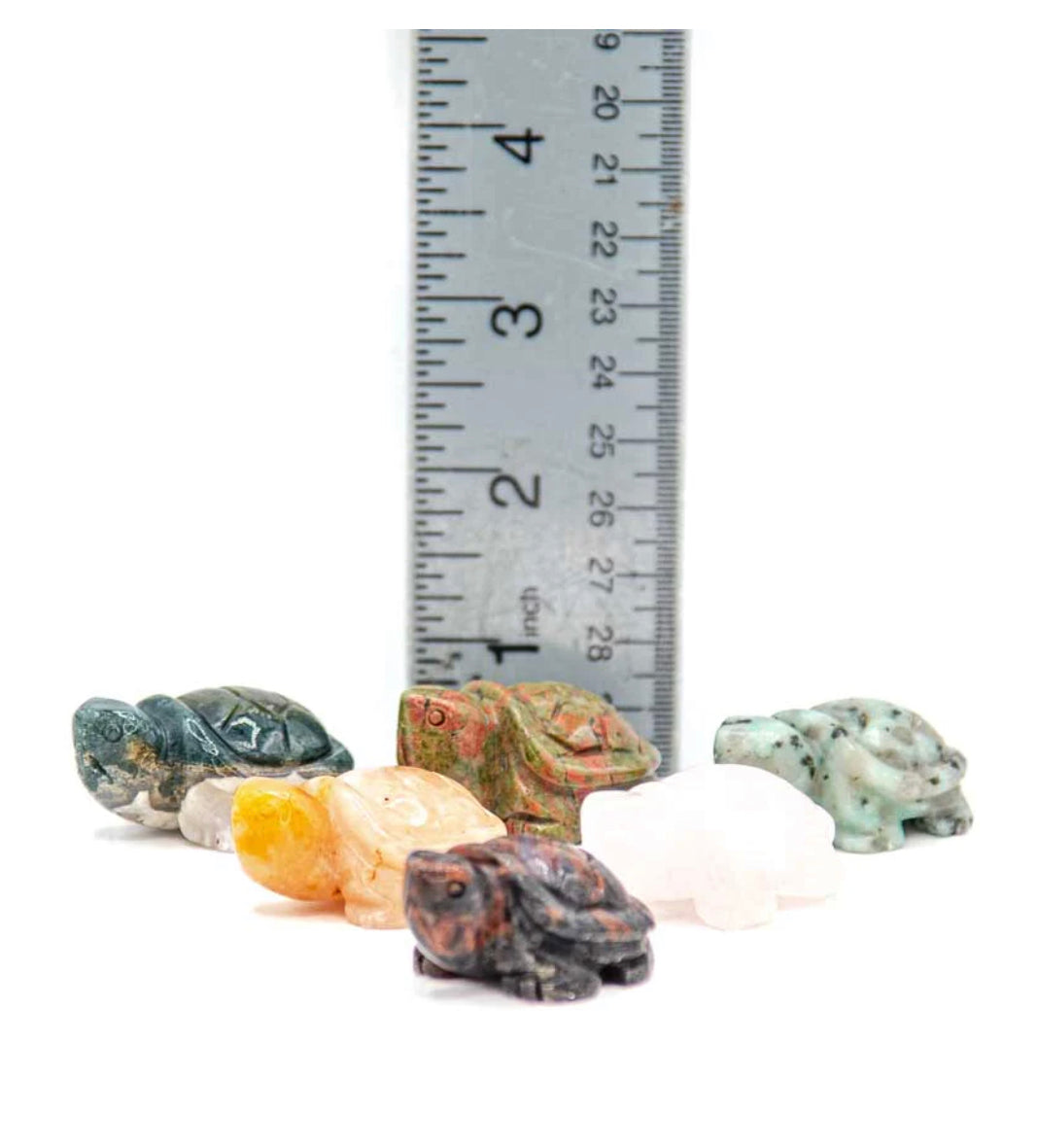Approximate dimensions are - Height in Inches: 0.75 Width in Inches: 1 Depth in Inches: 1.5. Crystal turtle is selected randomly. The turtle is the symbol of Longevity. Your spirit animal comes in mesh pouch with a Spirit Animal information card, crystal care and cleansing instructions. Because they are a natural product, pieces vary in size and appearance.