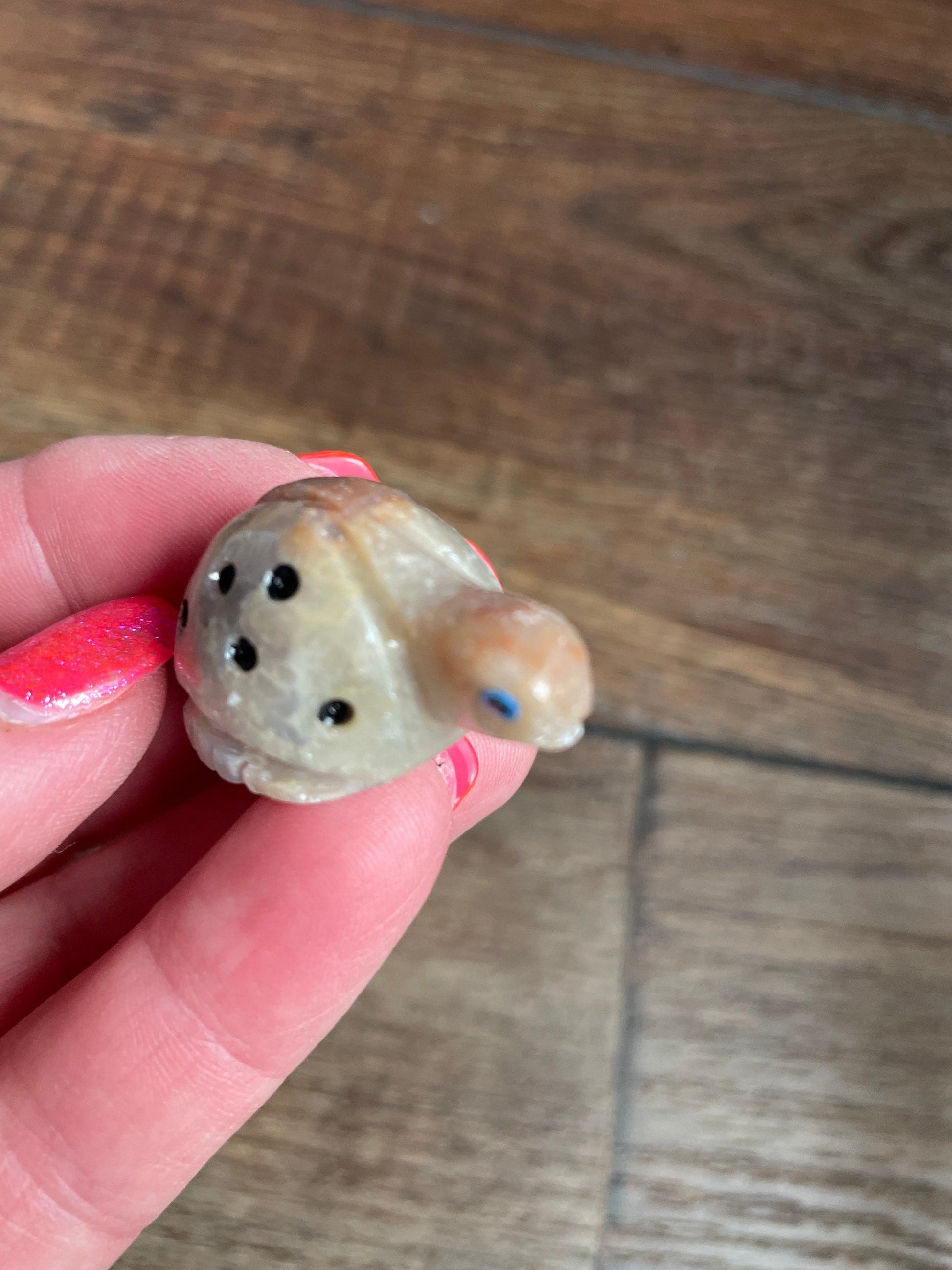 Height in inches: 1.25 Width in Inches: 1.5 Made Of: Dolomite The lady bug is the symbol of luck. Your spirit animal comes in mesh pouch with a Spirit Animal information card, crystal care and cleansing instructions. Because they are a natural product, pieces vary in size and appearance.