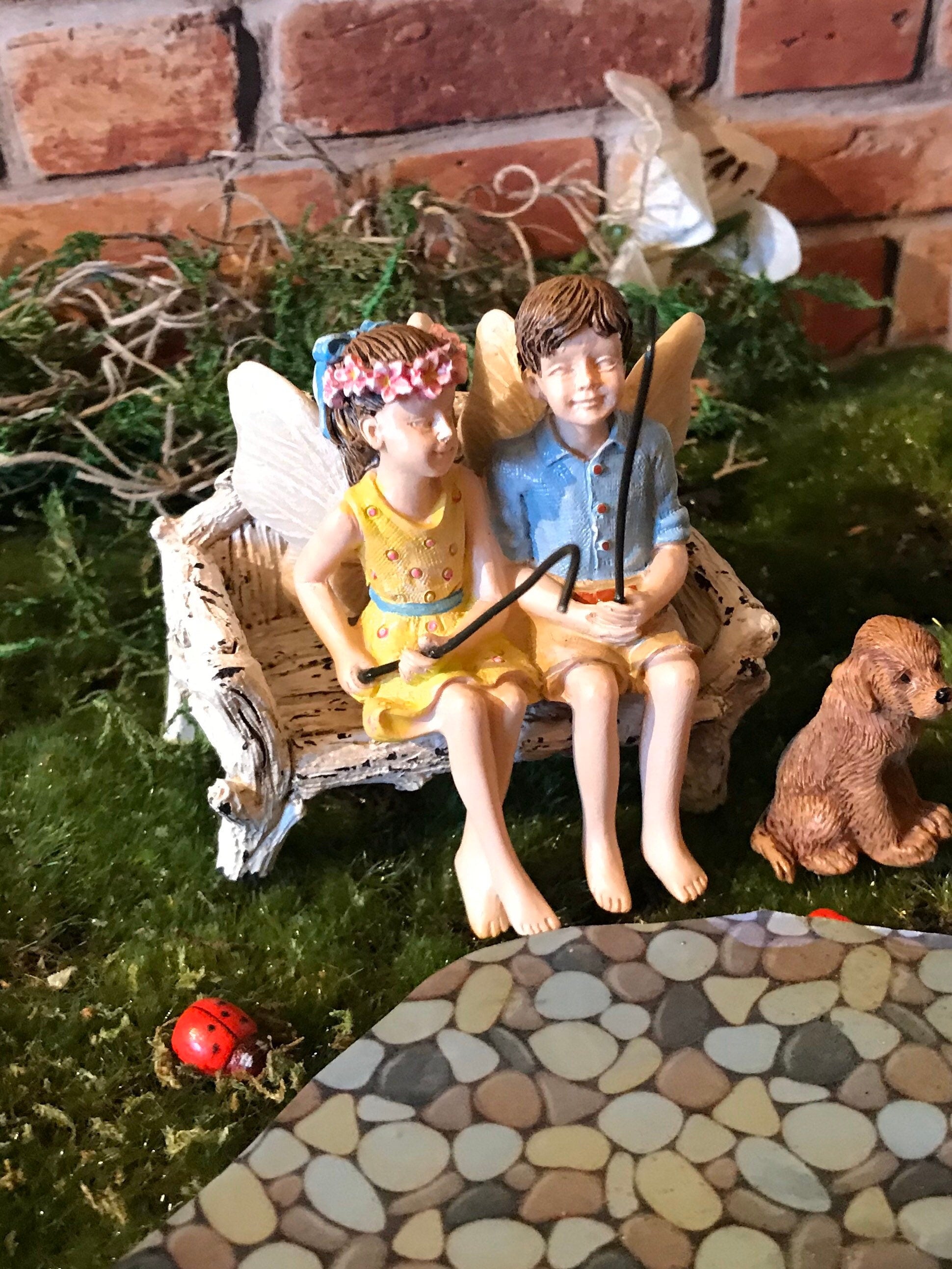 Fairy boy & girl figurine with fishing poles