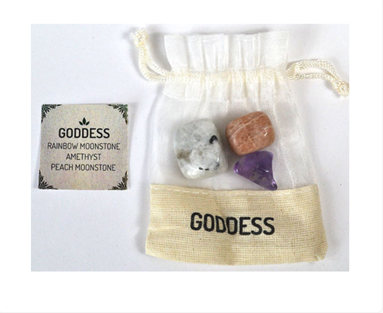 Embrace the divine feminine energy with our Goddess Crystal Kit, a beautifully curated set of stones designed to honor your inner goddess and connect you with intuition, empowerment, and spiritual growth. This enchanting kit includes Rainbow Moonstone, Amethyst, and Peach Moonstone each chosen for its unique ability to enhance feminine energy and support emotional and spiritual healing.
