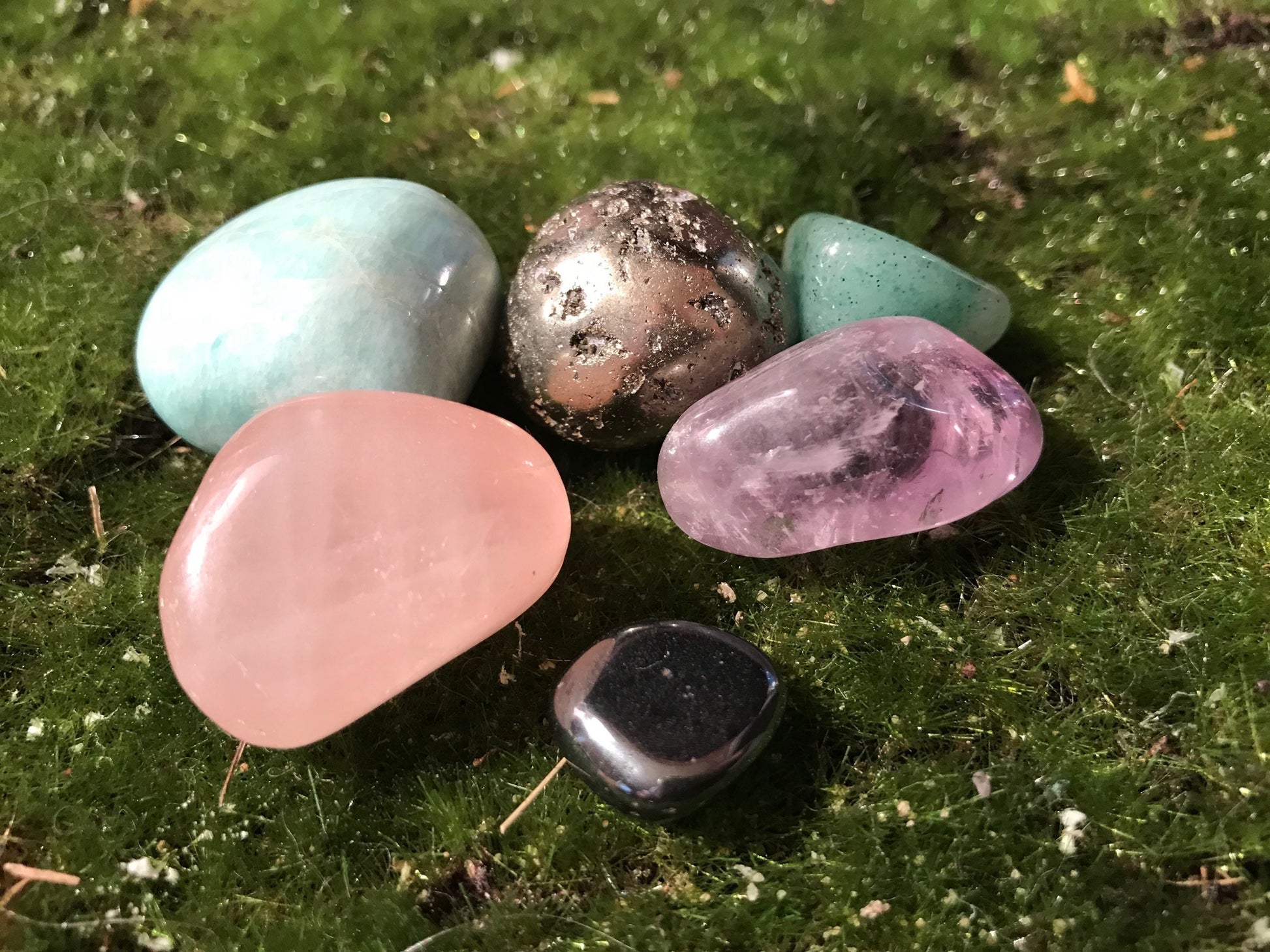 Leo Stones Set includes: Amazonite Rose Quartz Amethyst Aventurine Pyrite Hematite Your tumble-polished and/or raw stones and crystals are chosen based on their energetic properties and are intended to complement The Lions positive traits, supplement imbalances, and protect against downfalls. Stone and crystal properties for Leo are included. The stones/crystals will arrived sealed in a beautiful 3" x 4" nylon pouch. Hold them, meditate with them, carry them in your pocket, purse or car, place them on your desk at work, or under your pillow at night. I can’t think of a more personal GIFT for Leo in your life – children and adults alike! 😊