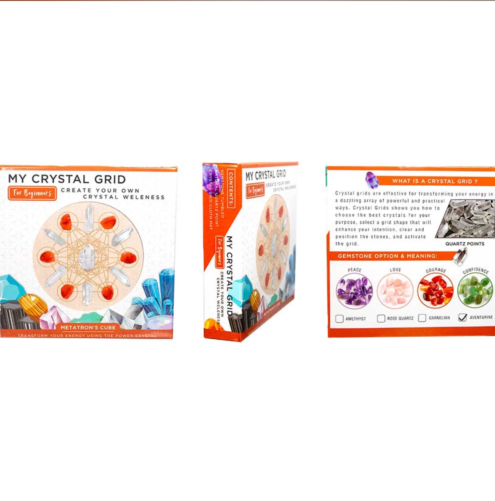 Each beautifully boxed kit introduces beginners to crystal grid practice through the sacred geometry of Metatron’s Cube. It includes genuine crystals, an instruction card, and a printed grid to encourage mindful energy alignment. The 12-piece display offers a bright, ready-to-gift presentation for any wellness or crystal enthusiast.