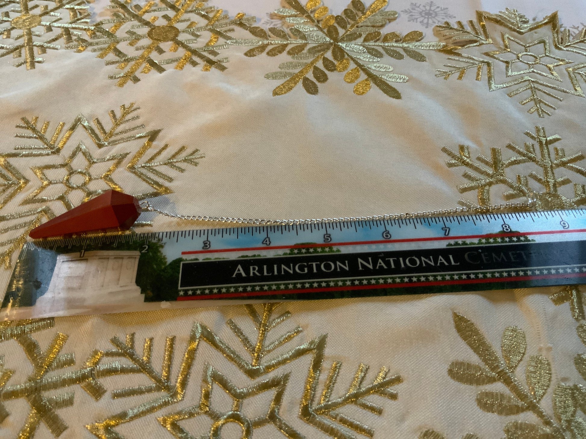 This beautiful Red Jasper Pendulum is just over 1.75”. Please look at all pictures to see all sides of this pendulum.