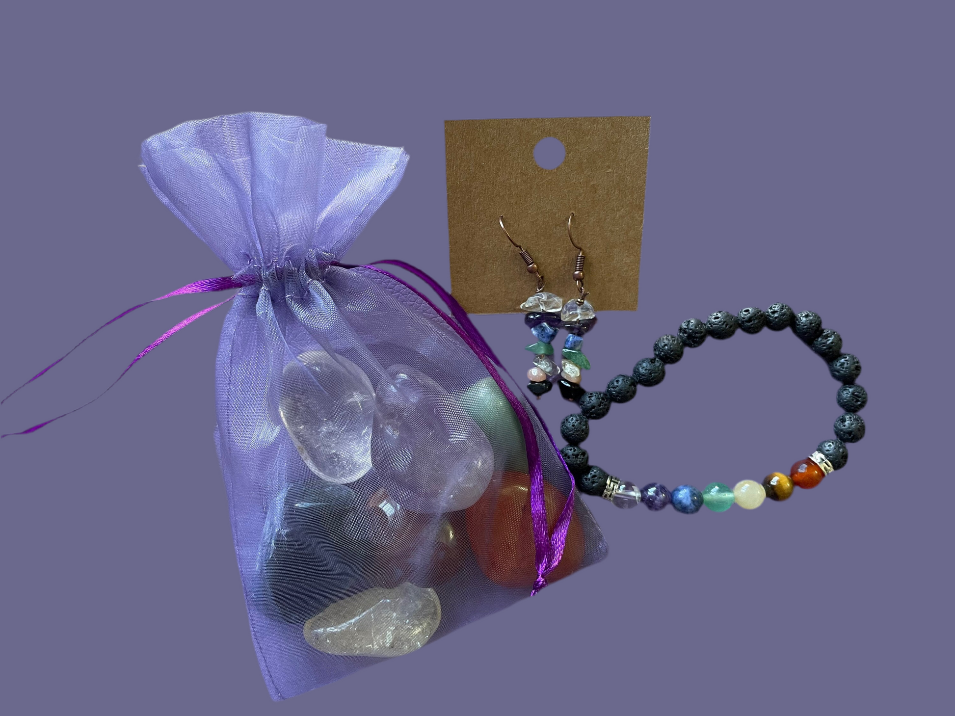 10 pc GIFT SET! Set of 7 Chakra crystals/stones Meditation stones, earrings and bracelet