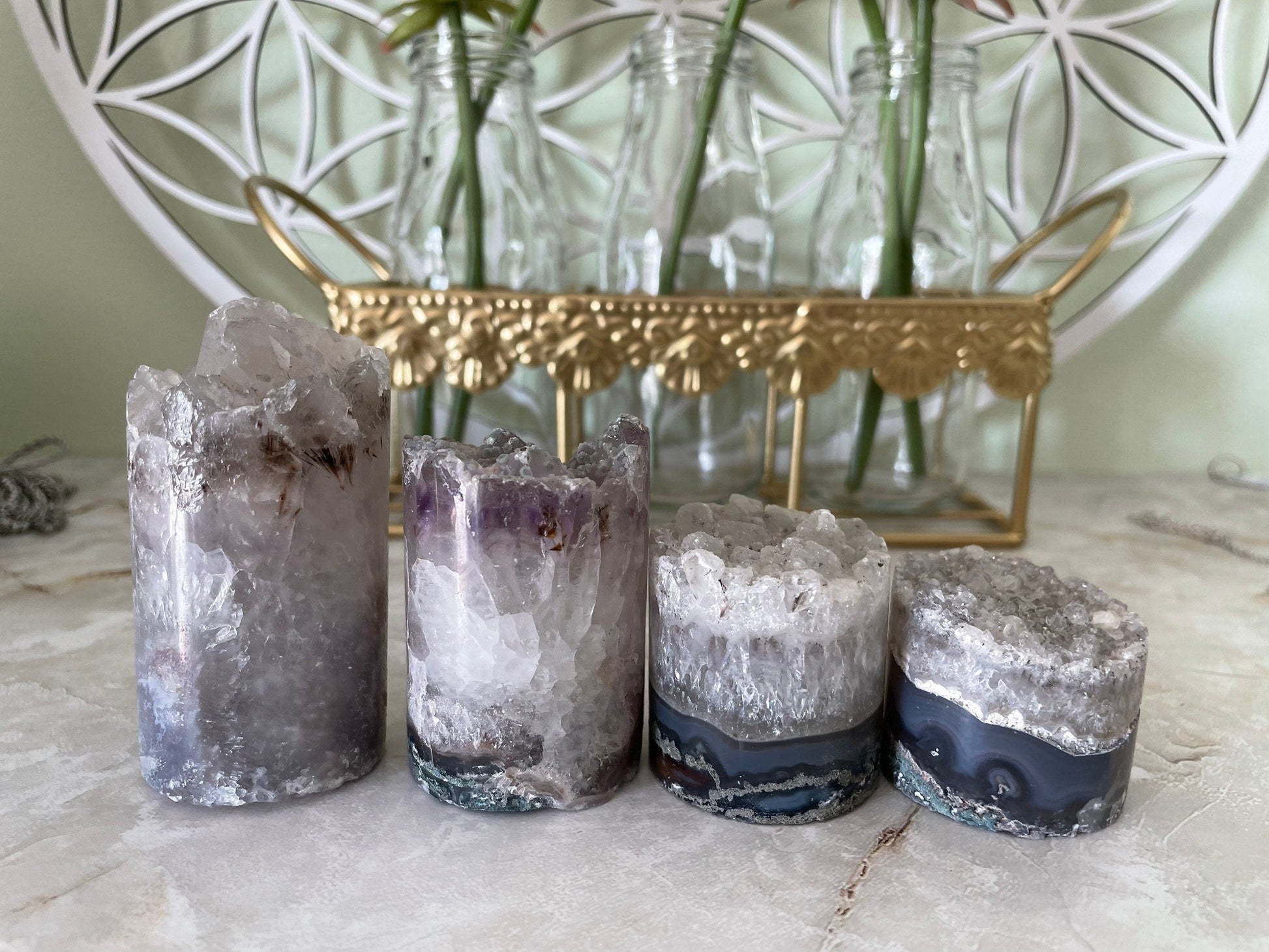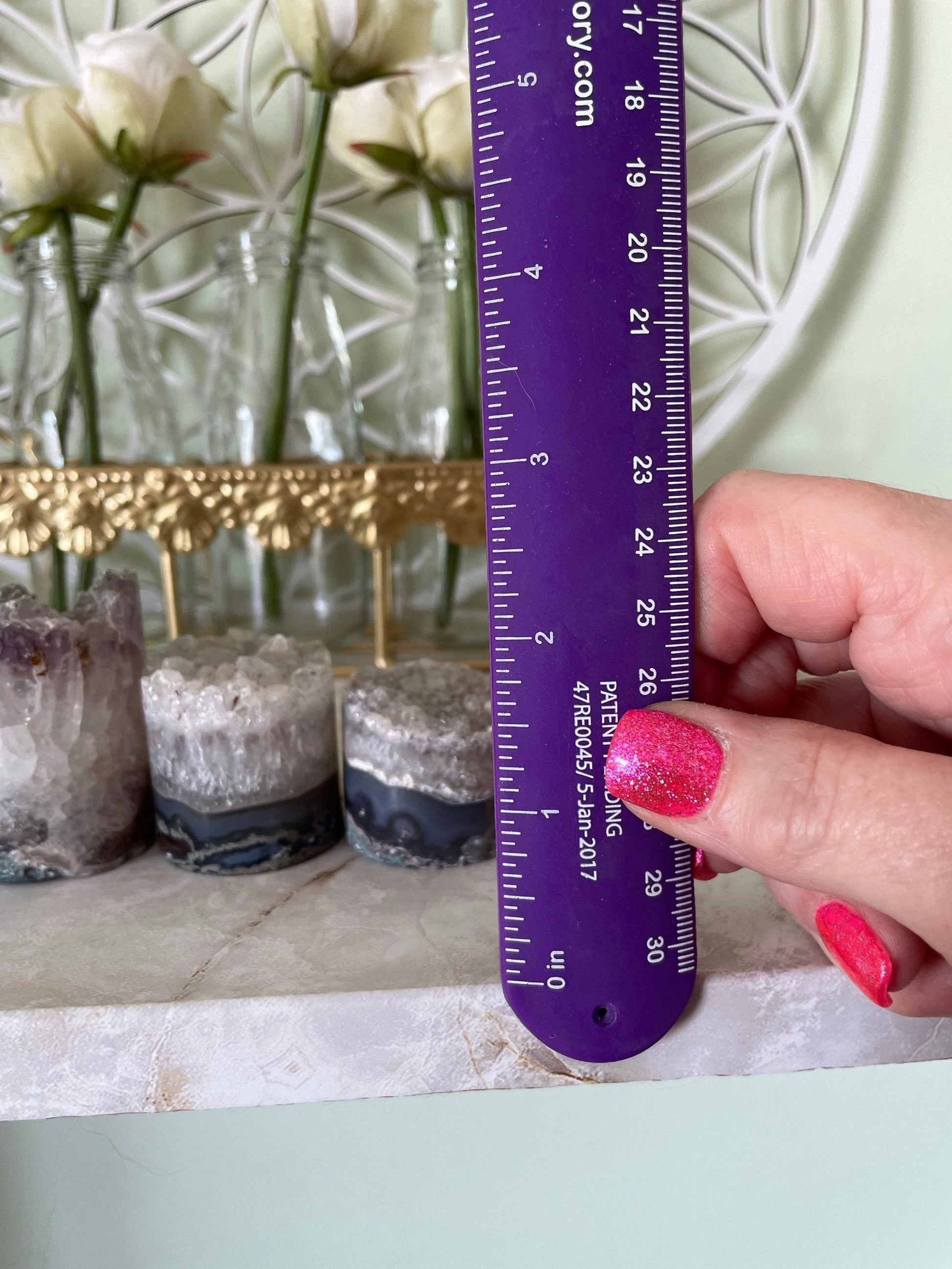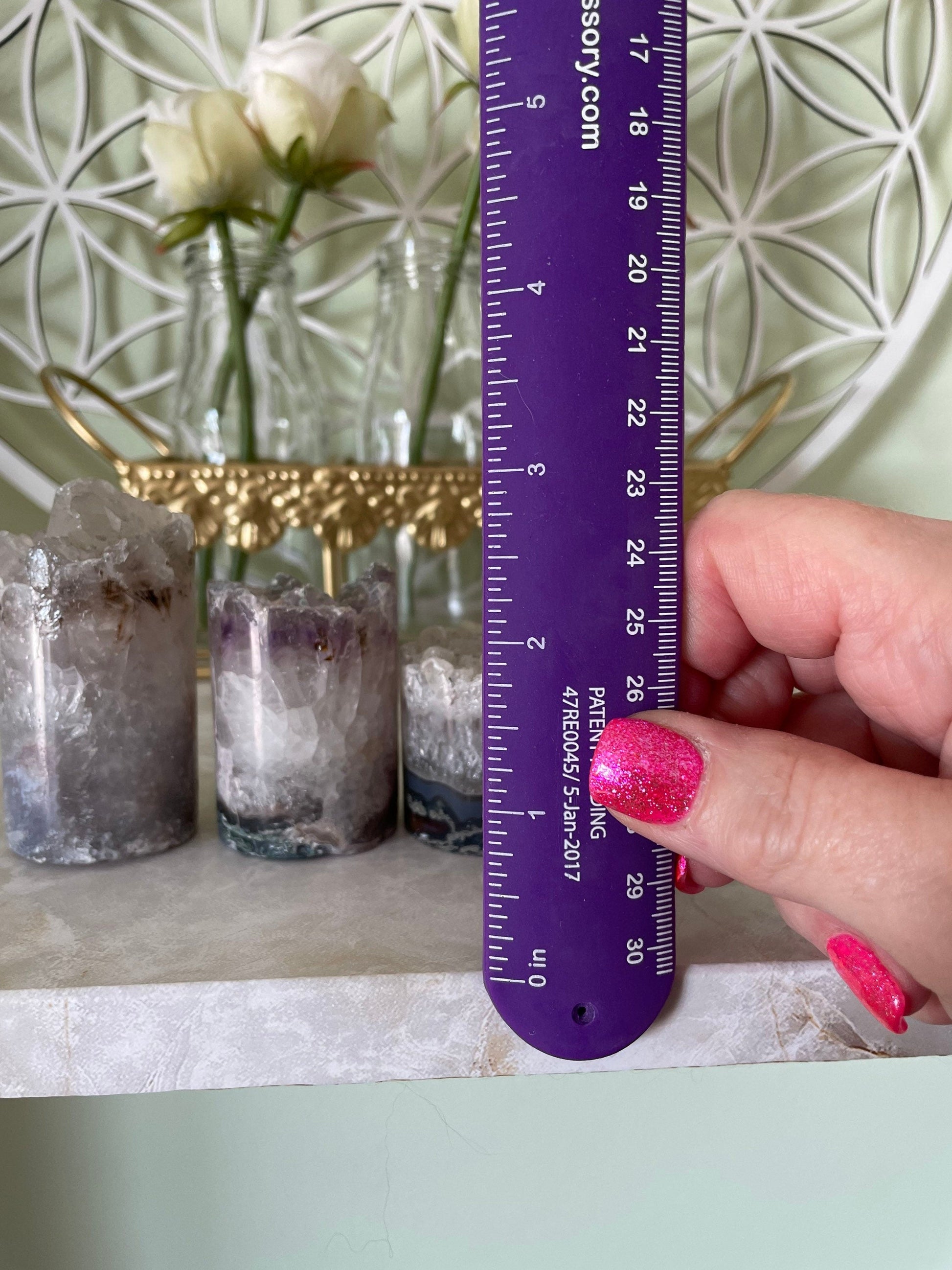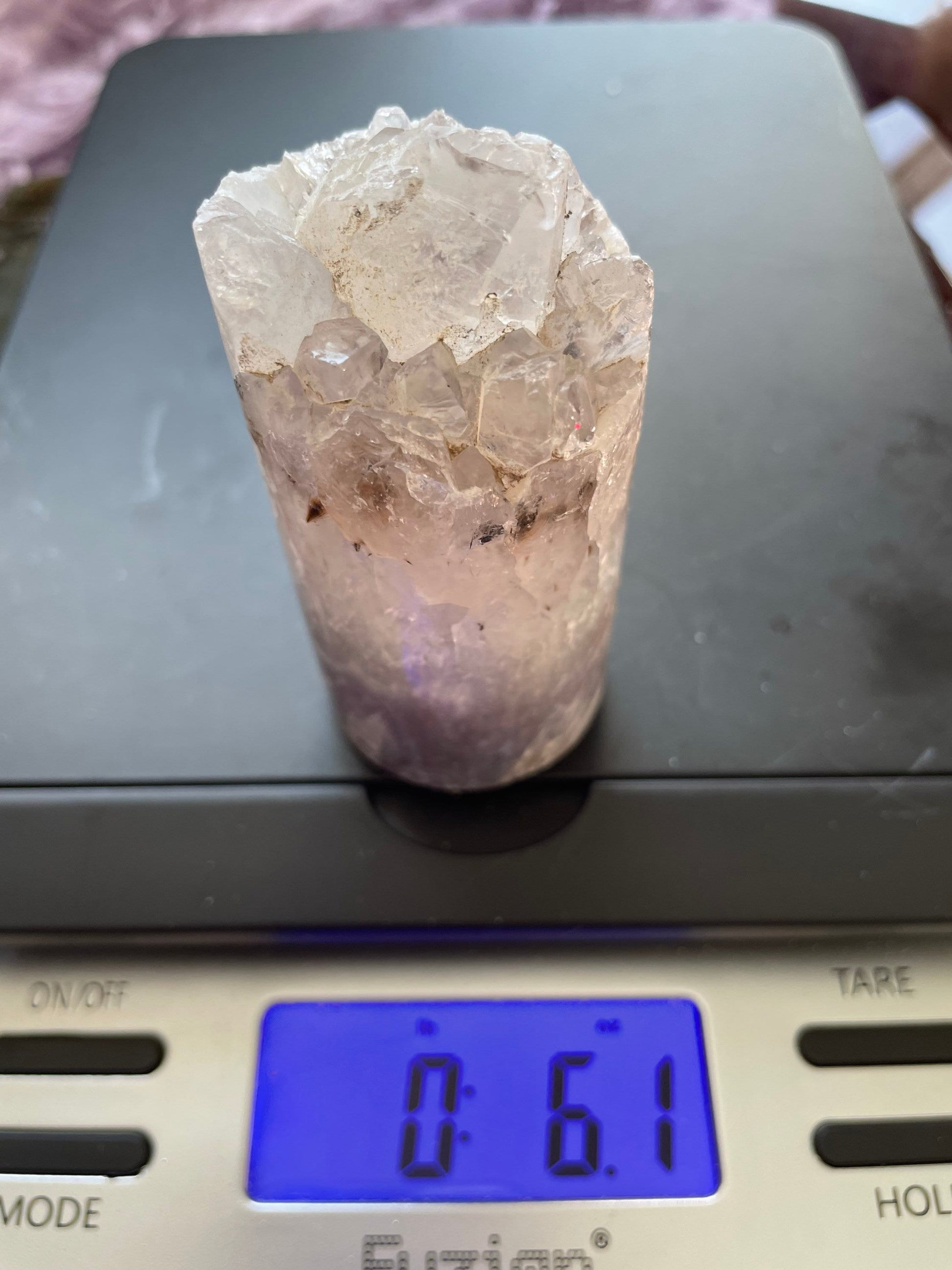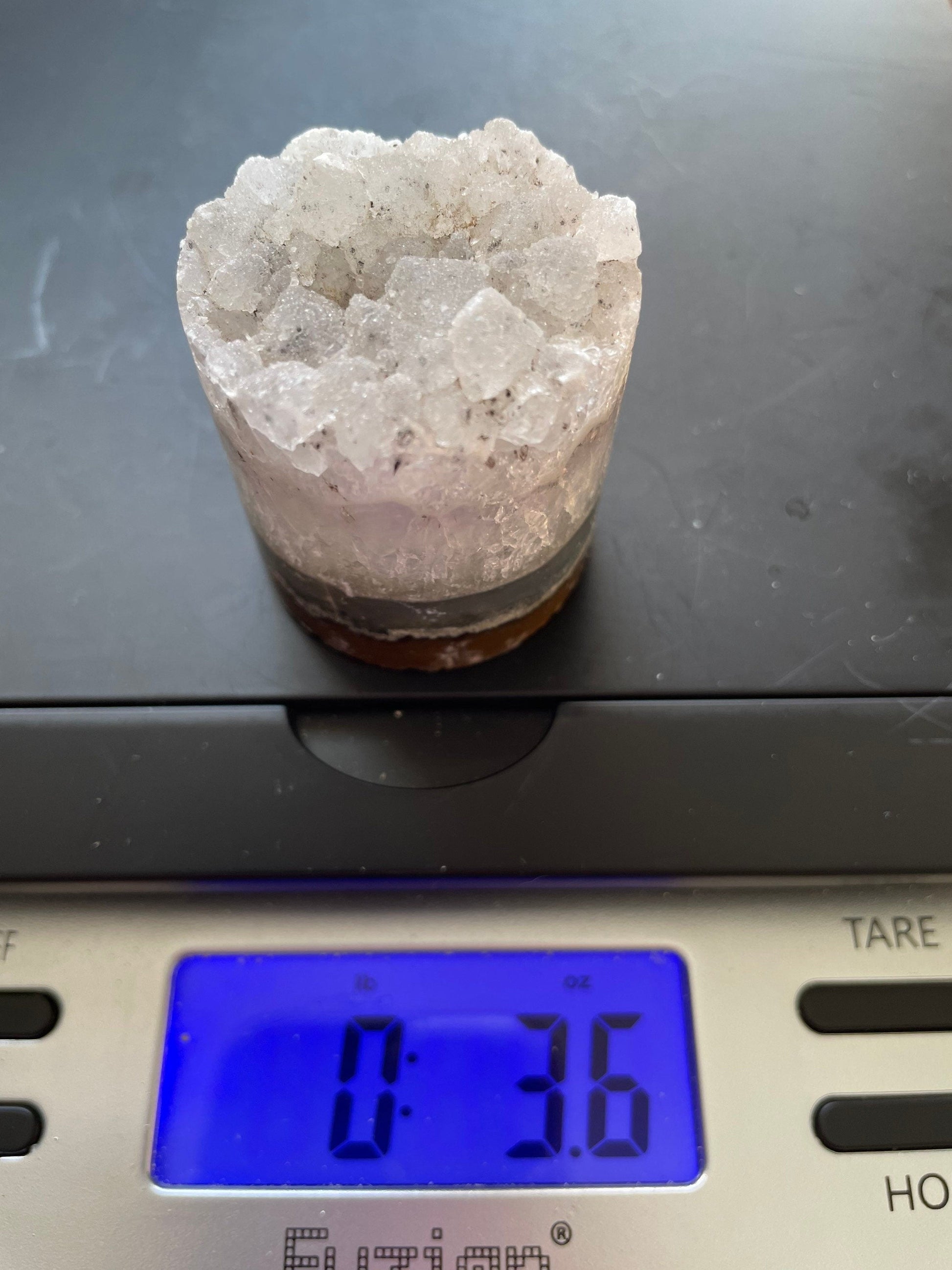 Your clear quartz cylinder will be selected randomly. Please look at all pictures to get an idea of the size per ounce. It is normal to have small fragments of this geode crack off during shipping. You will Purchase your crystal cylinder by the ounce.