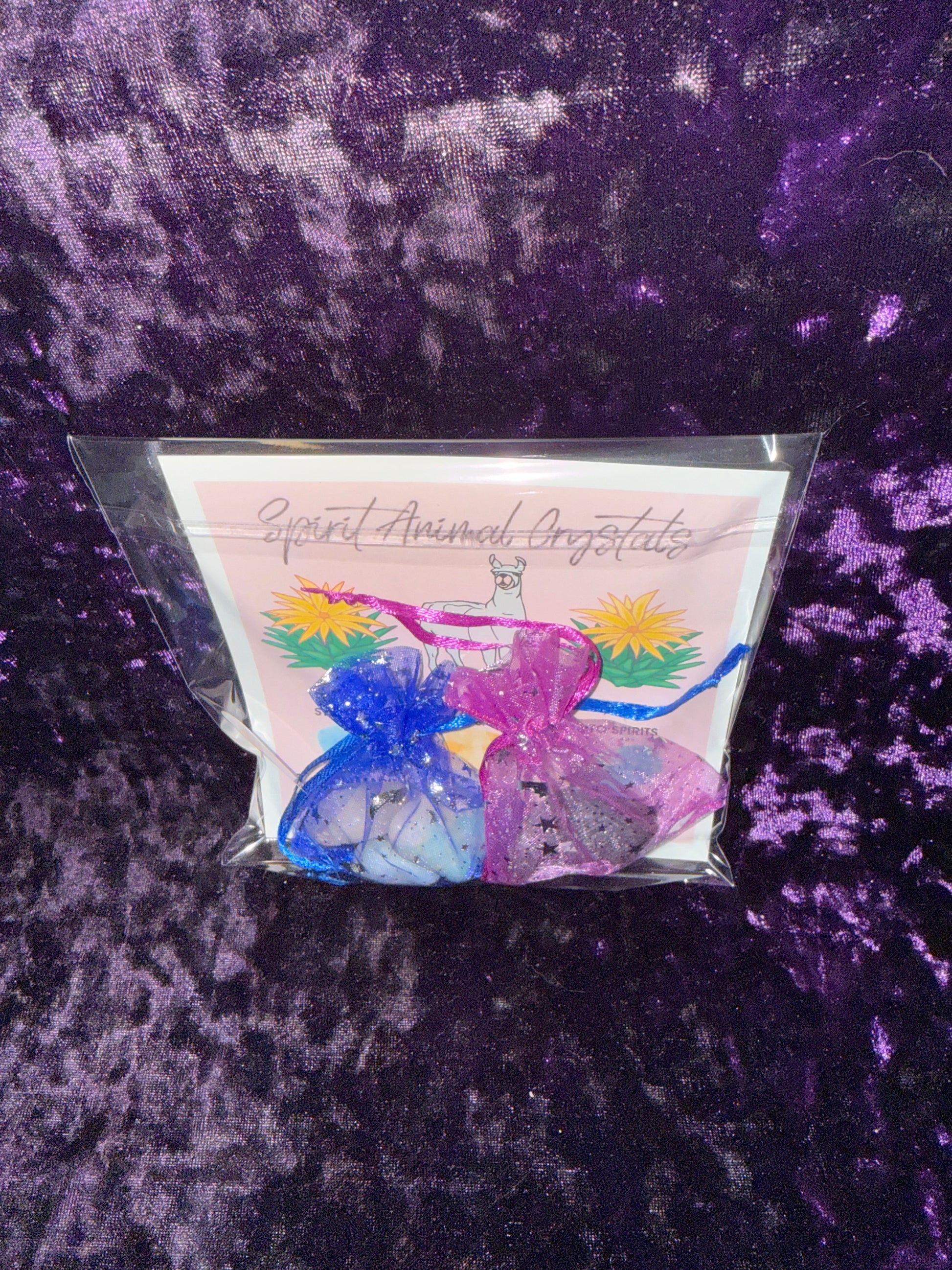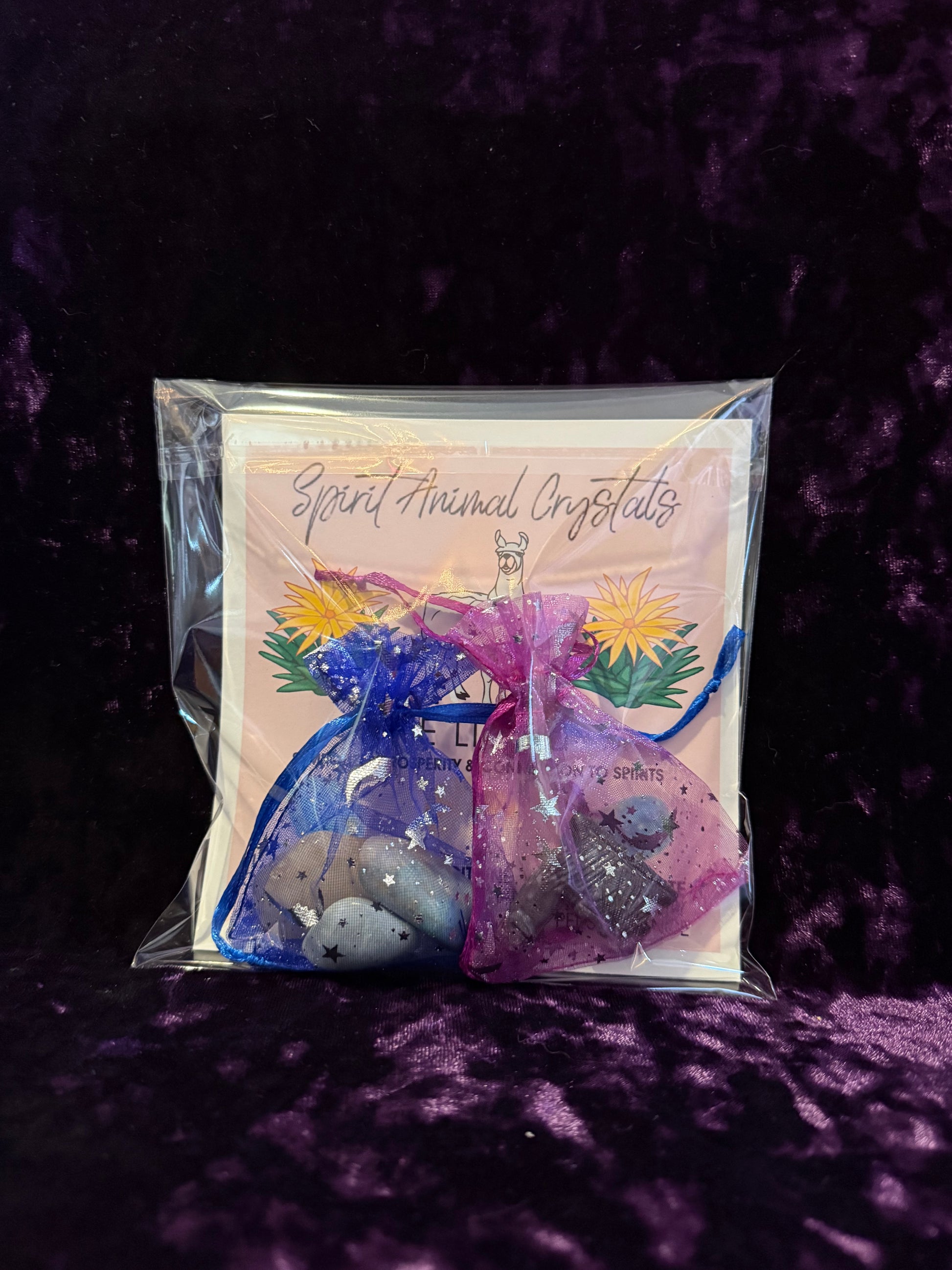 The Llama symbolizes prosperity and connection to spirits. The crystals representing these properties are Aquamarine, Citrine and Amazonite. Your spirit animal comes in mesh pouch with a Spirit Animal information card. The 3 other crystals come in a separate mesh pouch and are fully charged. These items, along with 5x5 decorative “Spirit Animal Crystals” card, crystal care and cleansing instructions are package in a clear resealable cellophane bag.