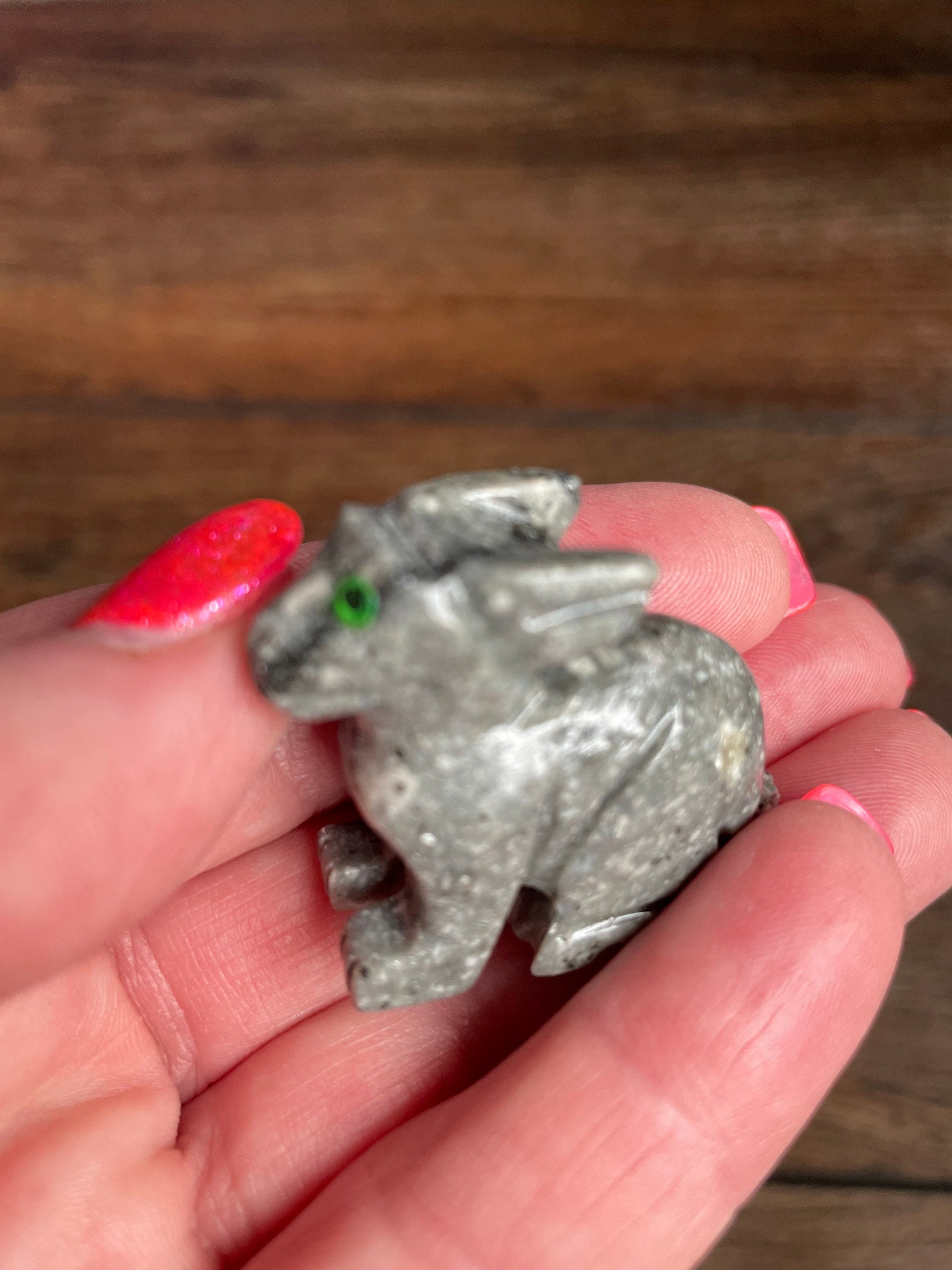 Height in Inches: 1.25 Width in Inches: 0.5 Depth in Inches: 1.5 Made Of: Dolomite The rabbit is the symbol of agility. Your spirit animal comes in mesh pouch with a Spirit Animal information card, crystal care and cleansing instructions. Because they are a natural product, pieces vary in size and appearance.