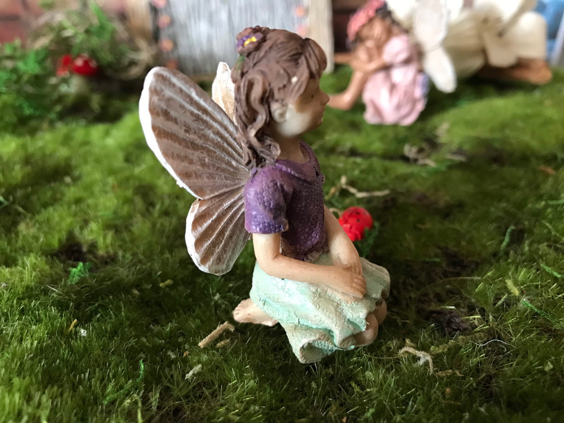 I love this Sweet fairy girl, all the way from her pretty green skirt, purple shirt and flower head band pulling her long brown hair back.