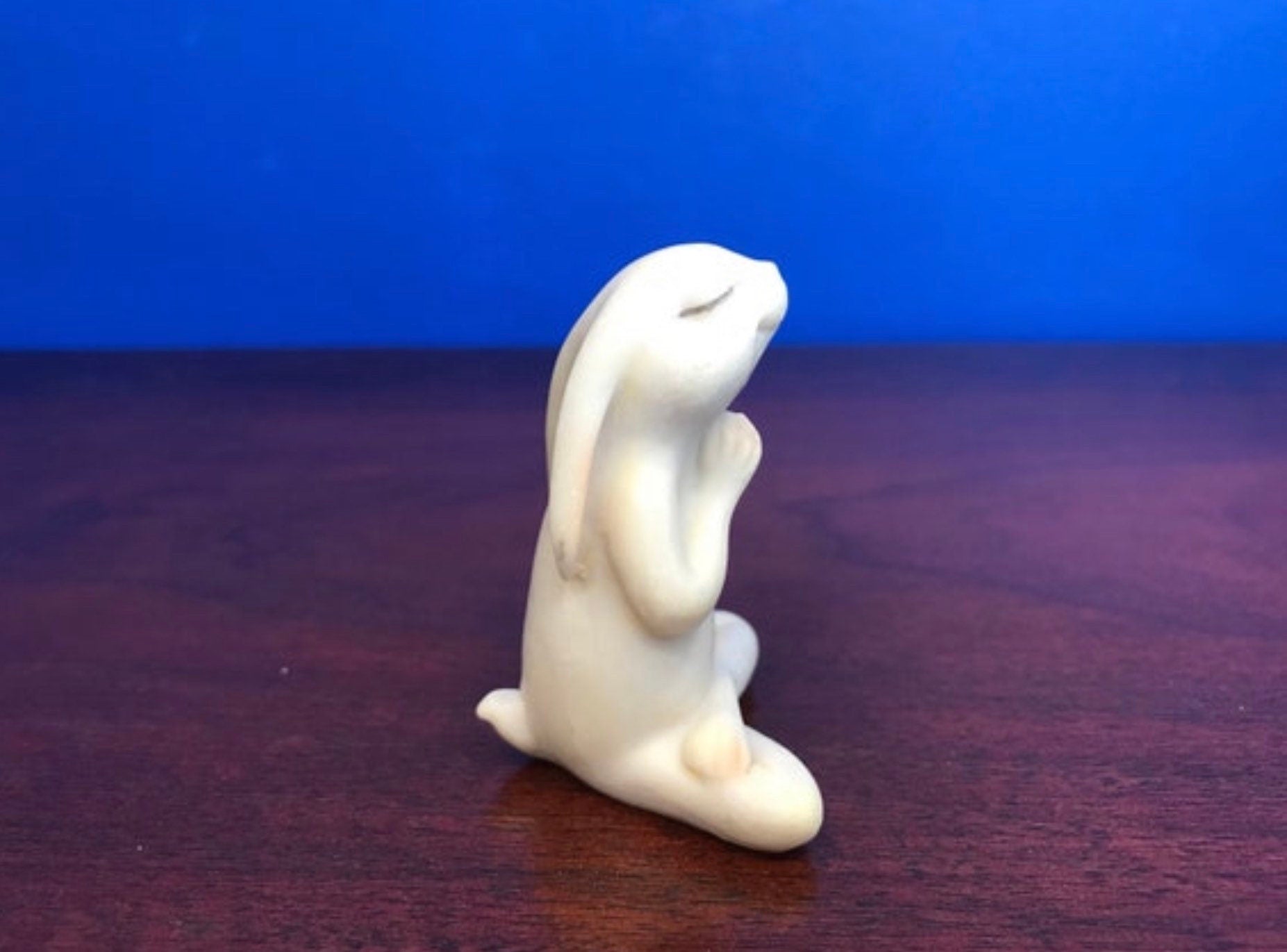 Sweet Namaste yoga bunny pose bunny figurine seated Namaste bunny pose Namaste pose yoga rabbit