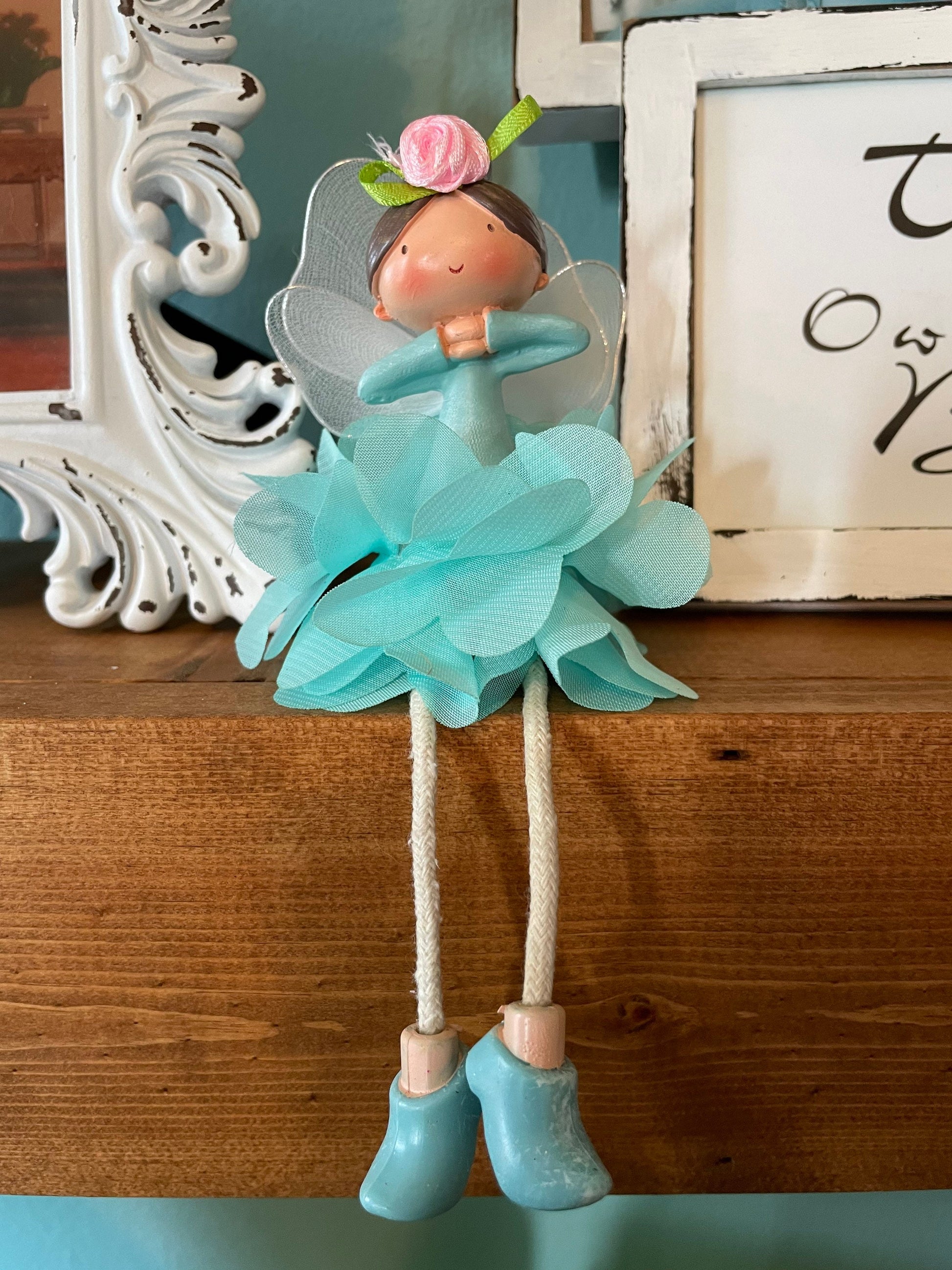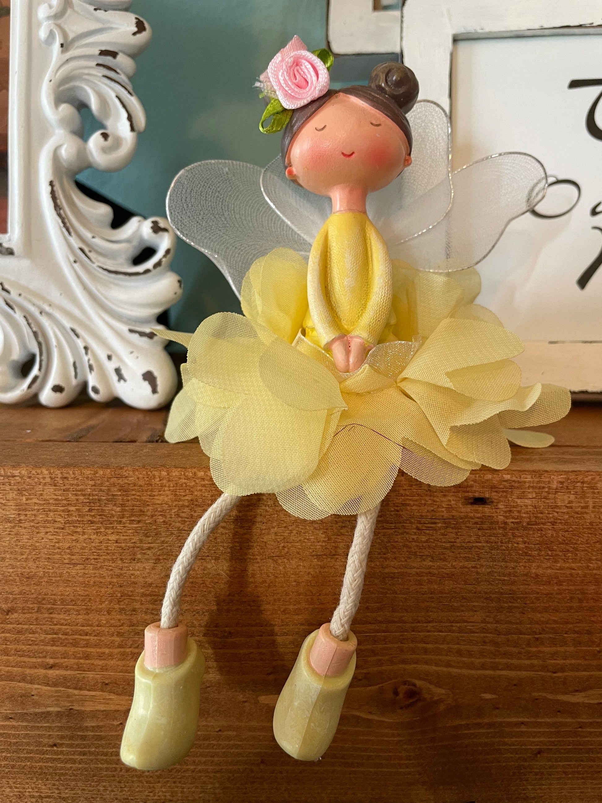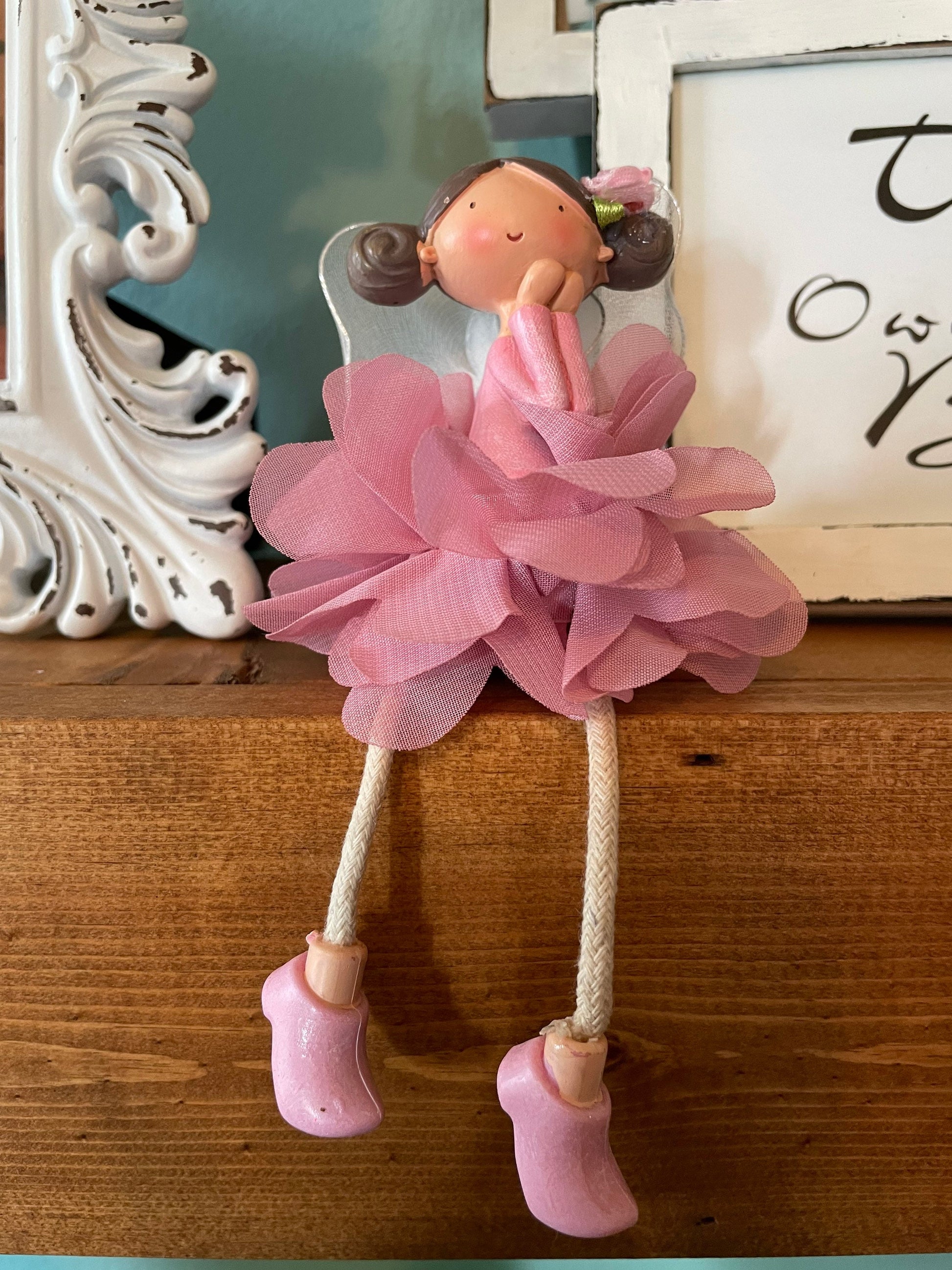 Sweet whimsical fairy wearing cut tutu Fairy shelf sitter in four colors