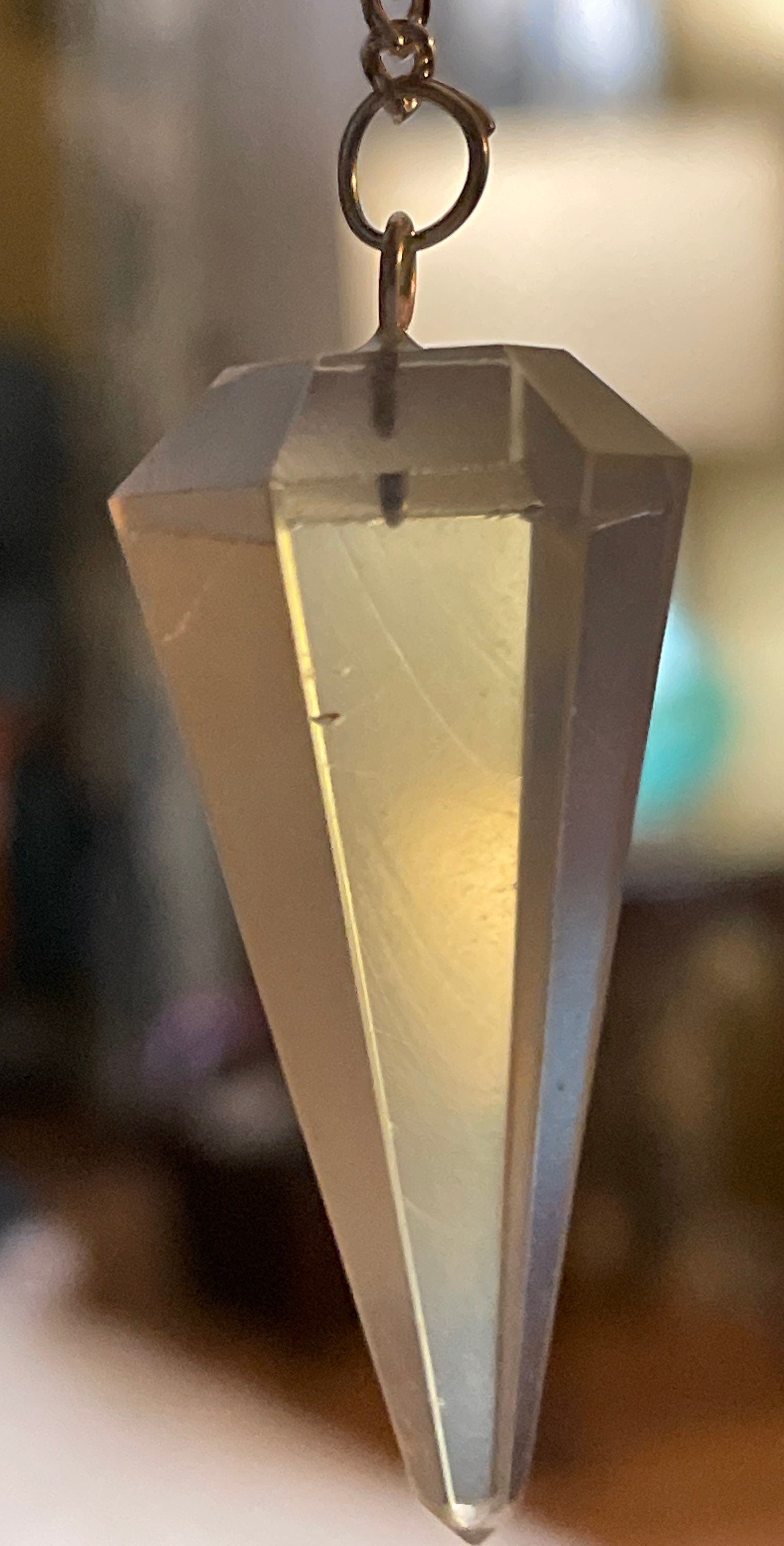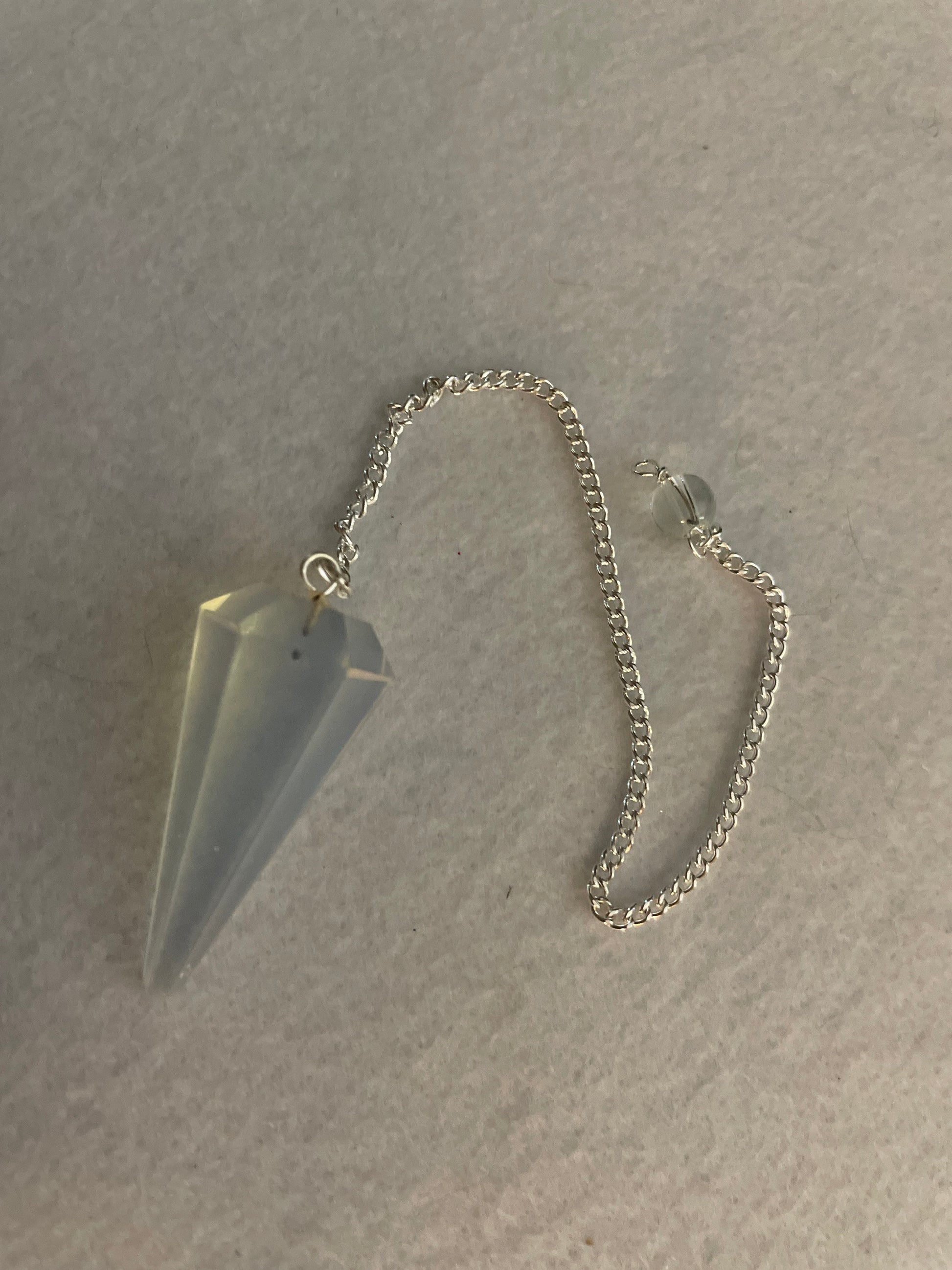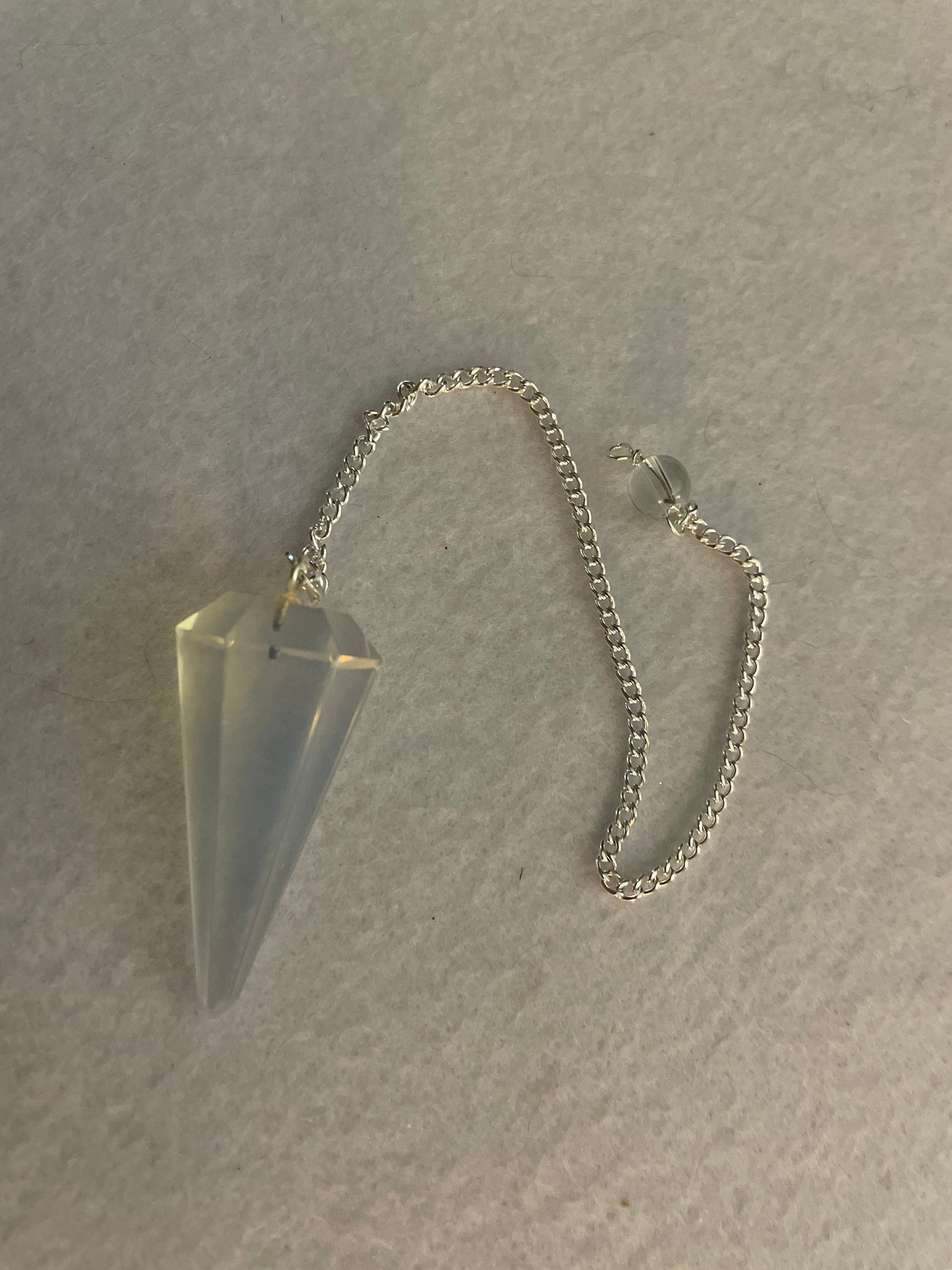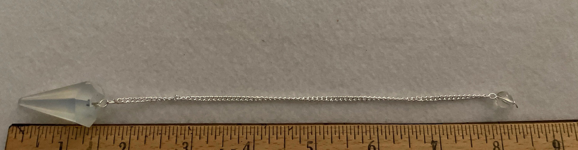 This beautiful Opalite pendulum is approximately 1.5” and with chain is 8.25”