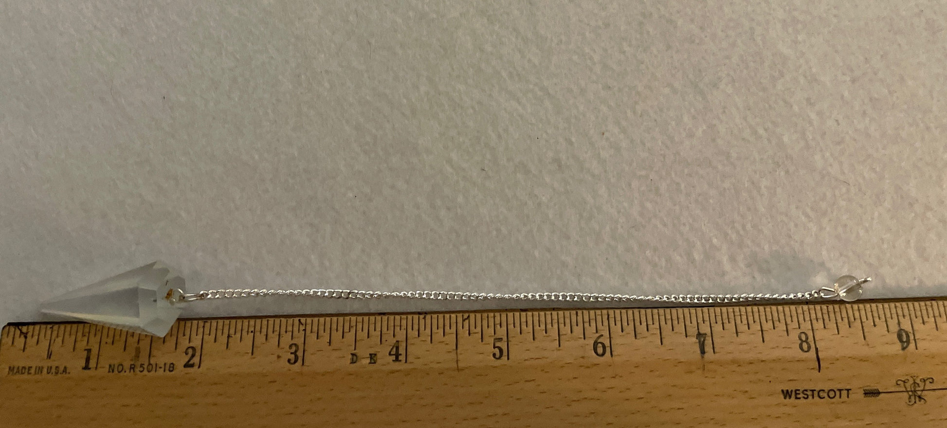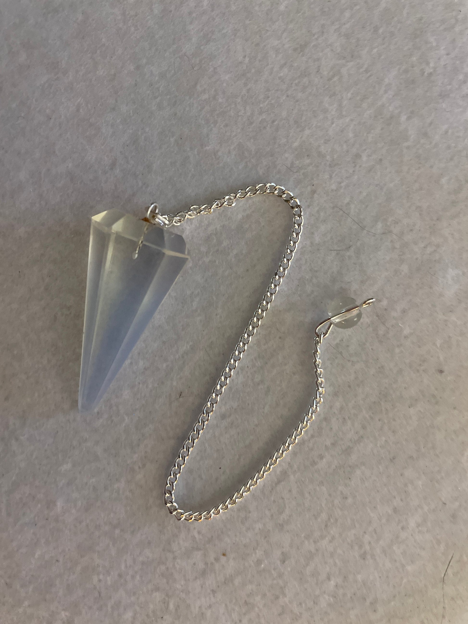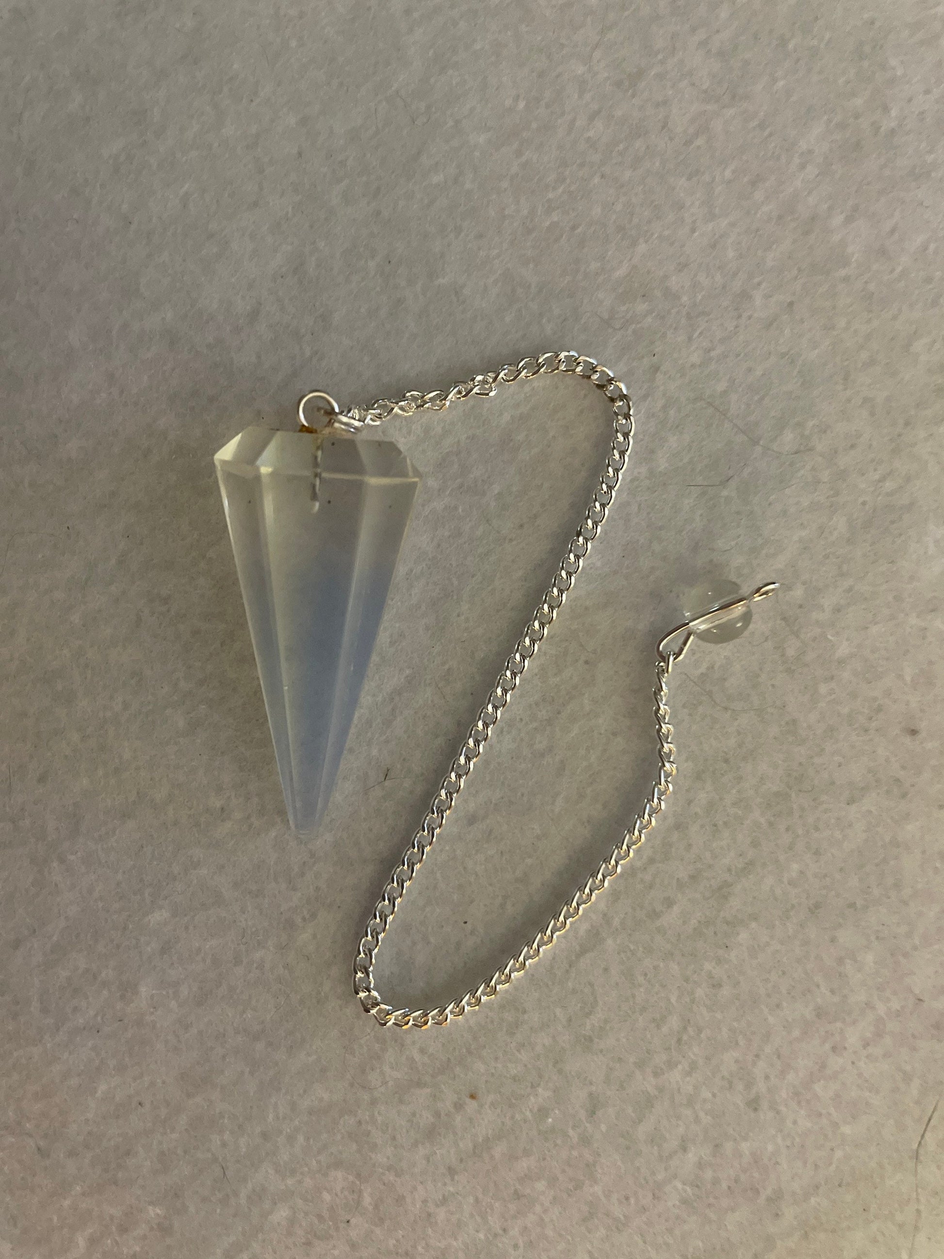 This beautiful Opalite pendulum is approximately 1.65” and with chain is 8.5”