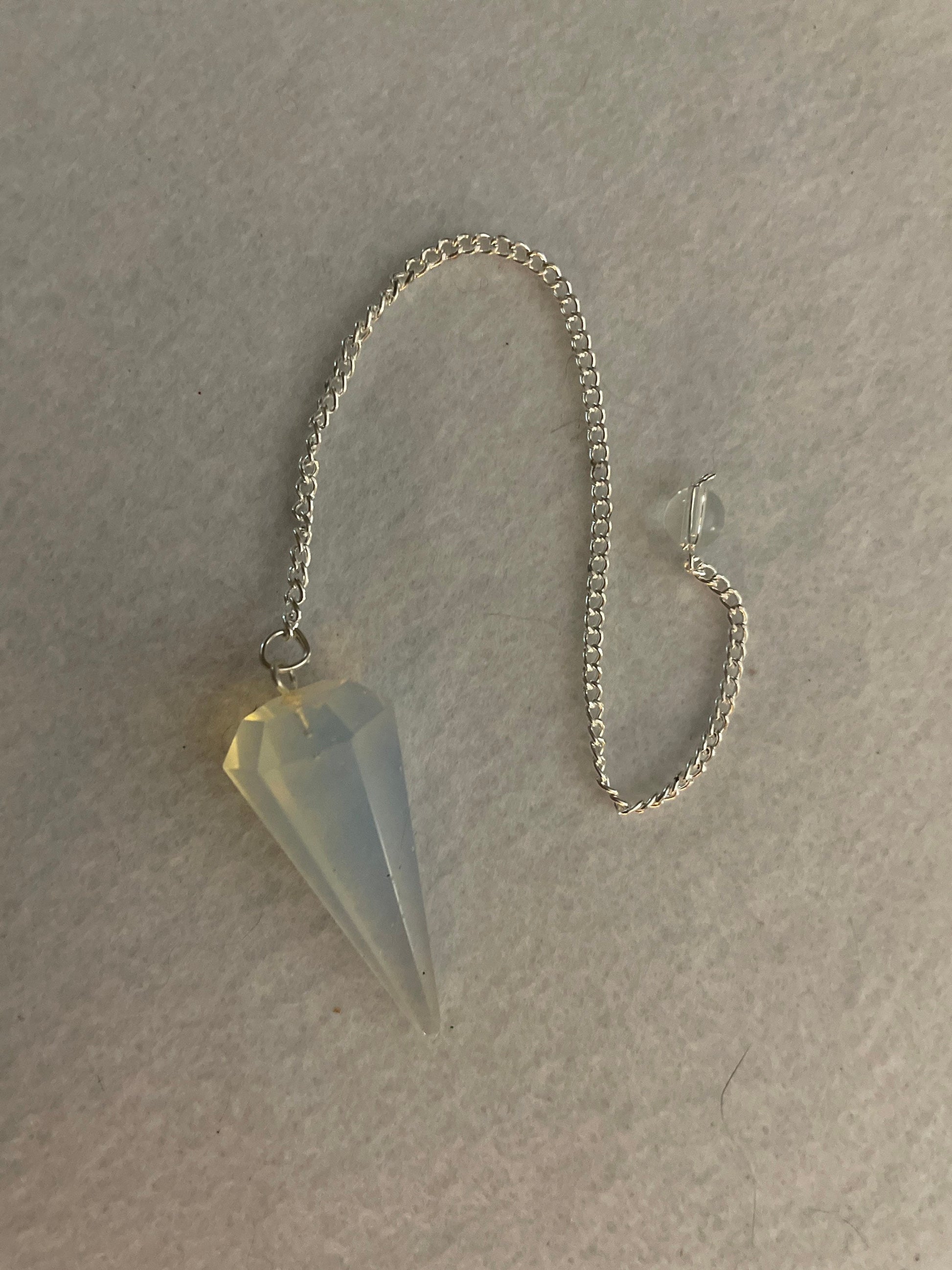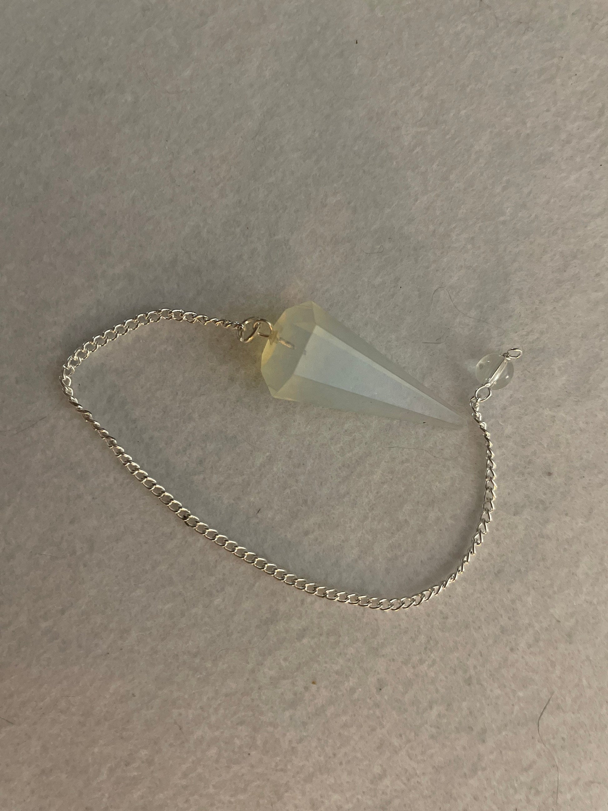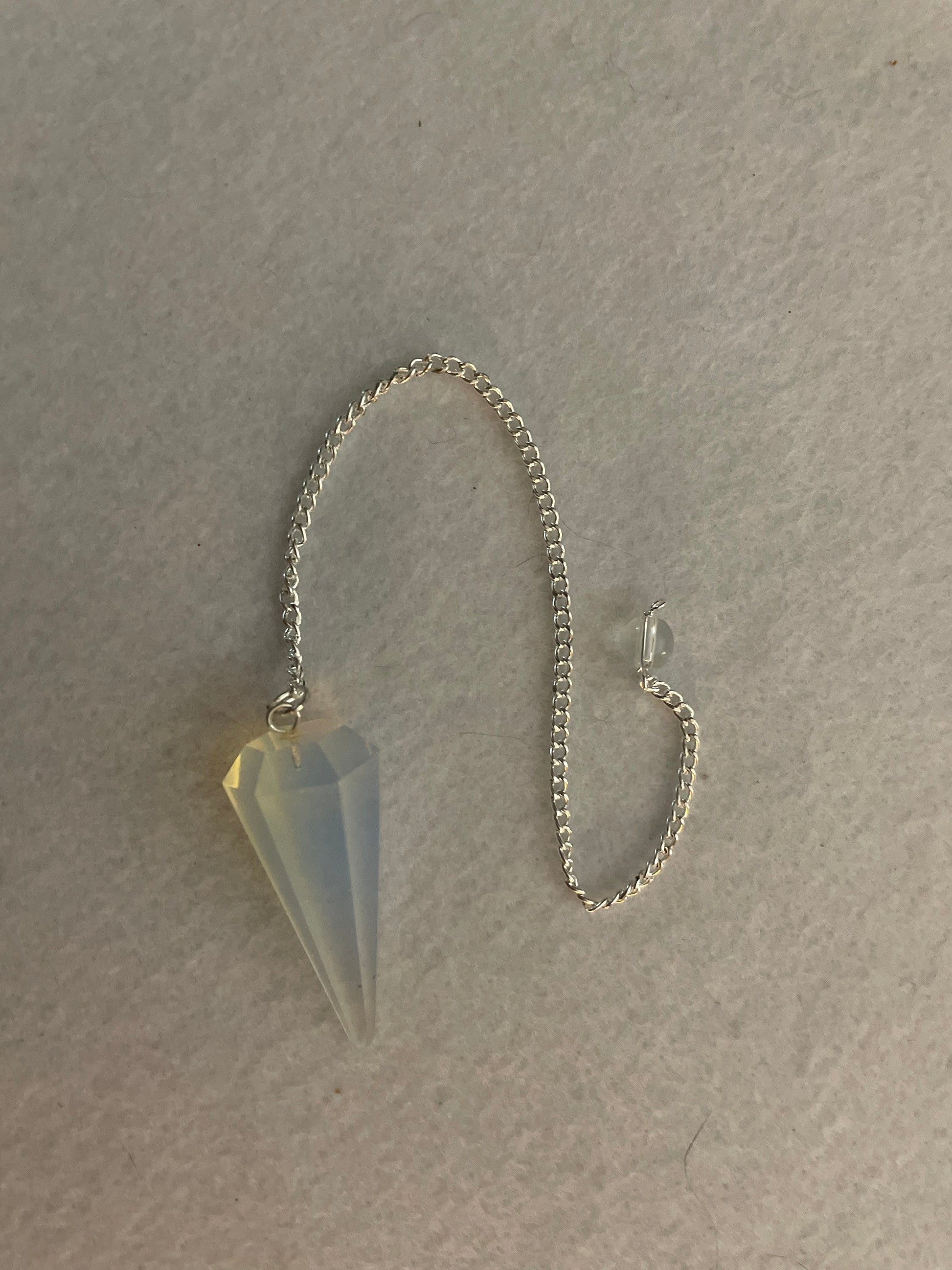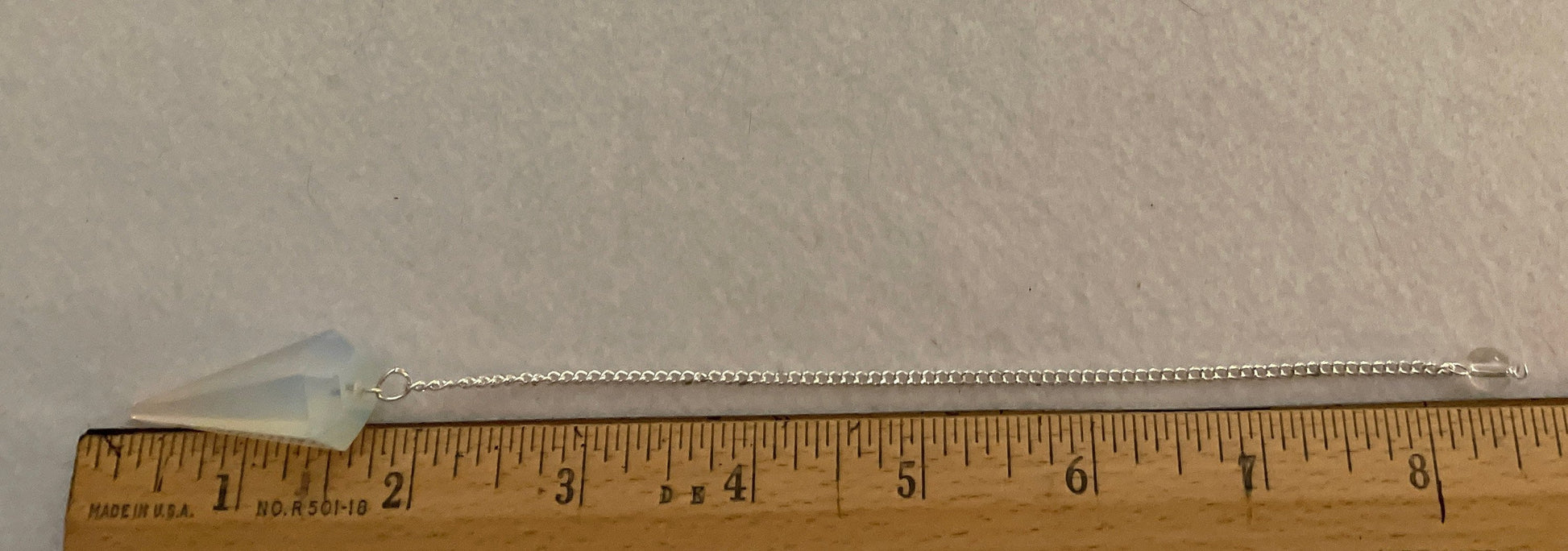This beautiful Opalite pendulum is approximately 1.65” and with chain is 8.5”