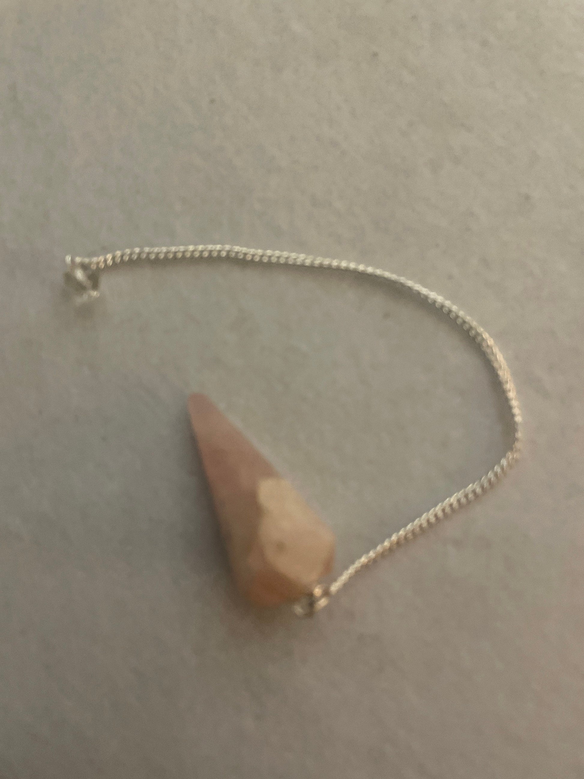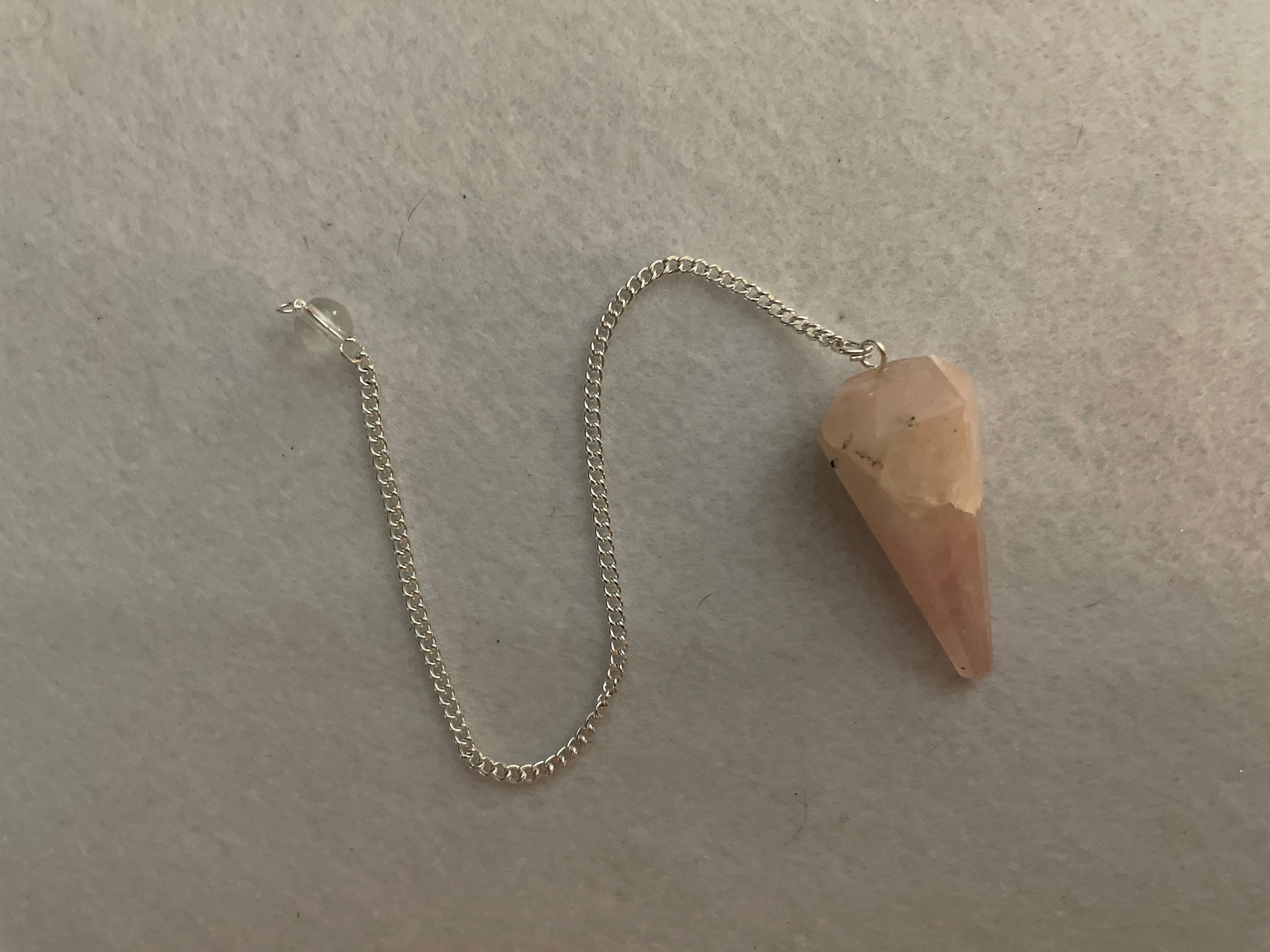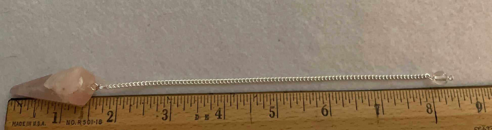 This beautiful Rose Quartz Pendulum is 1.65” and with chain is 8”